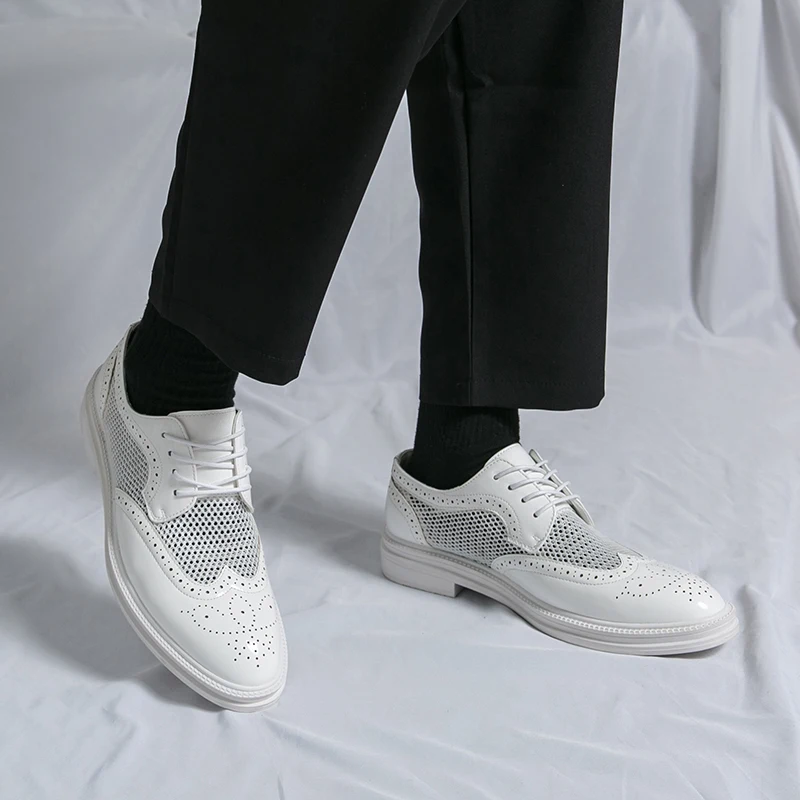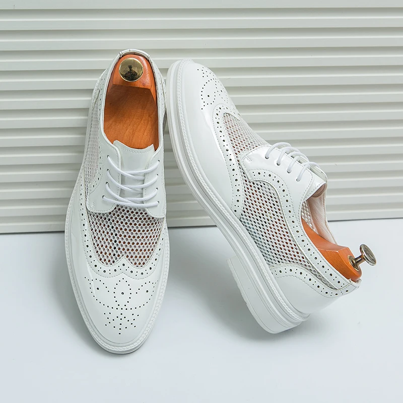 Size 38-46 Summer Mens Loafers Leather Pointed Head Sandals Derby Hand Slip On Dress Shoes for Men Wedding Casual Business Shoes