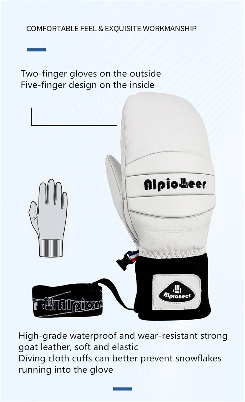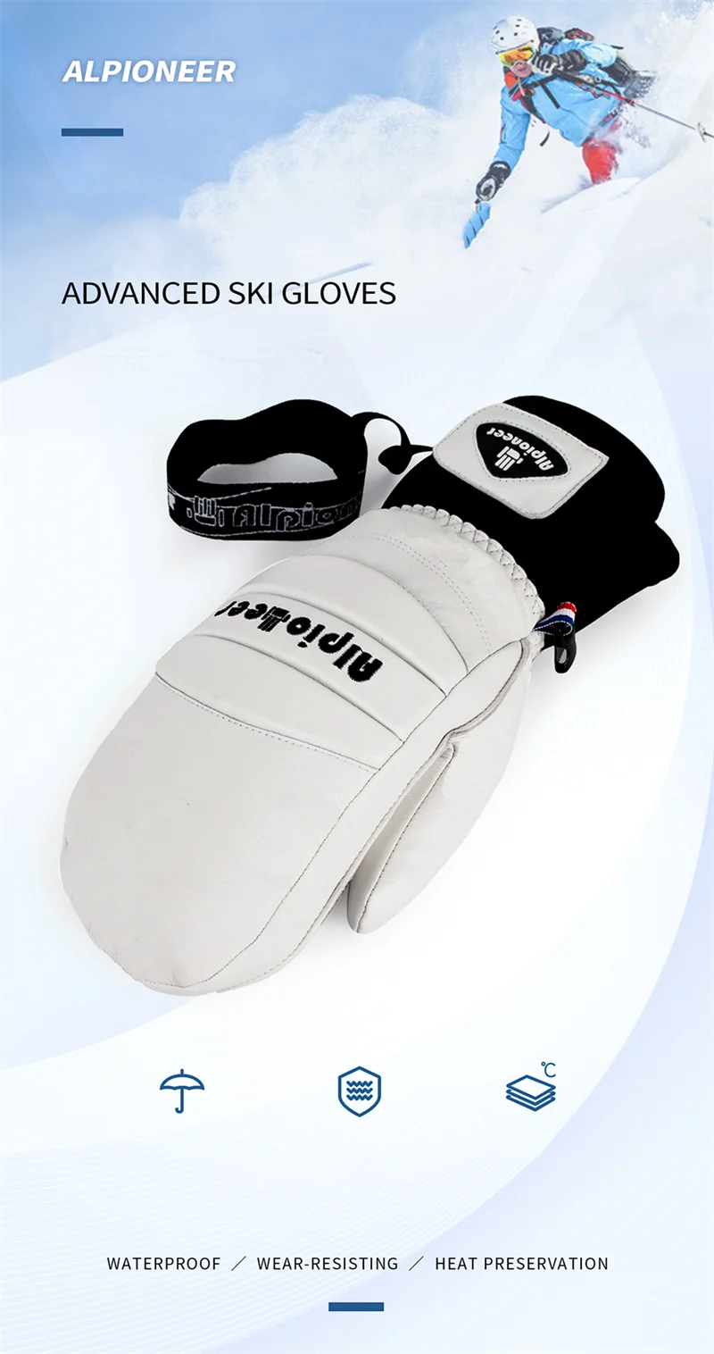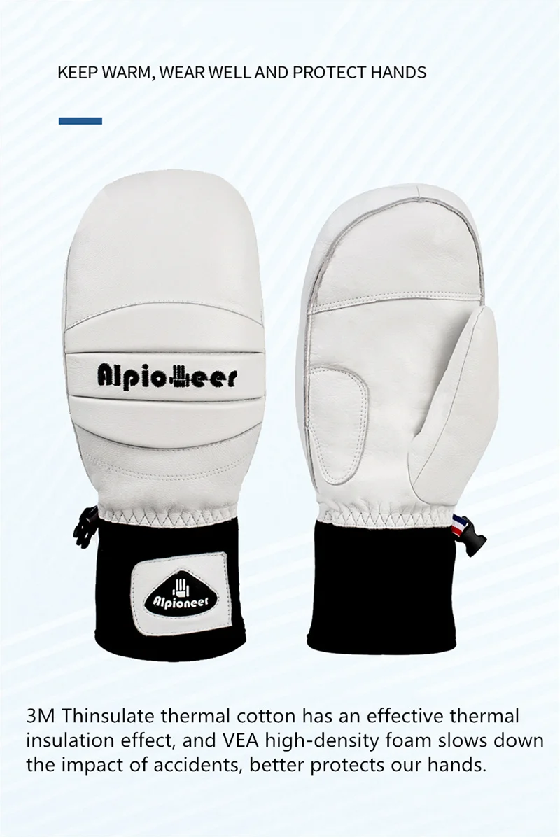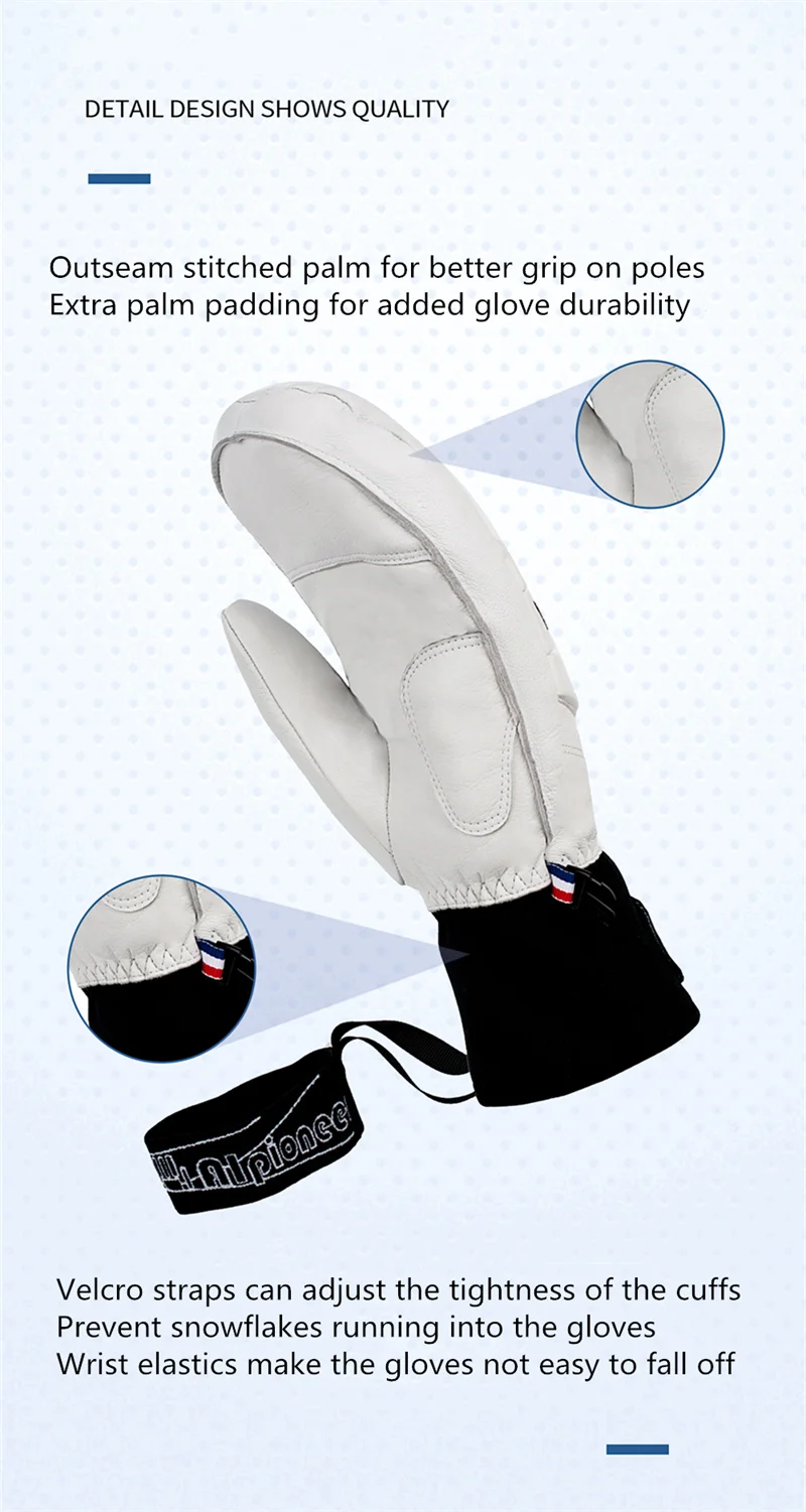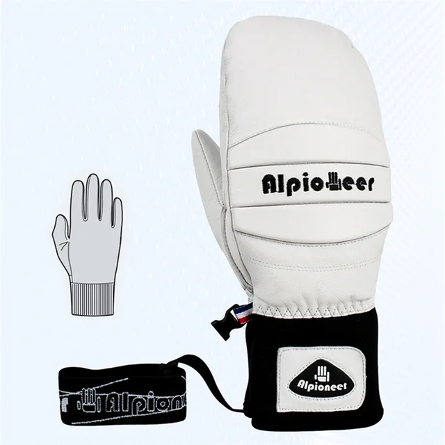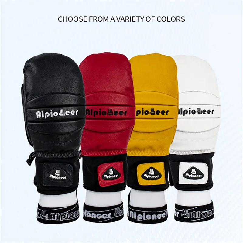 Ski Gloves Leather Snowboard Mittens for Men Women Skiing Snowmobile Snow Sports Winter Warm Thermal Gloves Waterproof Windproof