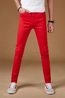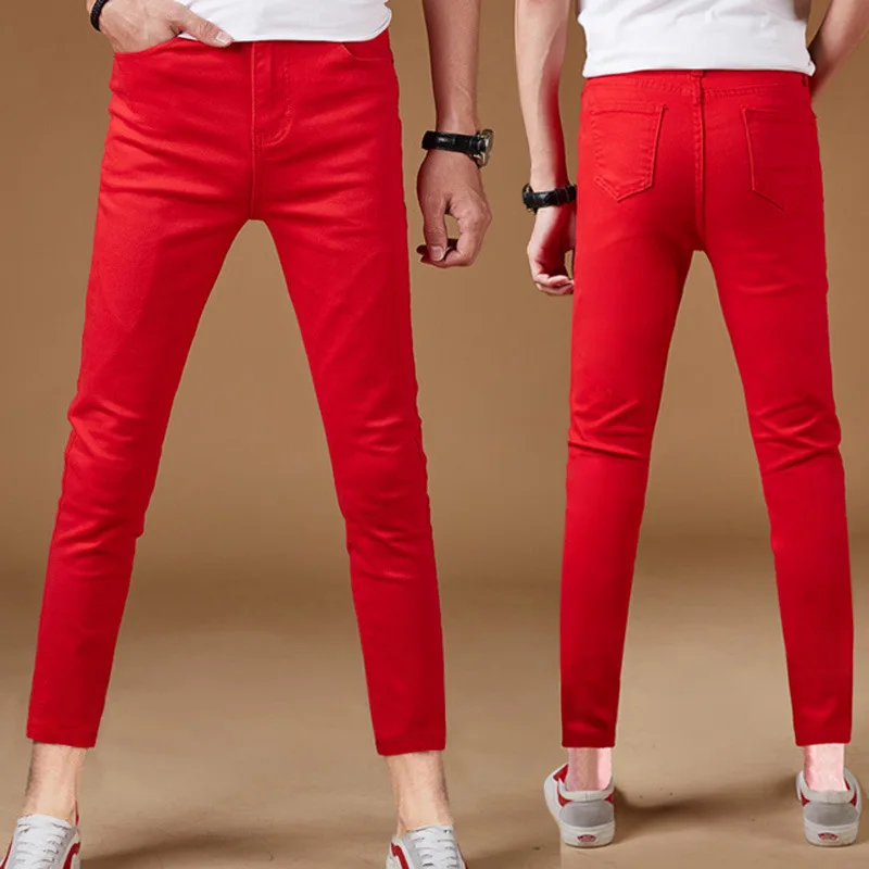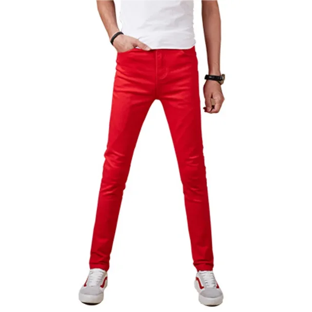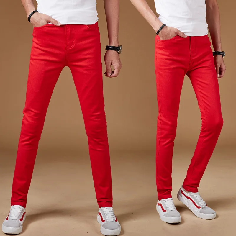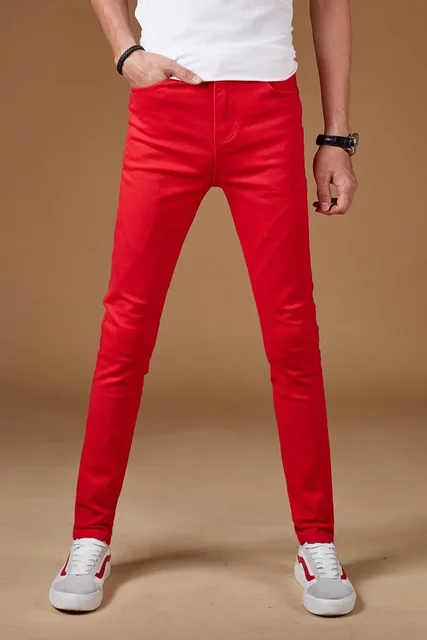 Men's Casual Stretch Skinny Jeans New Elastic Yellow Pink Red Slim Male Clothing Solid Color Simple Business Denim Trousers