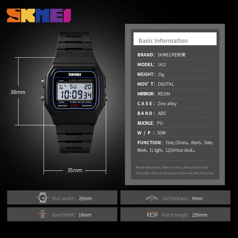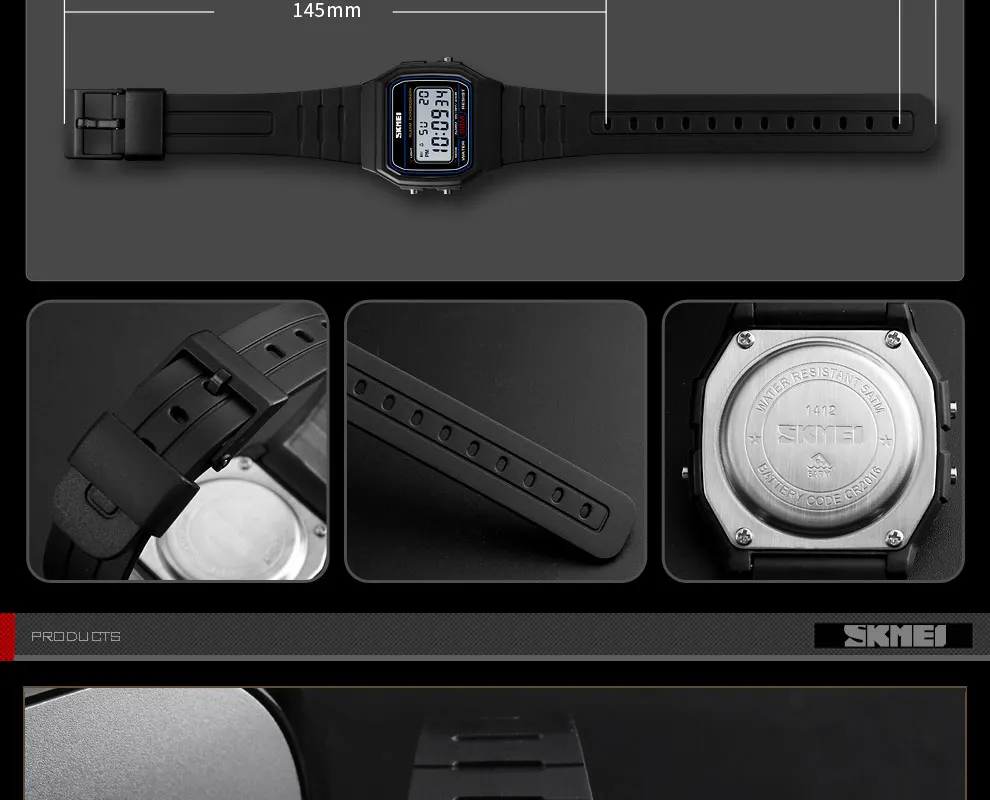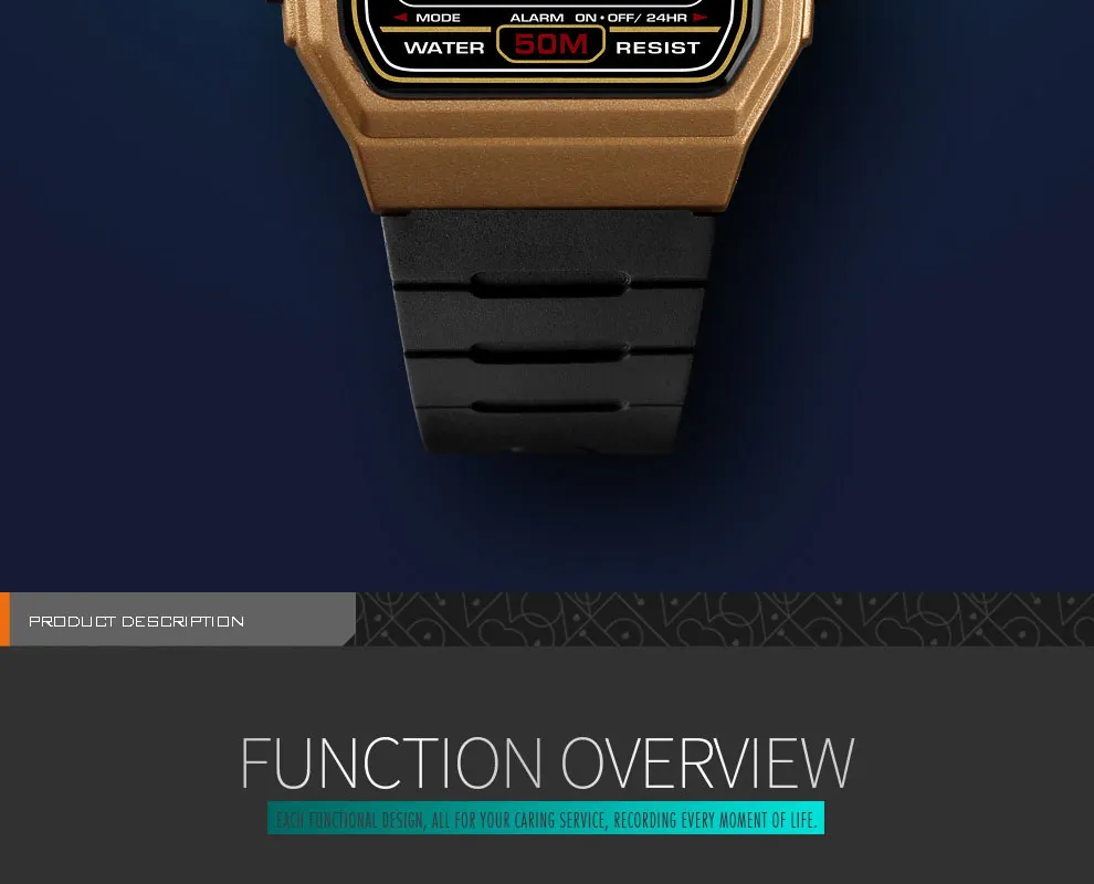 â–ª Functions:Stopwatch,50MWater Resistant,Alarm Clock,12/24 Hour Clock,EL Light,Date,Week