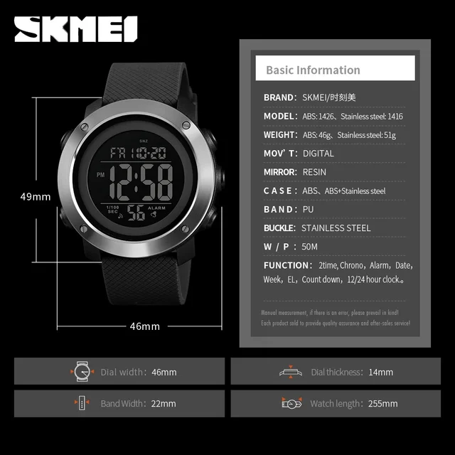 SKMEI 1426 Luxury Digital Watch for Men Sports Waterproof Electronic Mens Wristwatches Stopwatch Alarm Clock 1416 Reloj Hombre