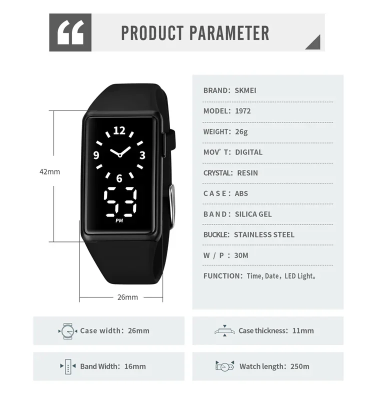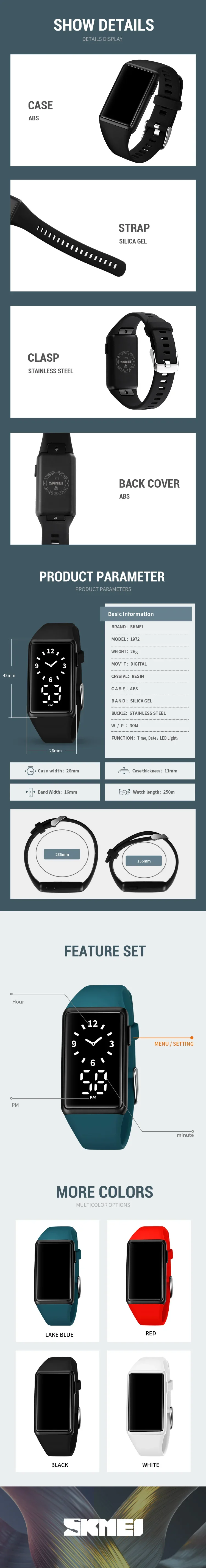 SKMEI 1972 Luxury Waterproof Electronic Minimalism Design Girl Boy Wristwatches Digital Sport Watch