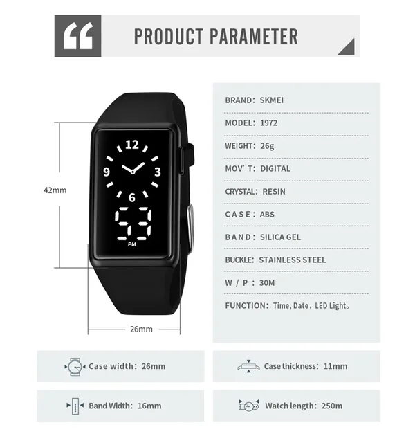 Be the first to review “SKMEI 1972 Luxury Waterproof Electronic Minimalism Design Girl Boy Wristwatches Digital Sport Watch”