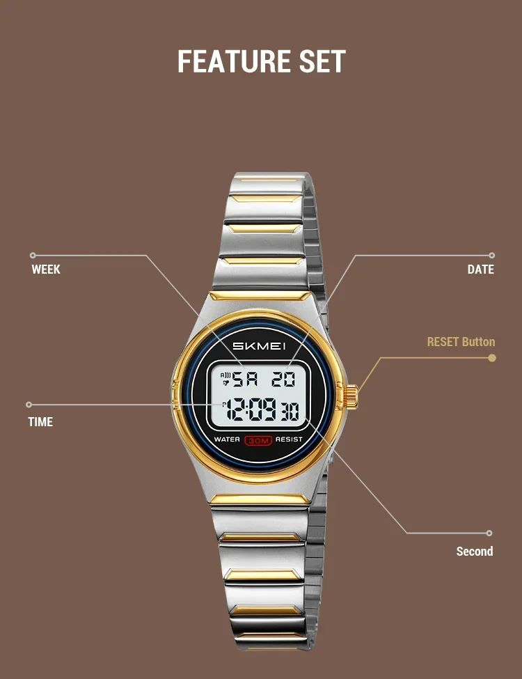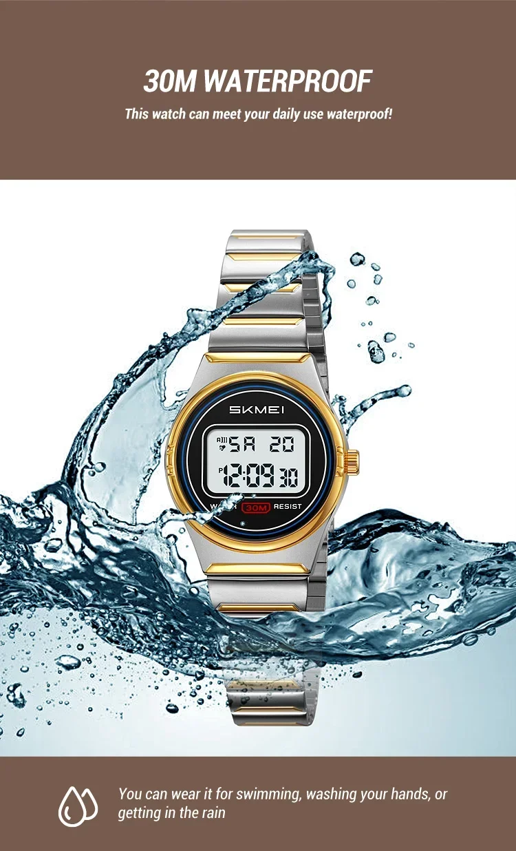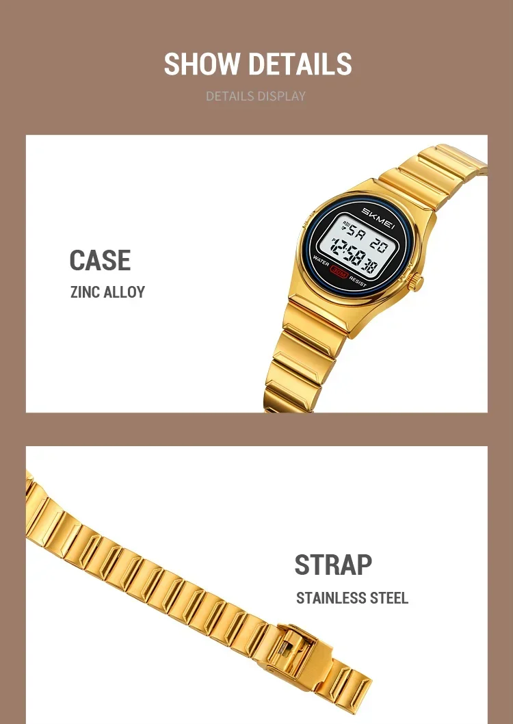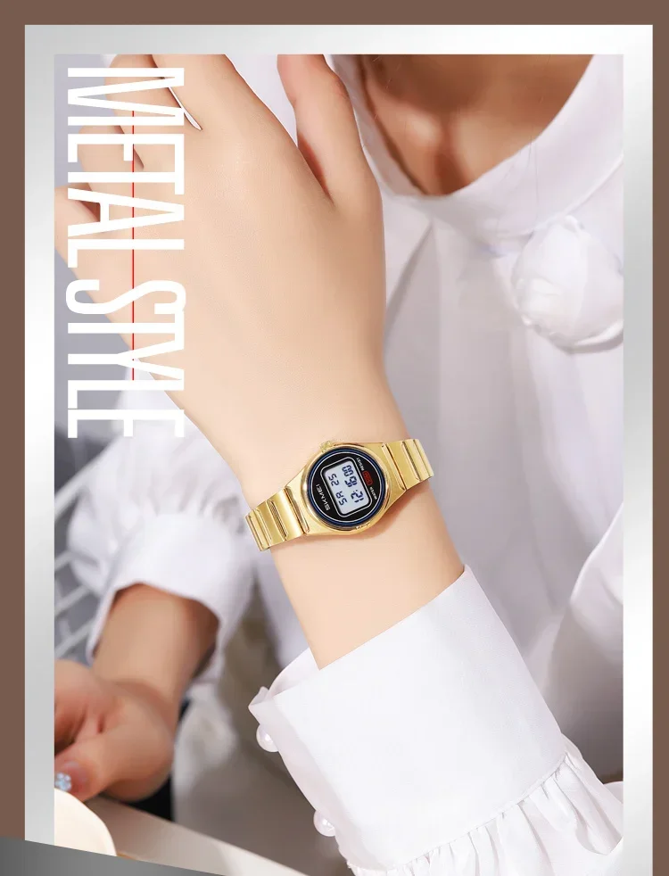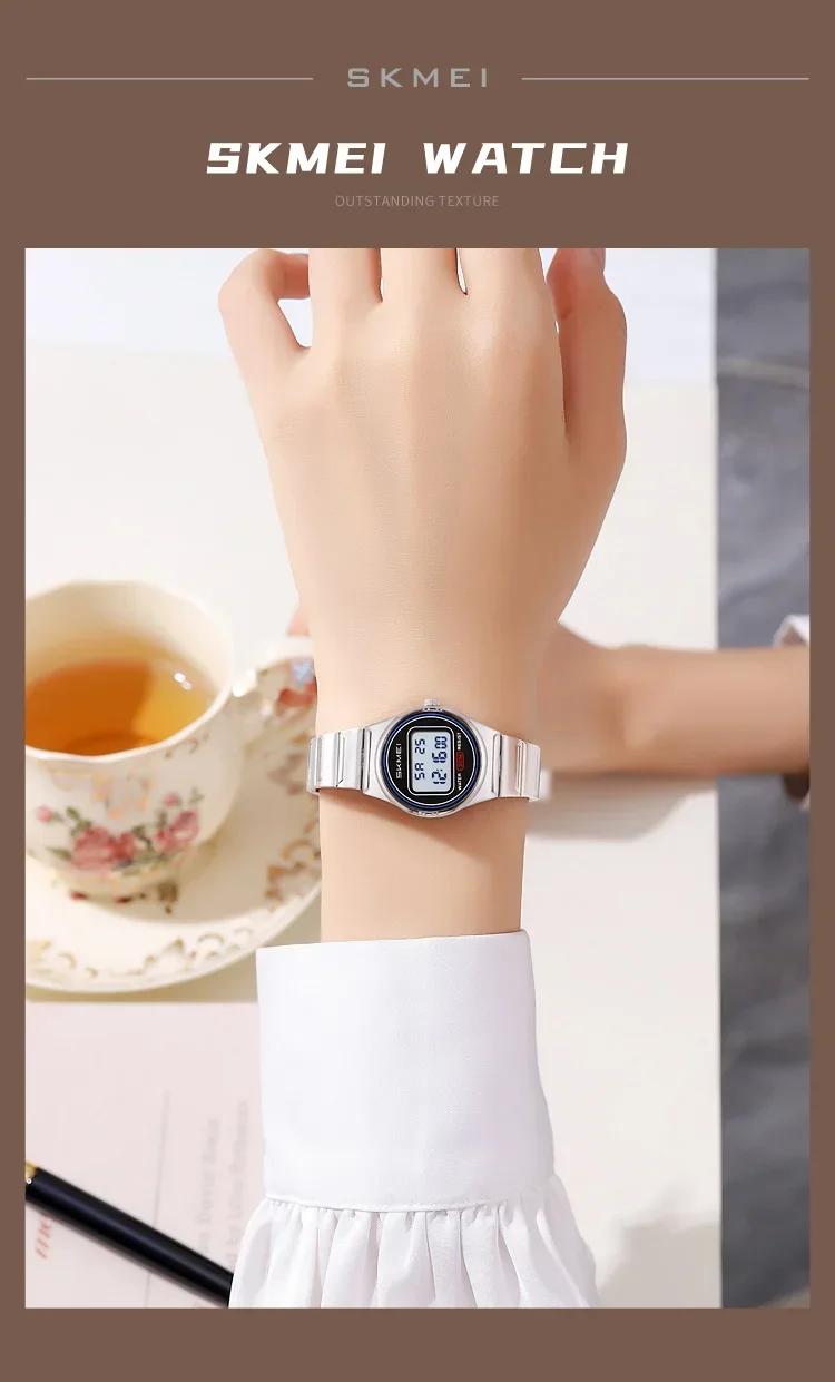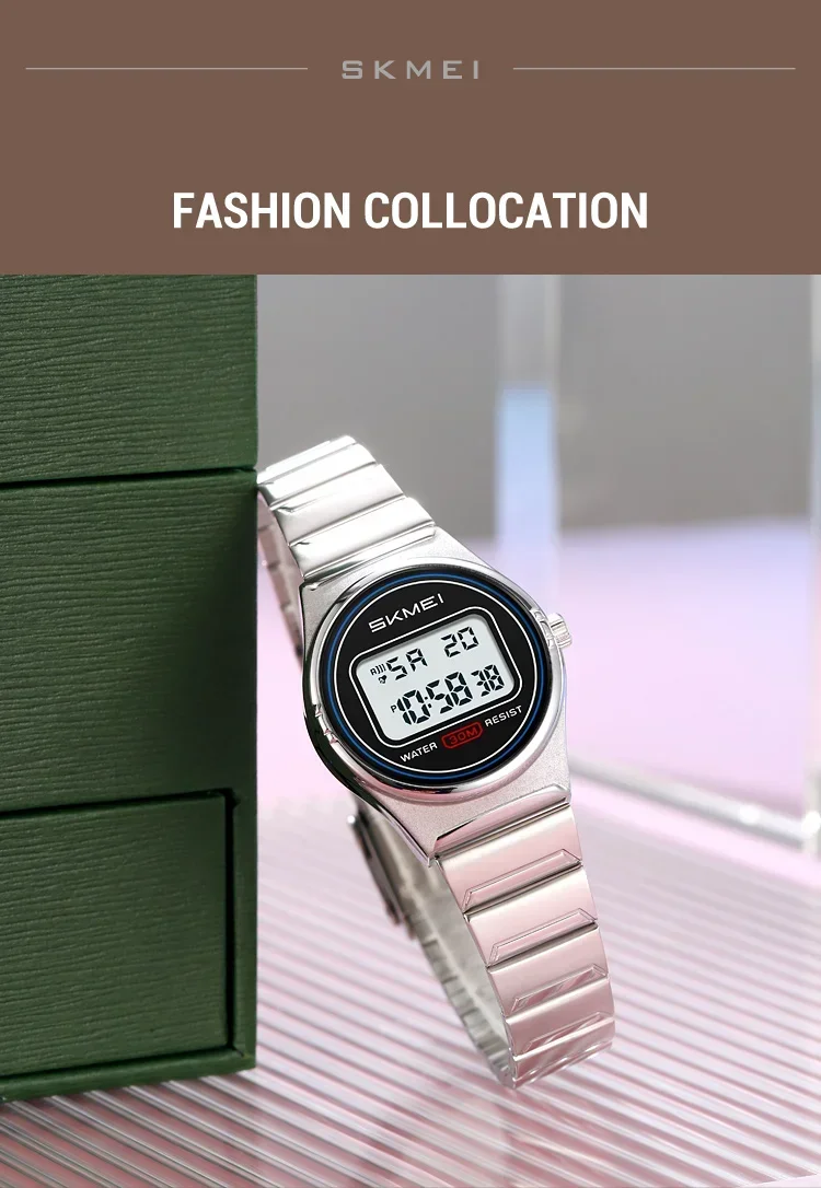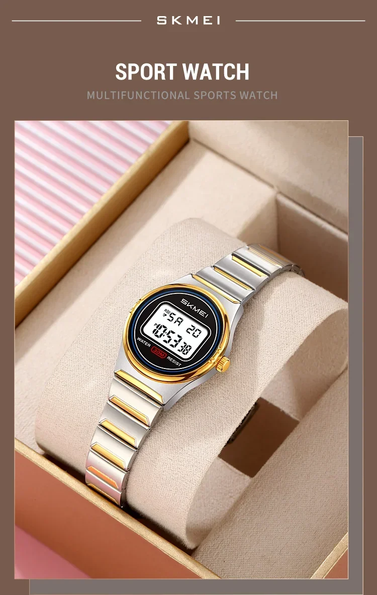 SKMEI 2338 Women Brands Luxury Watches Waterproof Sports Ladies Electronics Watch Small Digital Stainless Steel Wristwatches