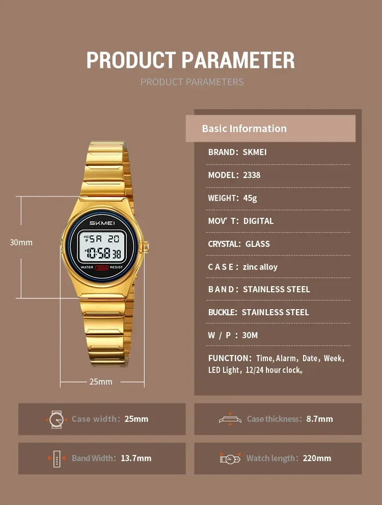 SKMEI 2338 Women Brands Luxury Watches Waterproof Sports Ladies Electronics Watch Small Digital Stainless