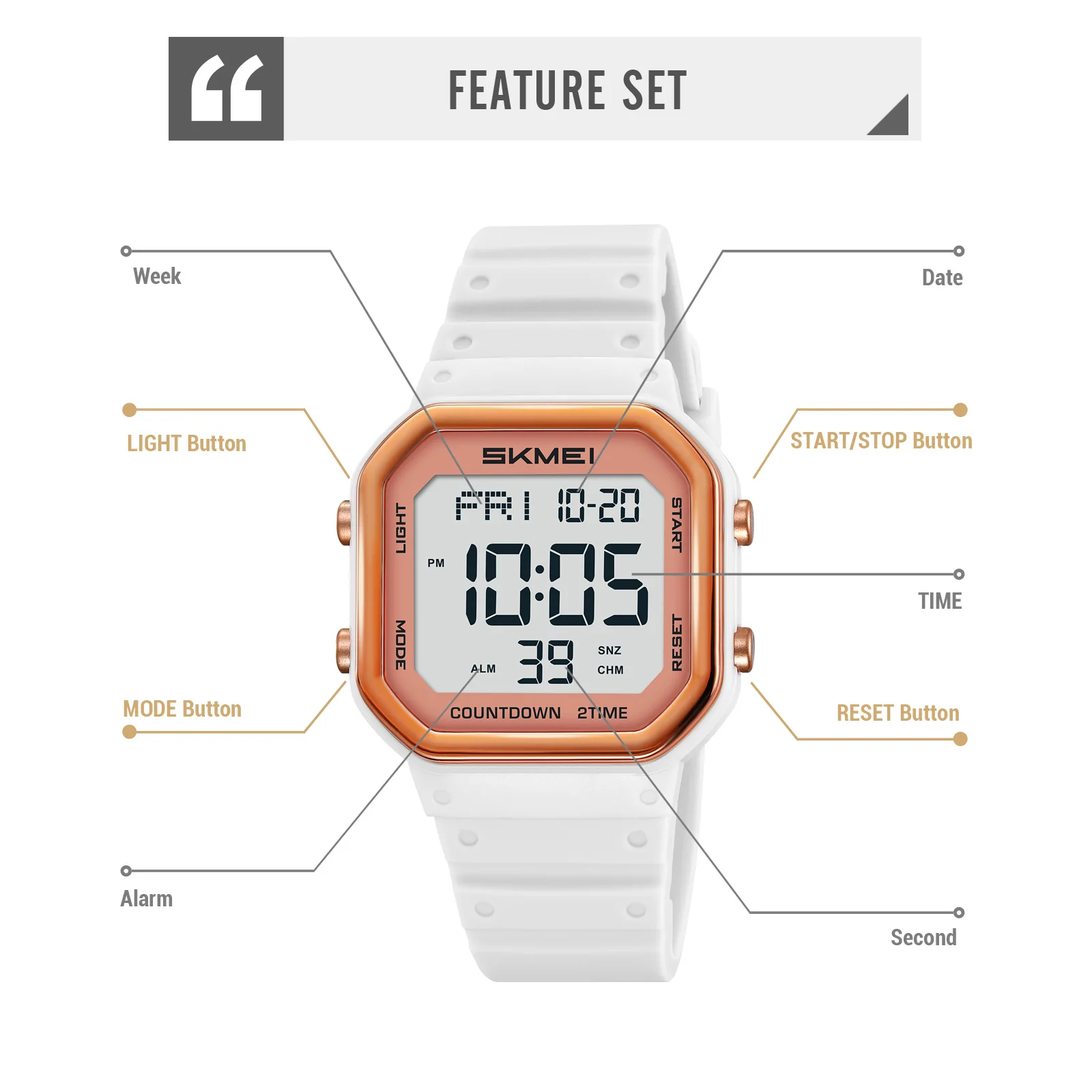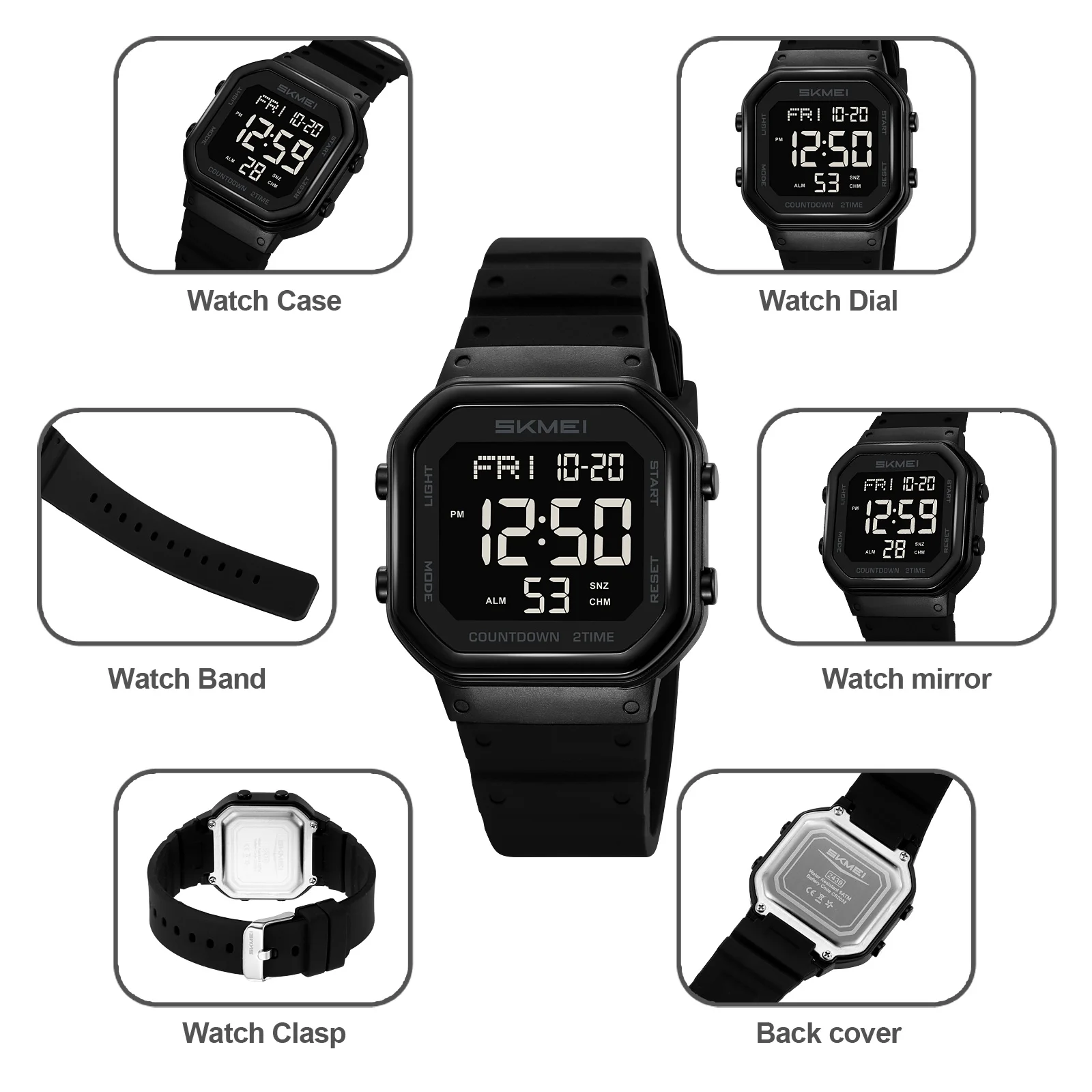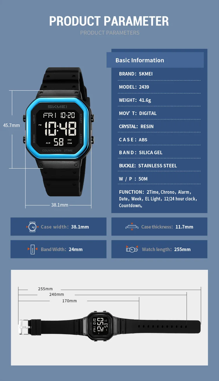 SKMEI Casual Digital Movement Fashion Countdown Calendar Sport Watch Women Waterproof Ladies Watches Dress accessory Watch 2439