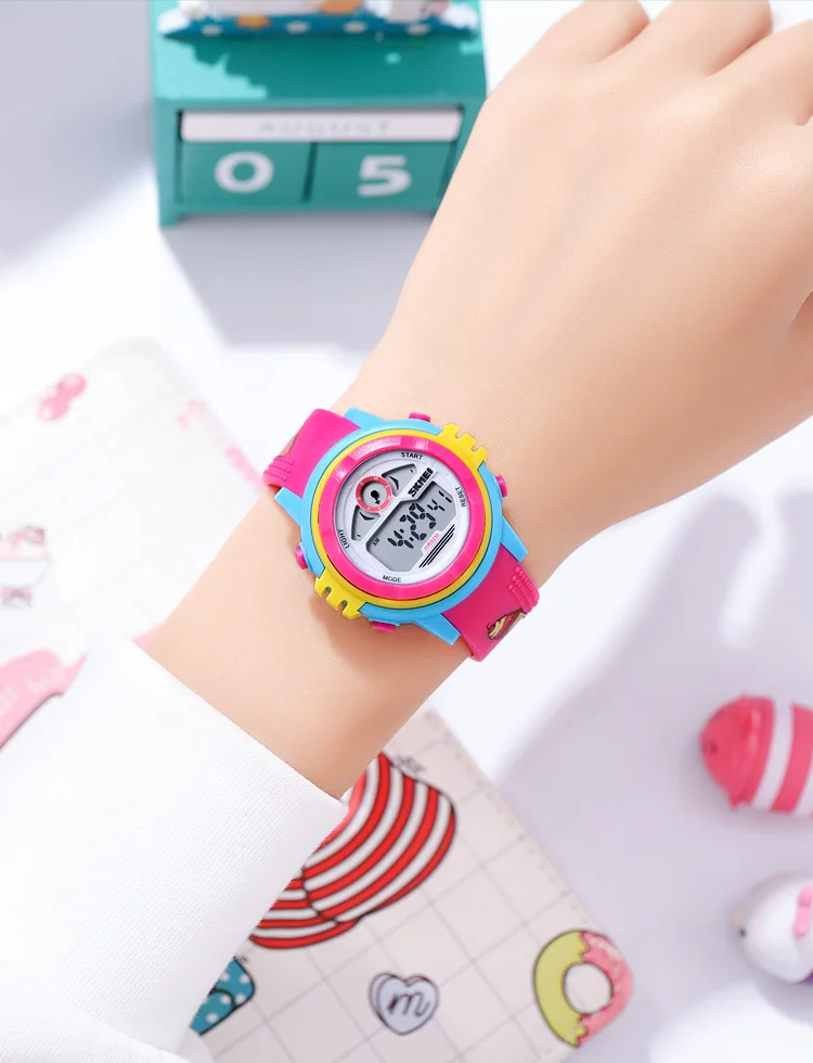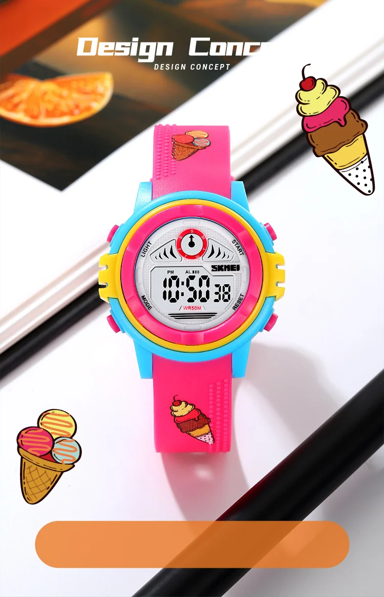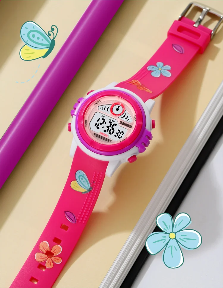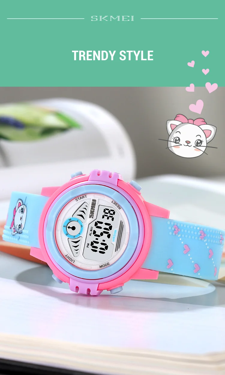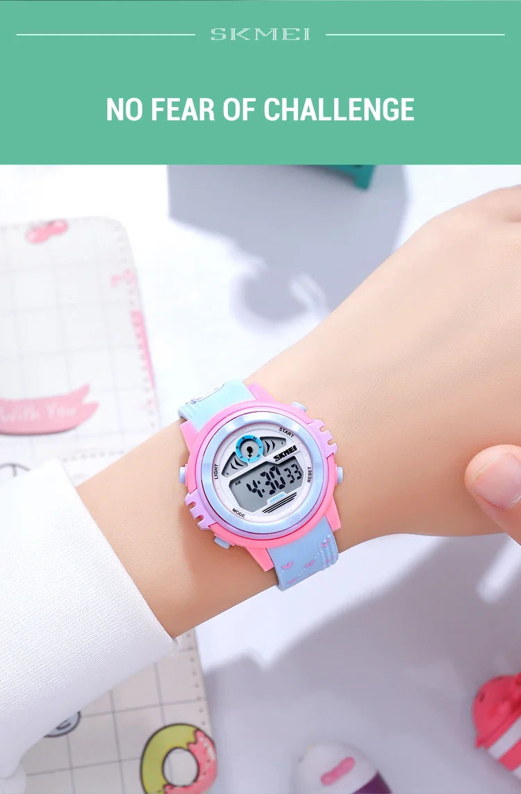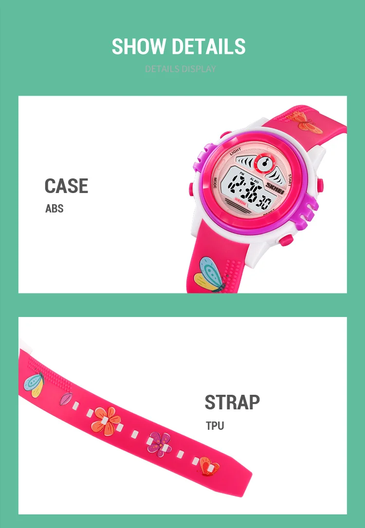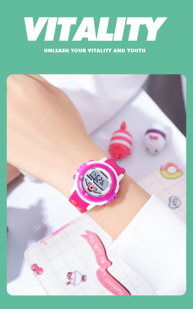 SKMEI Cute Cartoon LED Light Stopwatch Children Watch 50m Waterproof Kids Digital Wristwatches For Boys Girls Clock Alarm Clock