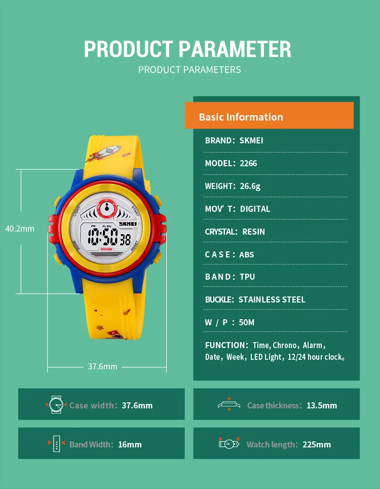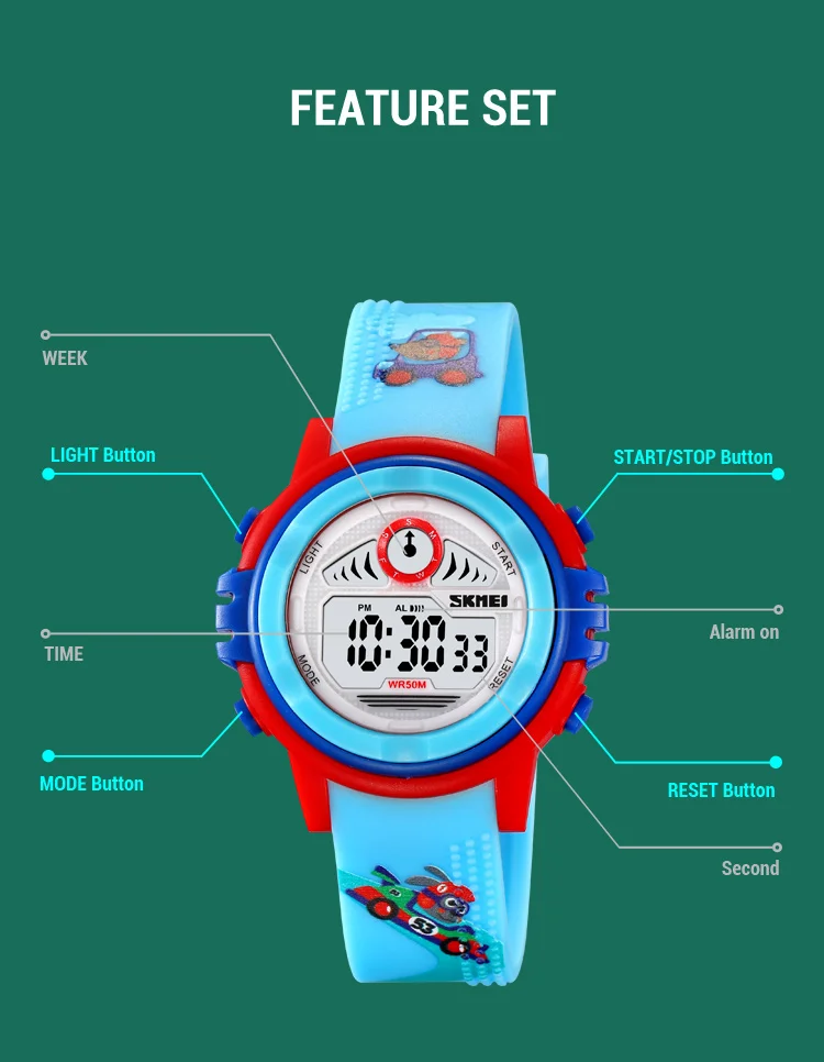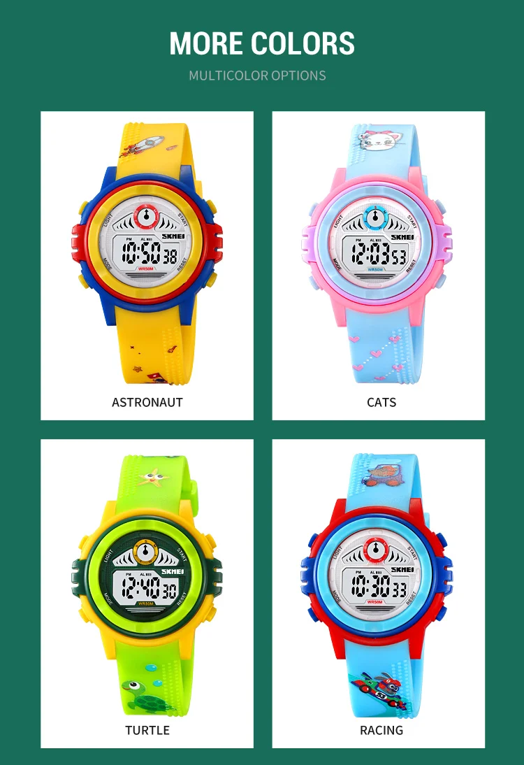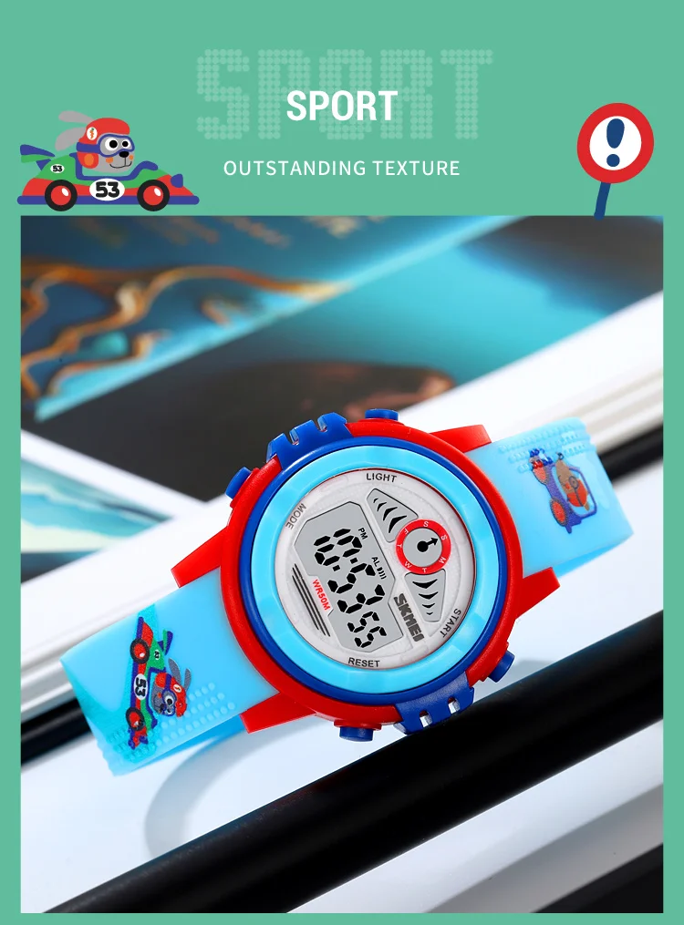 Be the first to review “SKMEI Cute Cartoon LED Light Stopwatch Children Watch 50m Waterproof Kids Digital Wristwatches For Boys”