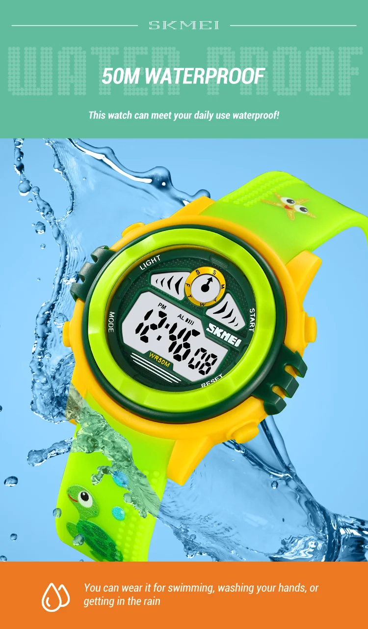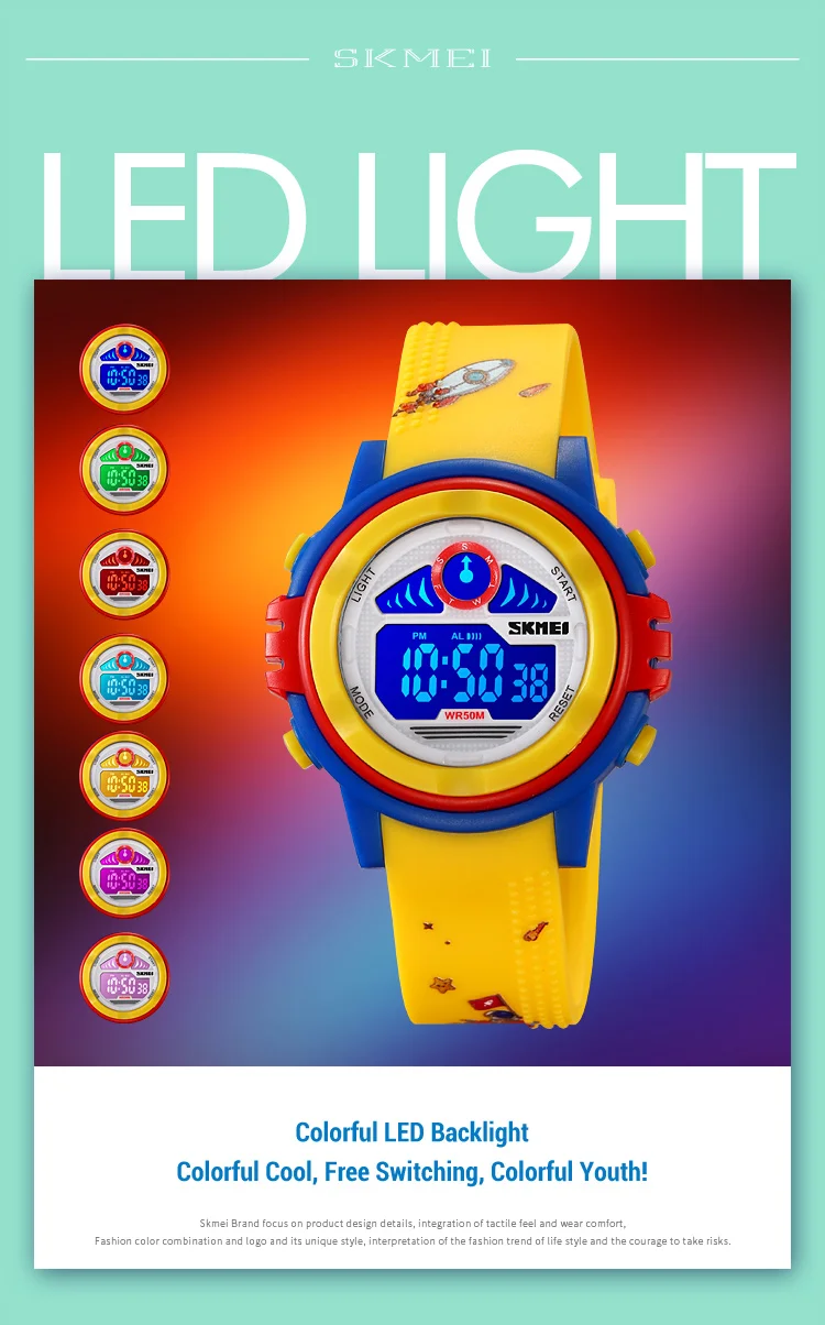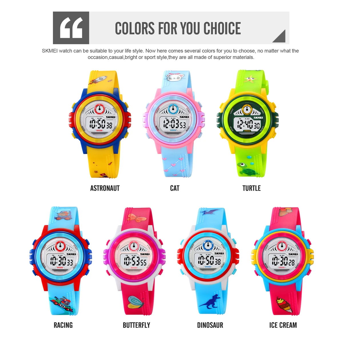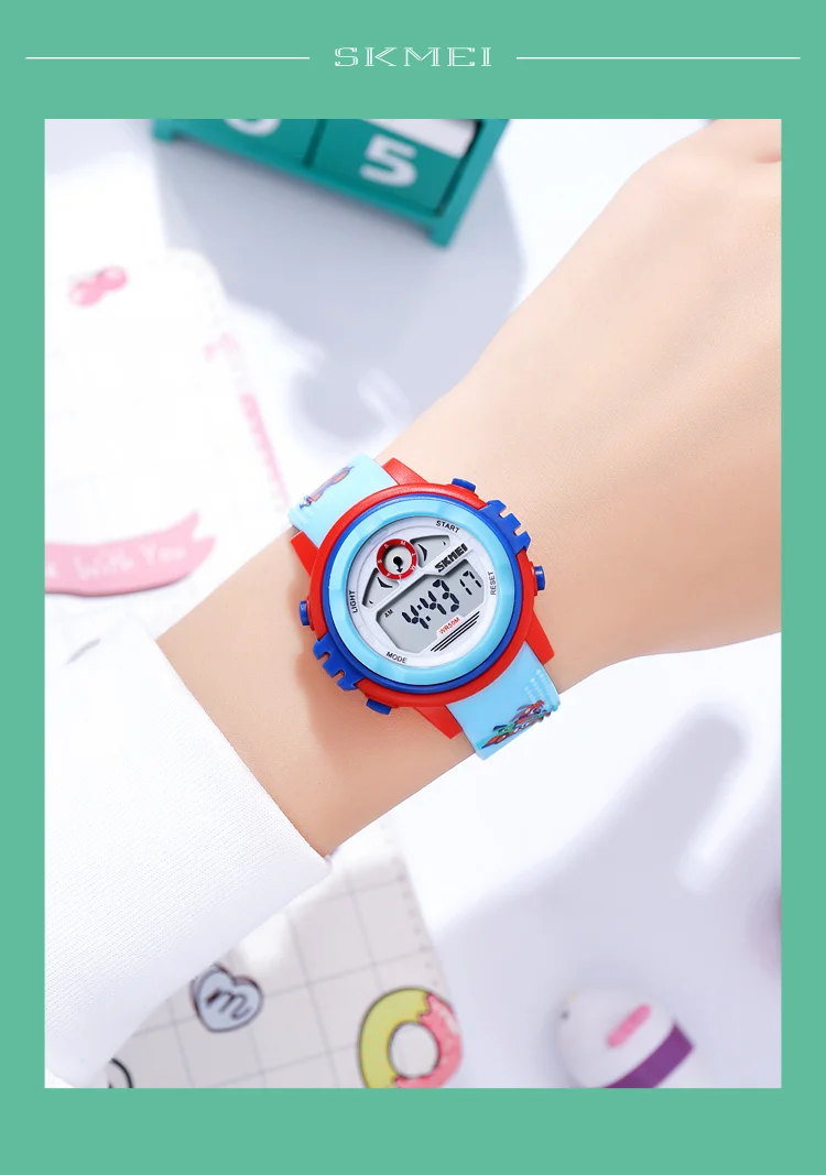 SKMEI Cute Cartoon LED Light Stopwatch Children Watch 50m Waterproof Kids Digital Wristwatches For Boys