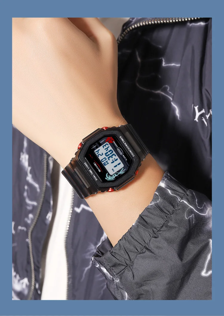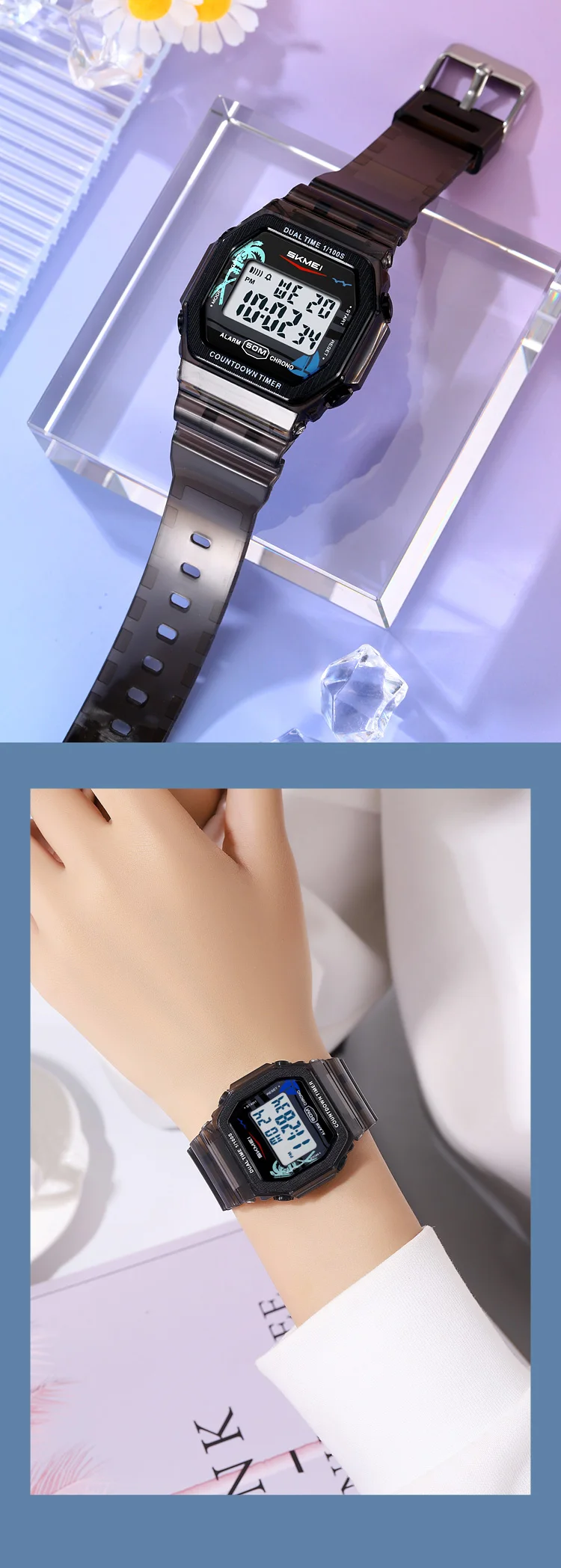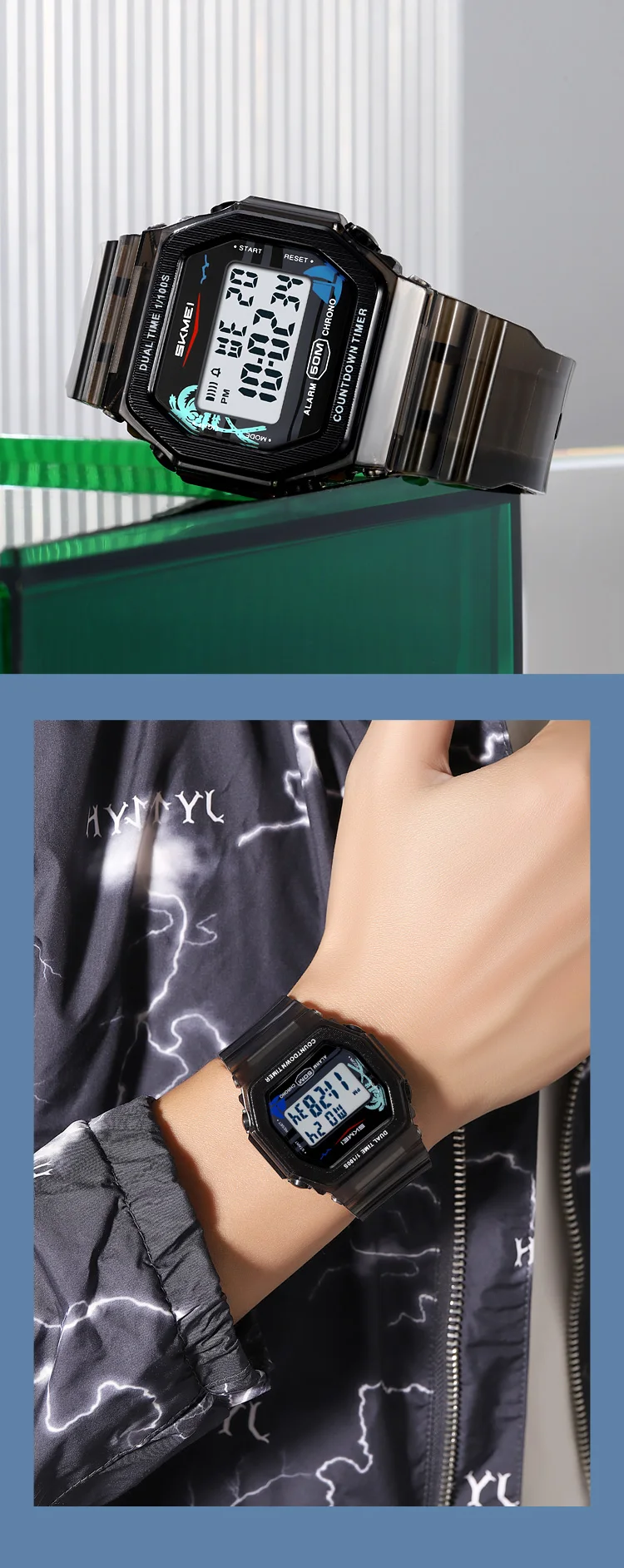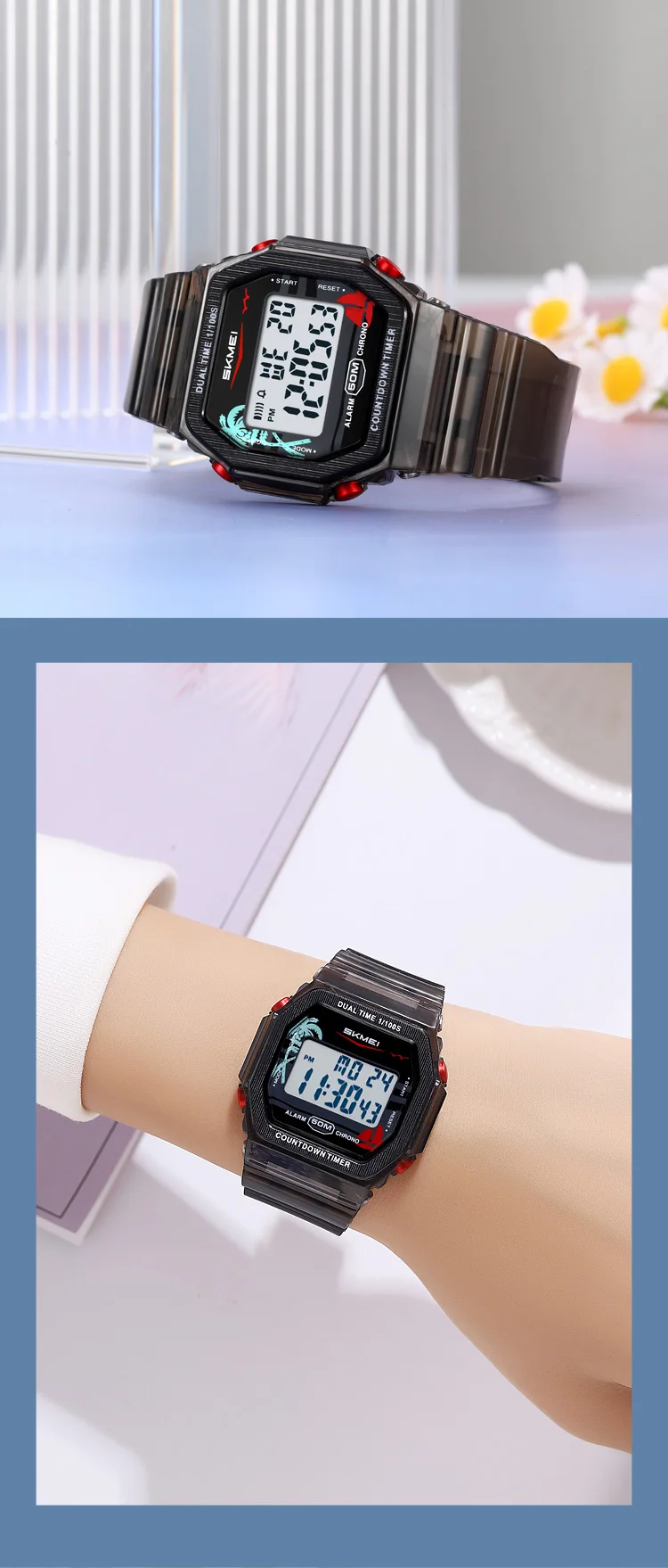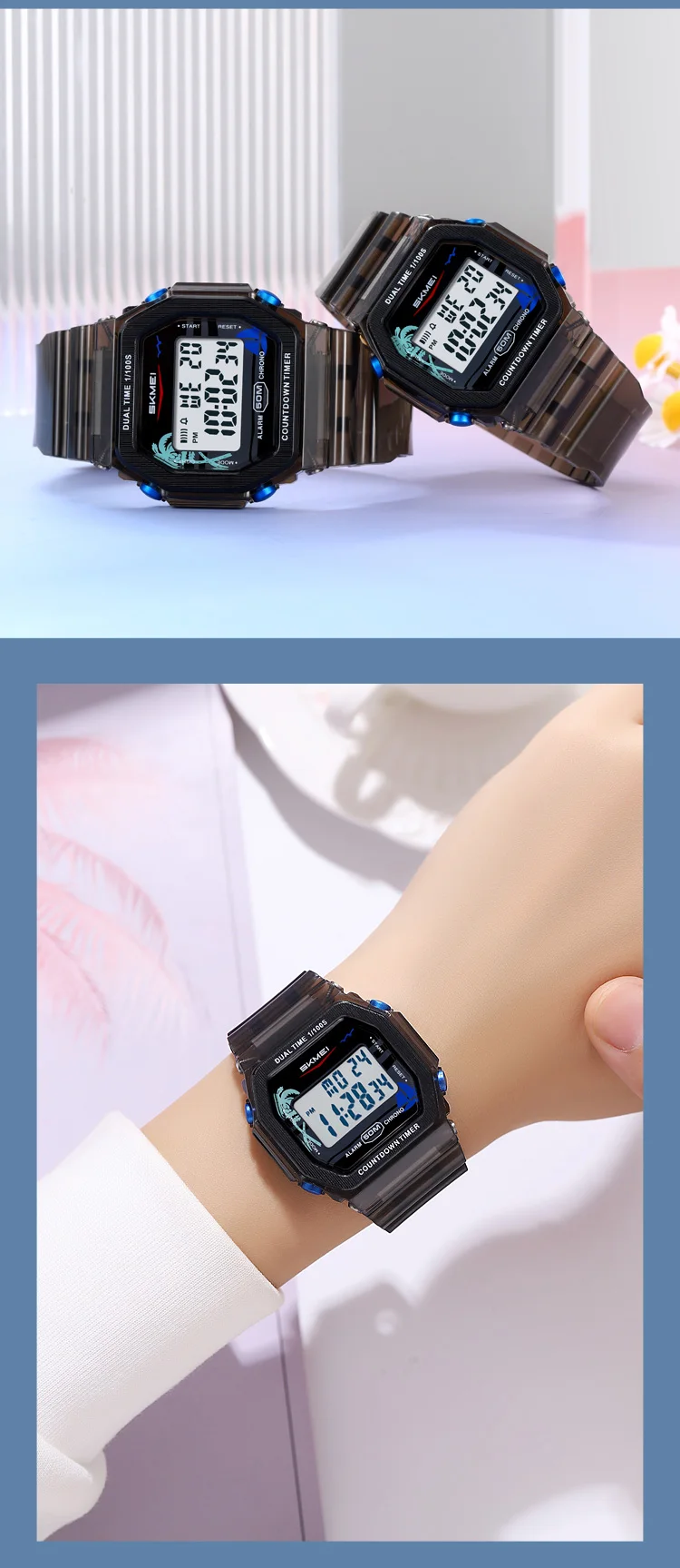 SKMEI Digital Electronics Wristwatches For Men Women Students Waterproof Sports Count down timer Watch EL Light Watches Square