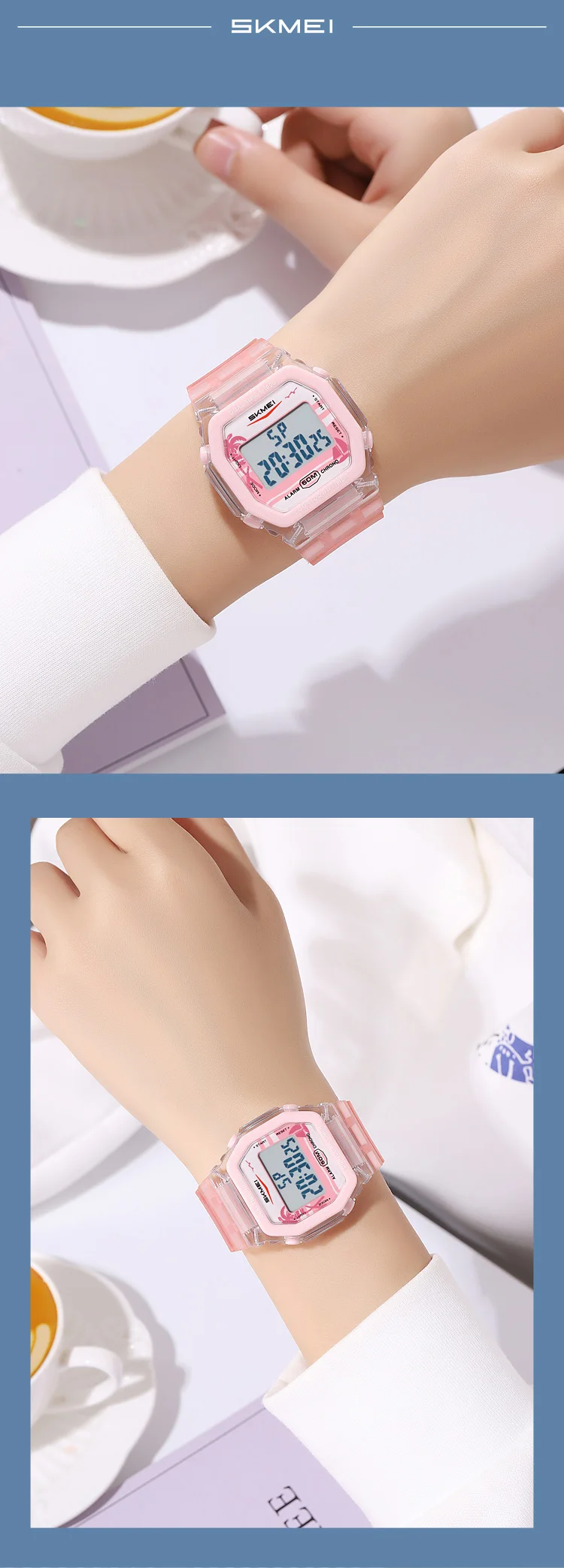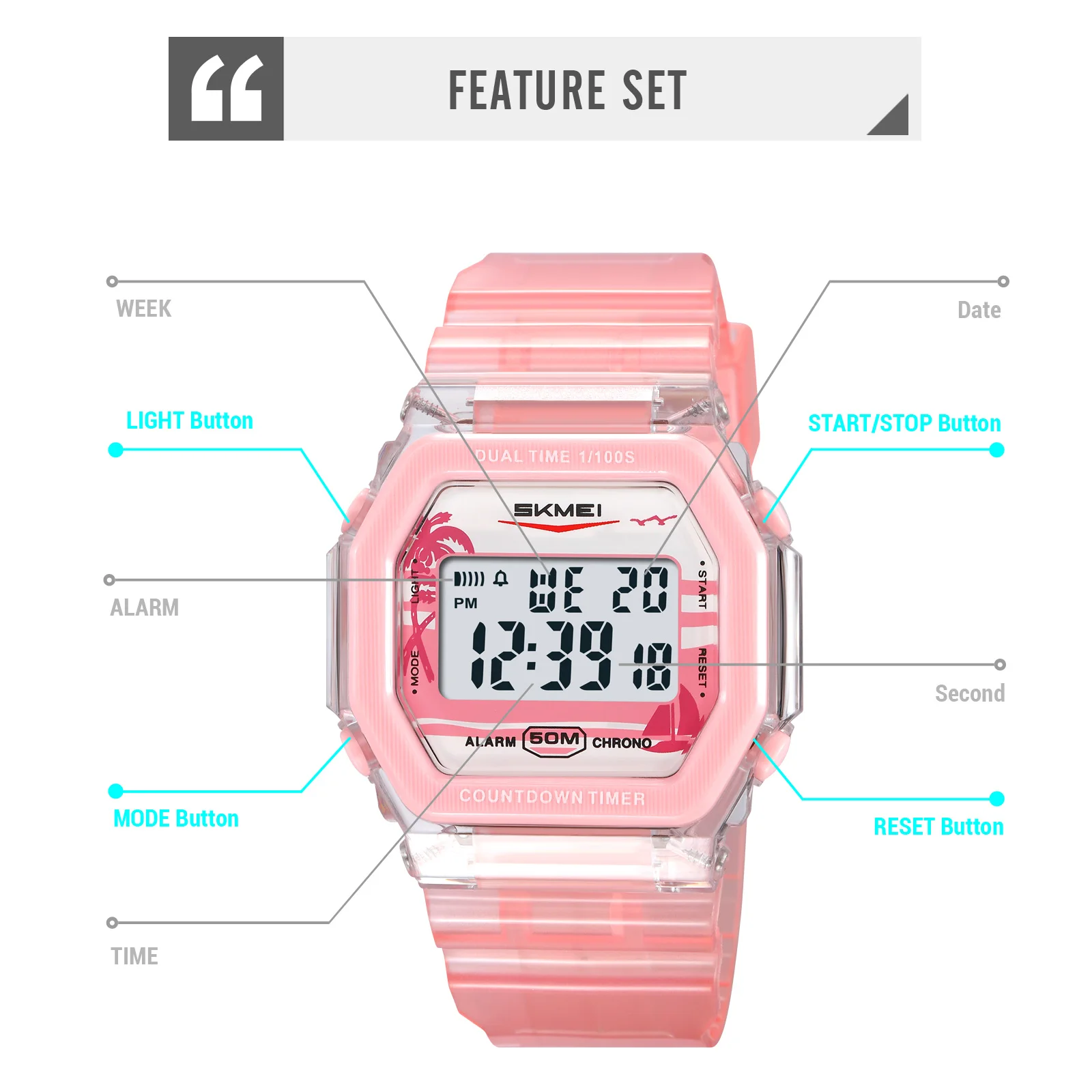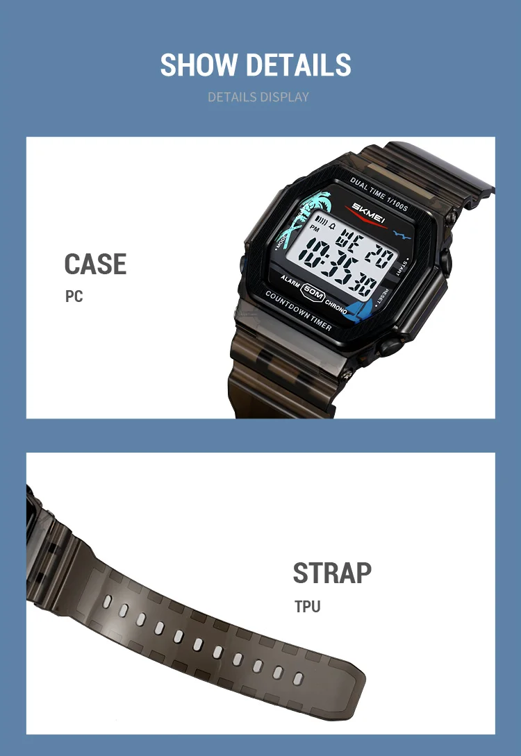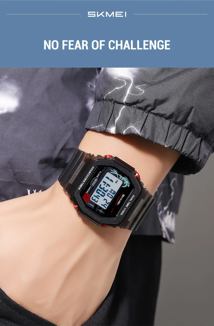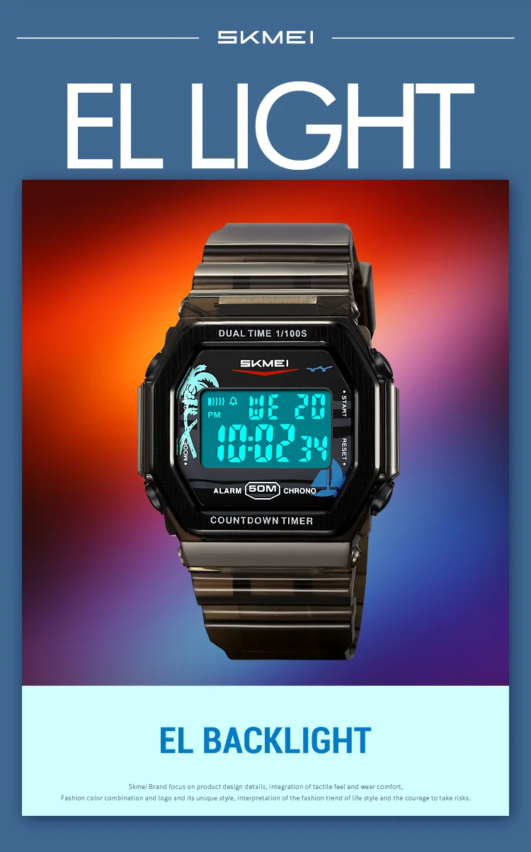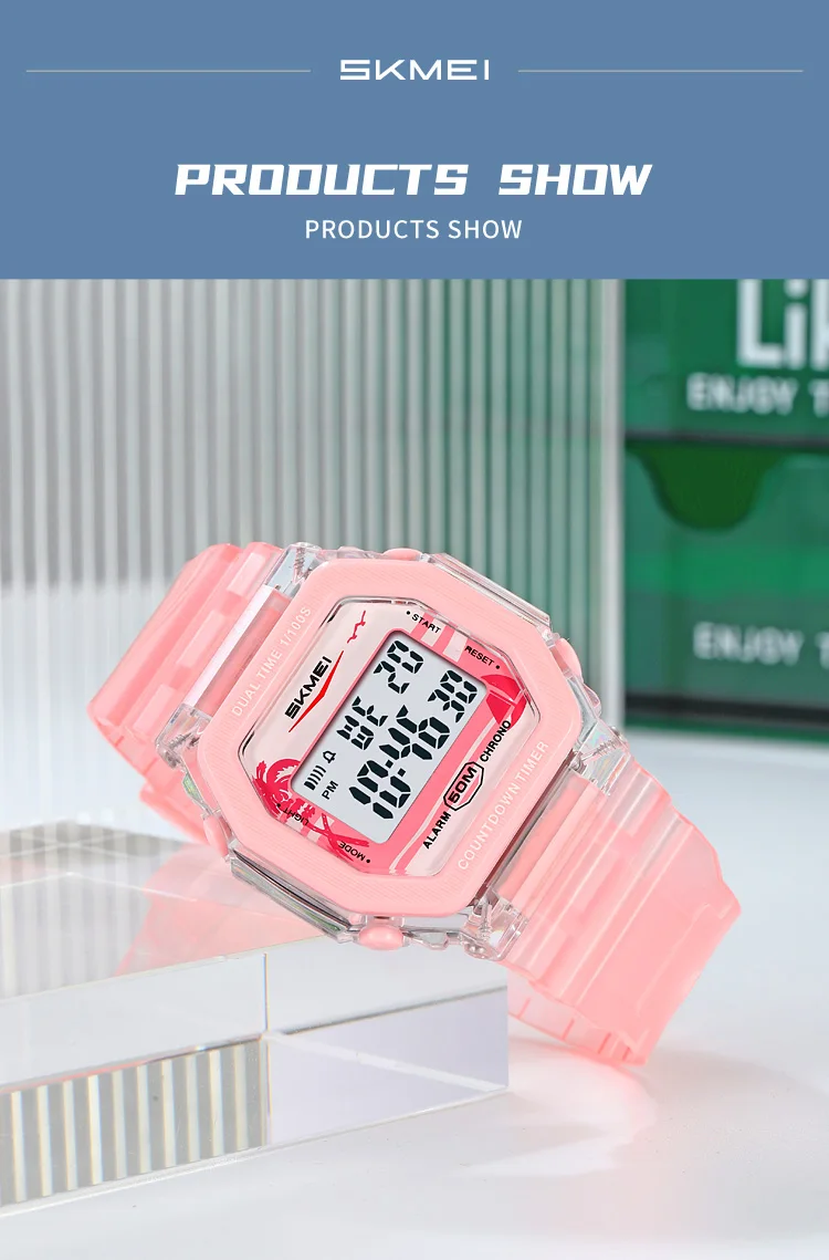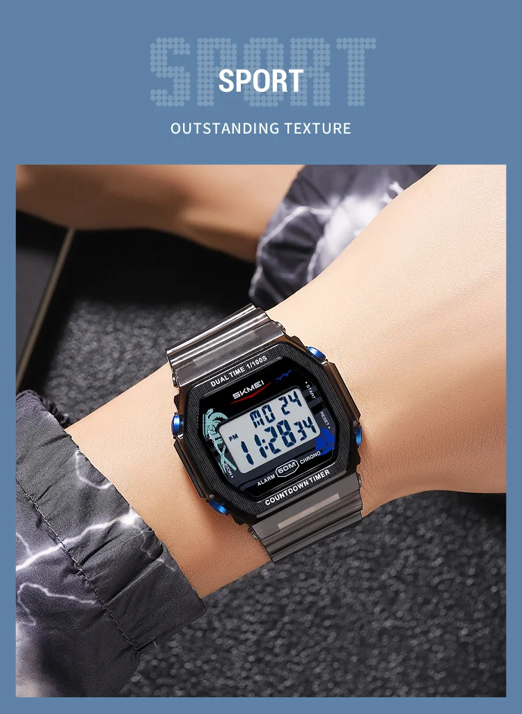SKMEI Digital Electronics Wristwatches For Men Women Students Waterproof Sports Count down timer Watch EL Light Watches Square