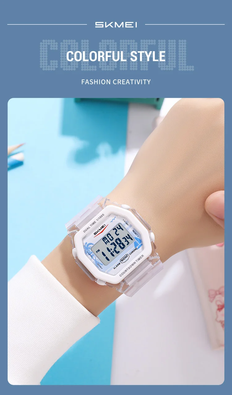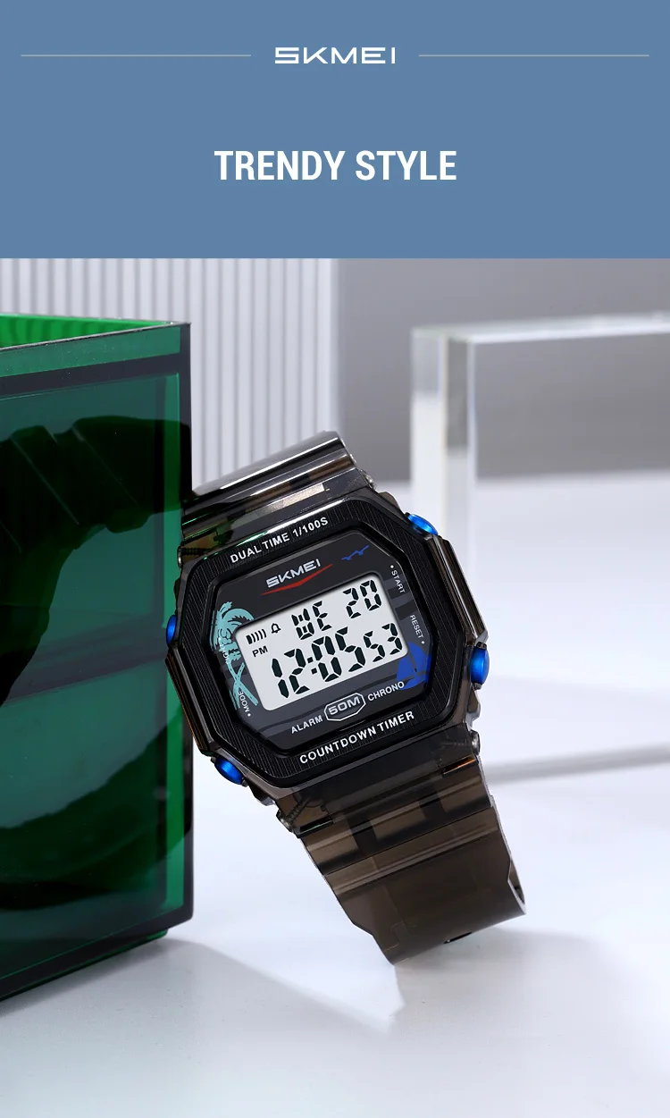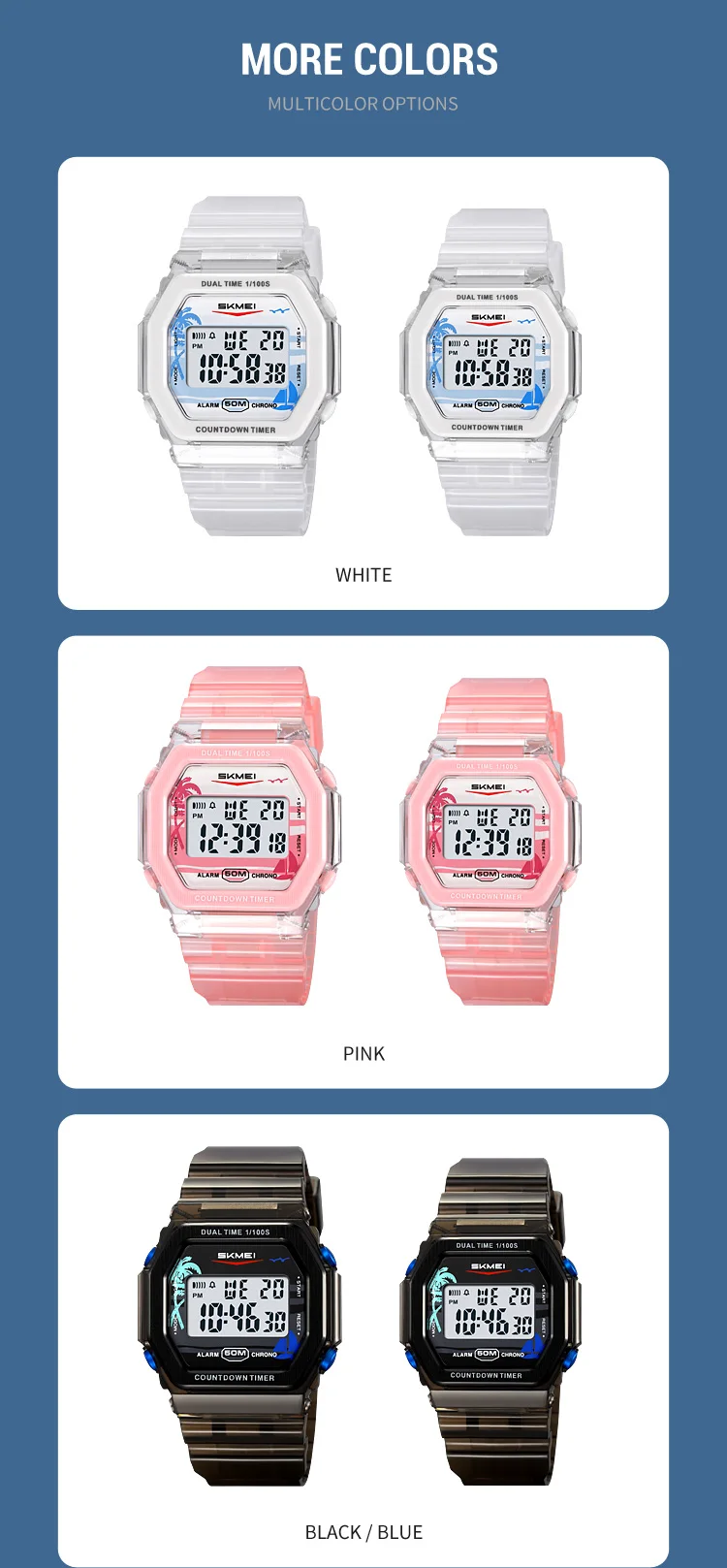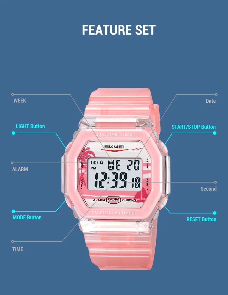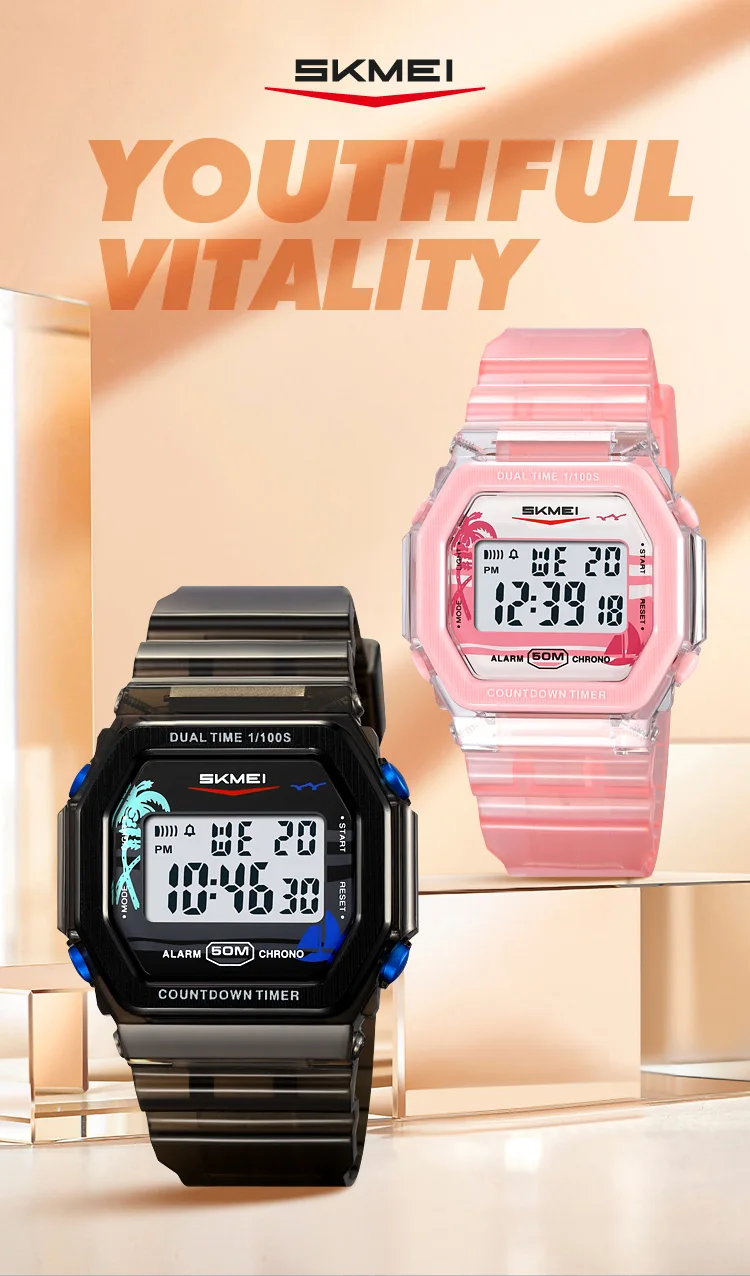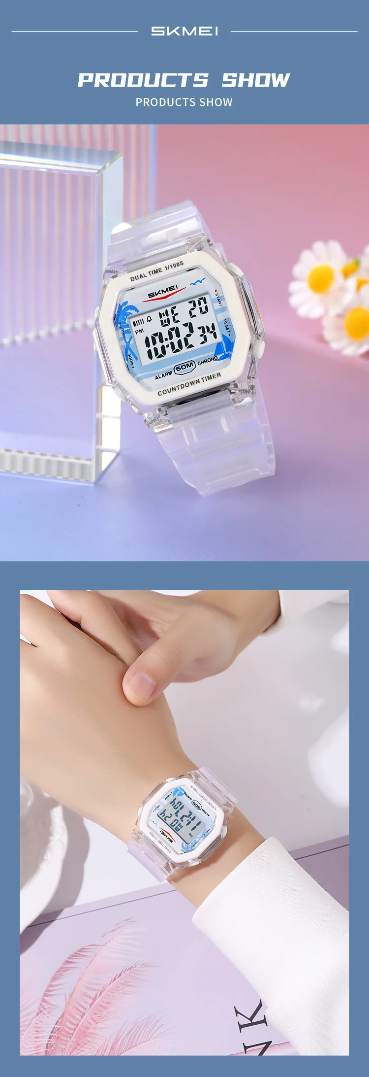 SKMEI Digital Electronics Wristwatches For Men Women Students Waterproof Sports Count down timer Watch EL Light Watches Square