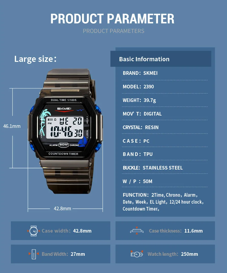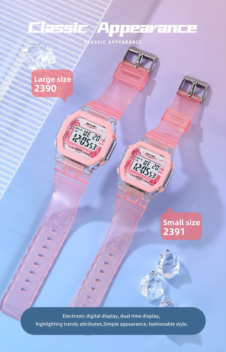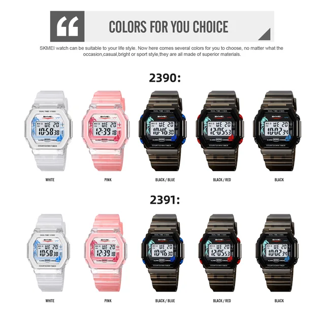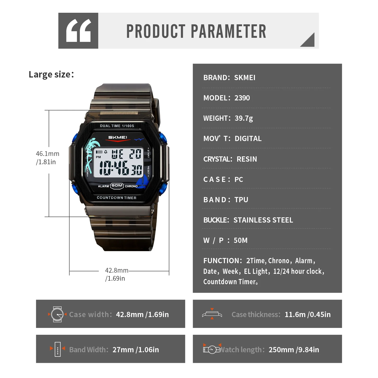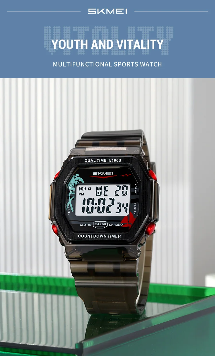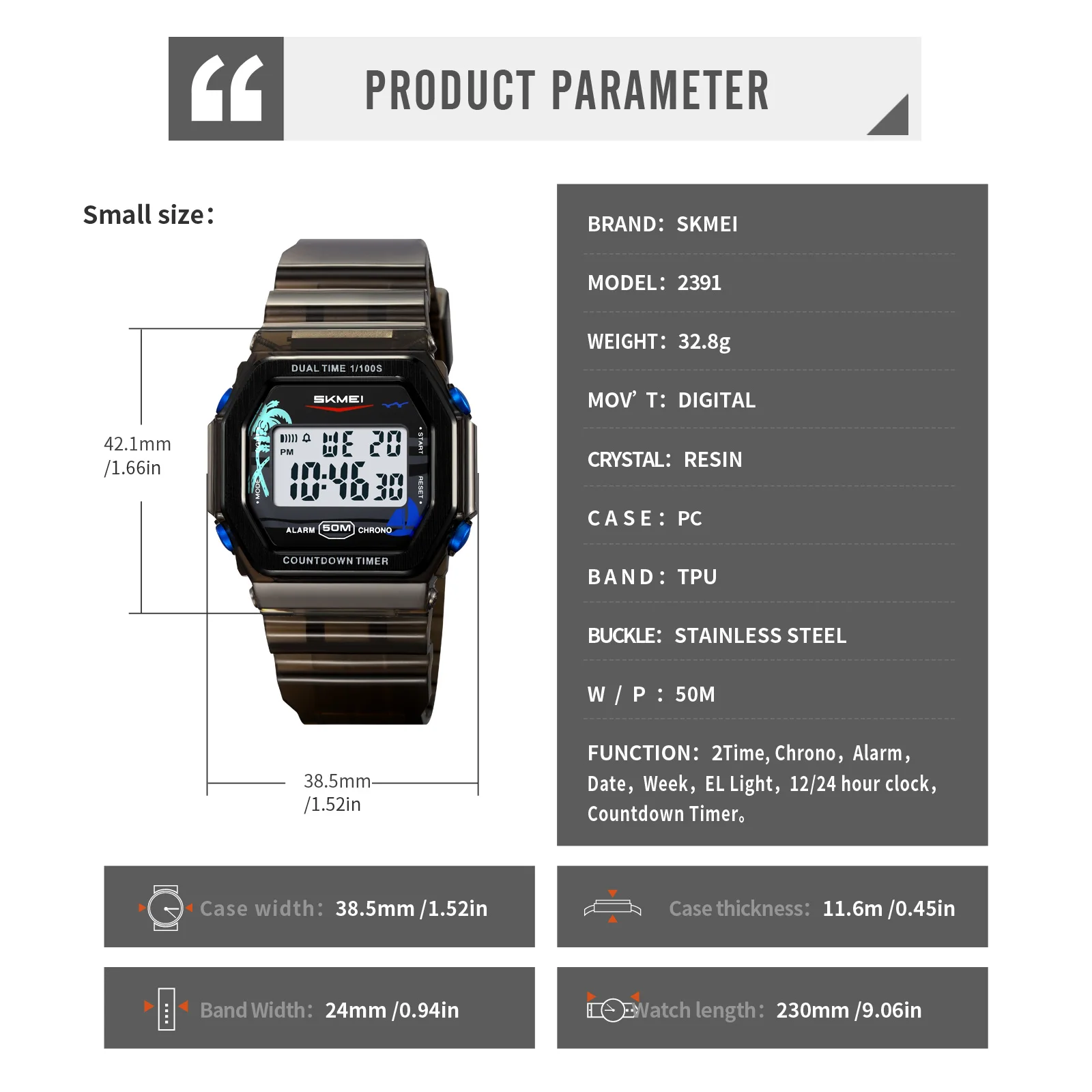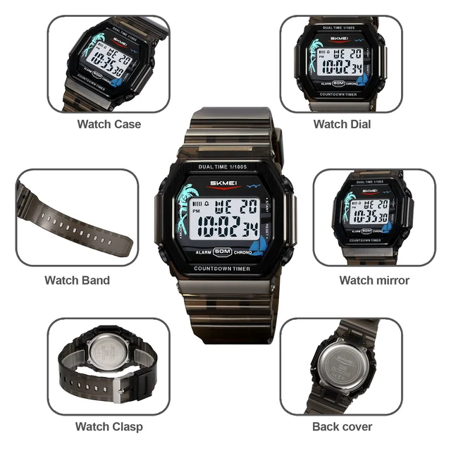 SKMEI Digital Electronics Wristwatches For Men Women Students Waterproof Sports Count down timer Watch EL Light Watches Square