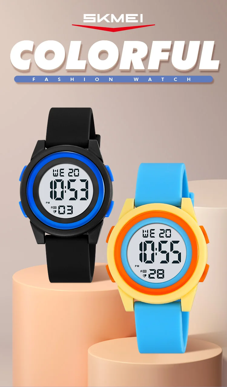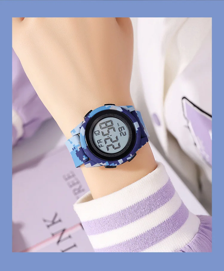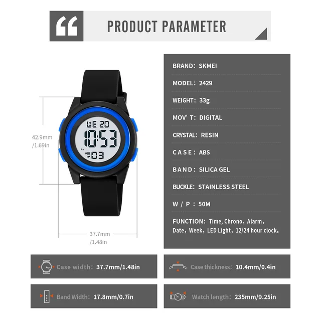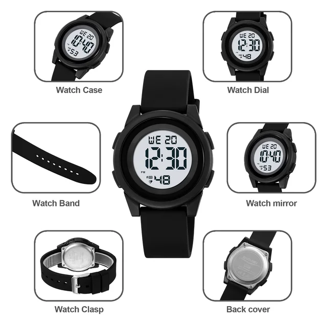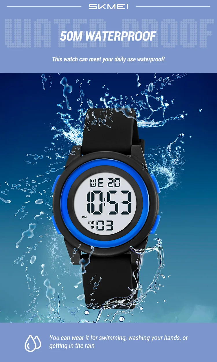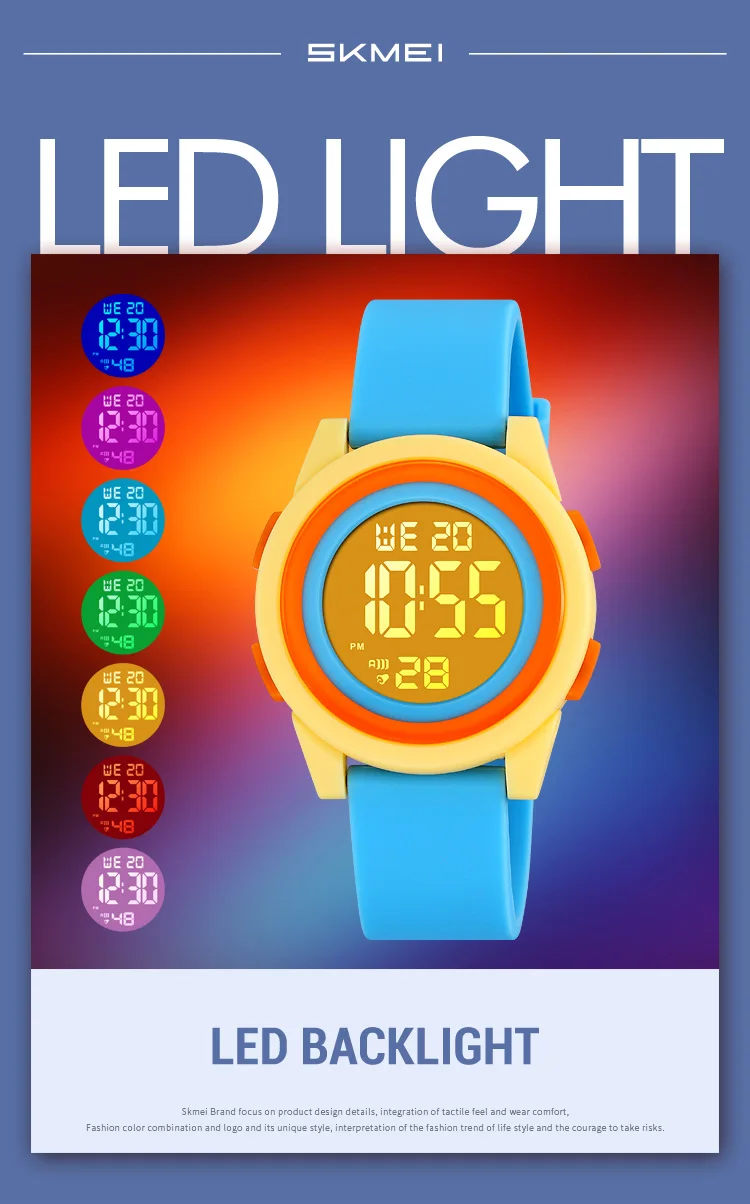 SKMEI Kids Digital LED Black Light Stopwatch Children Watch 50m Waterproof Wristwatches For Boys Girls Clock Alarm Clock 2429