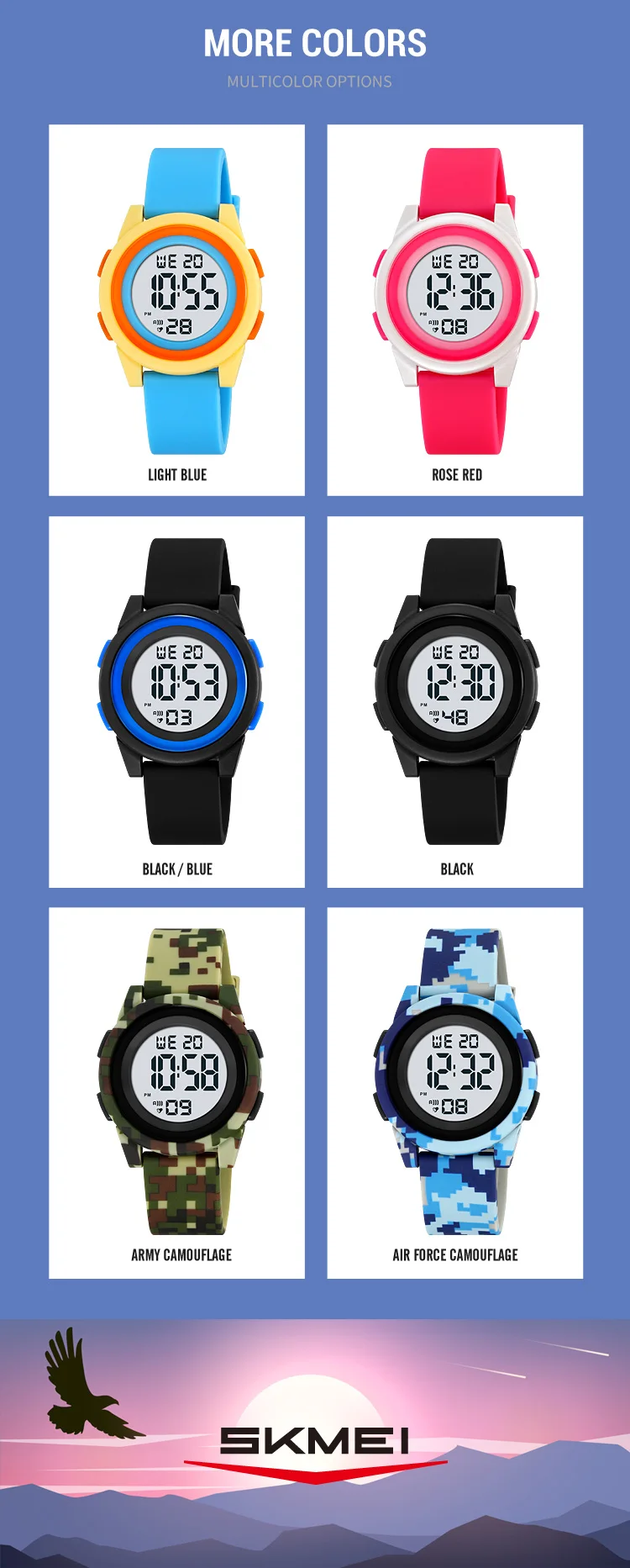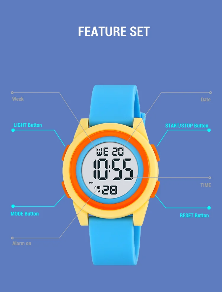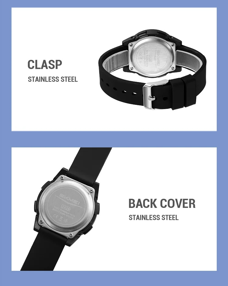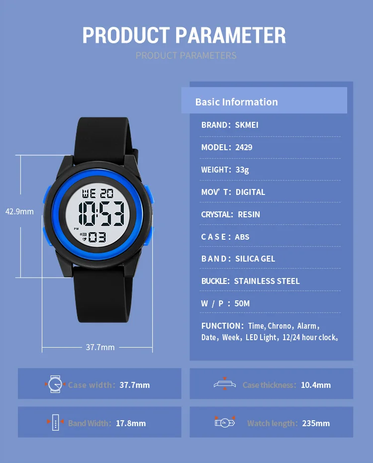 SKMEI Kids Digital LED Black Light Stopwatch Children Watch 50m Waterproof Wristwatches For Boys Girls Clock Alarm Clock 2429