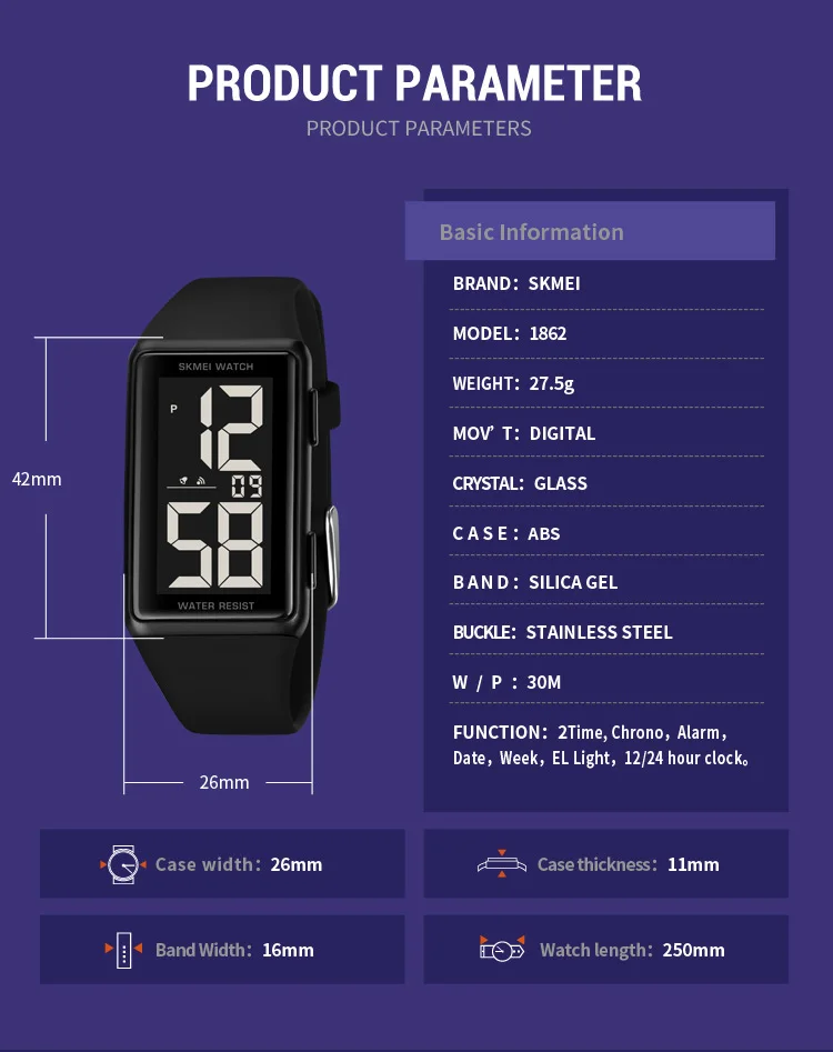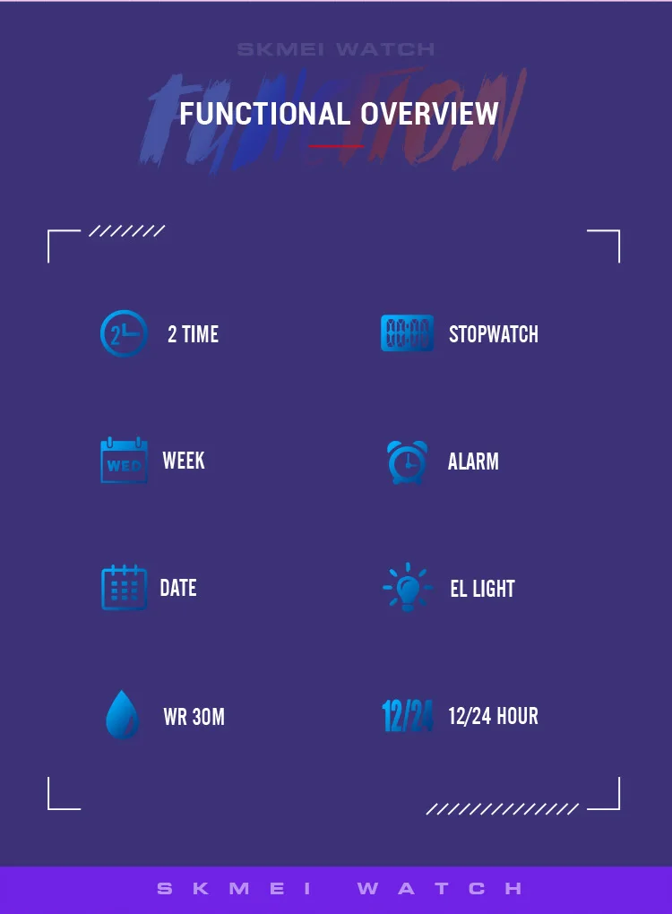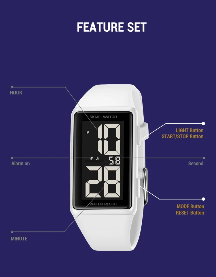 SKMEI Multi-Function Chrono Digital Watch Back Light Display Watches For Men Women Waterproof Electronic