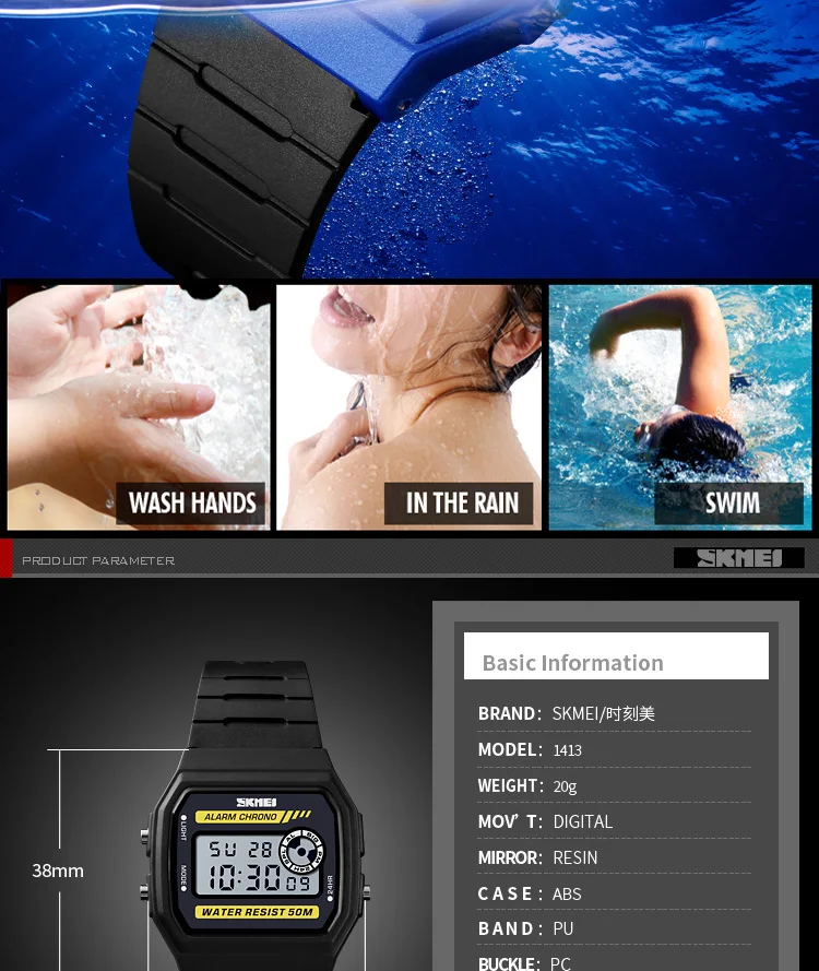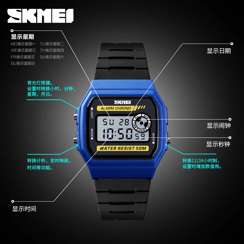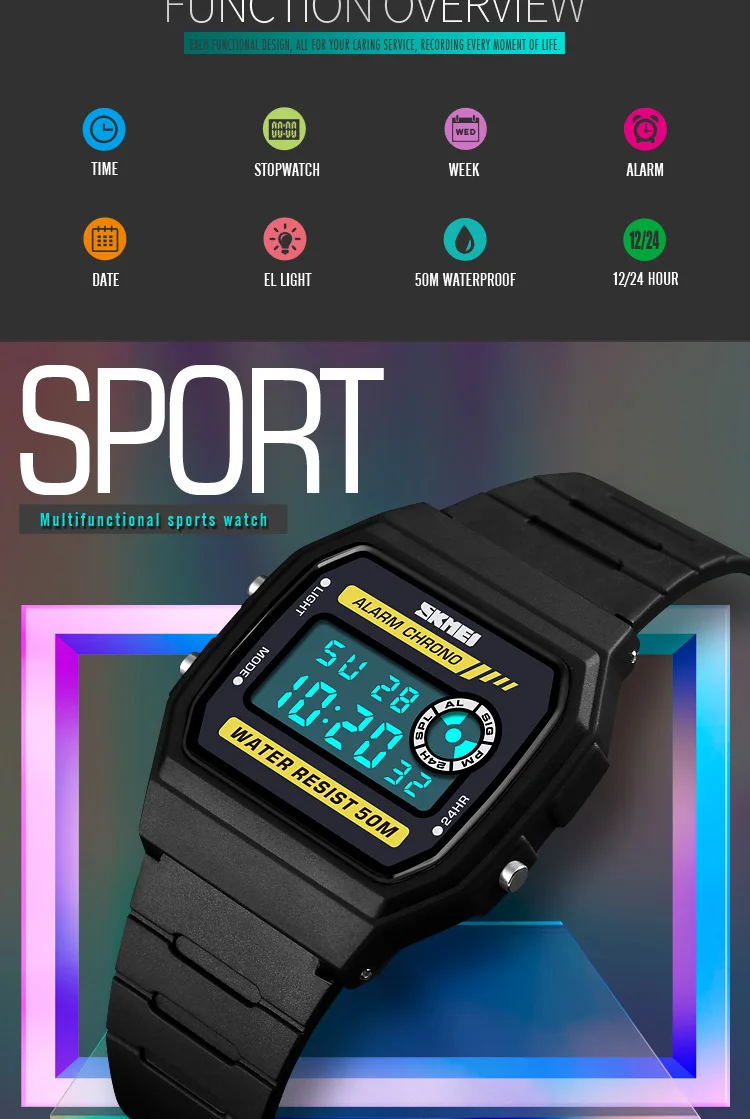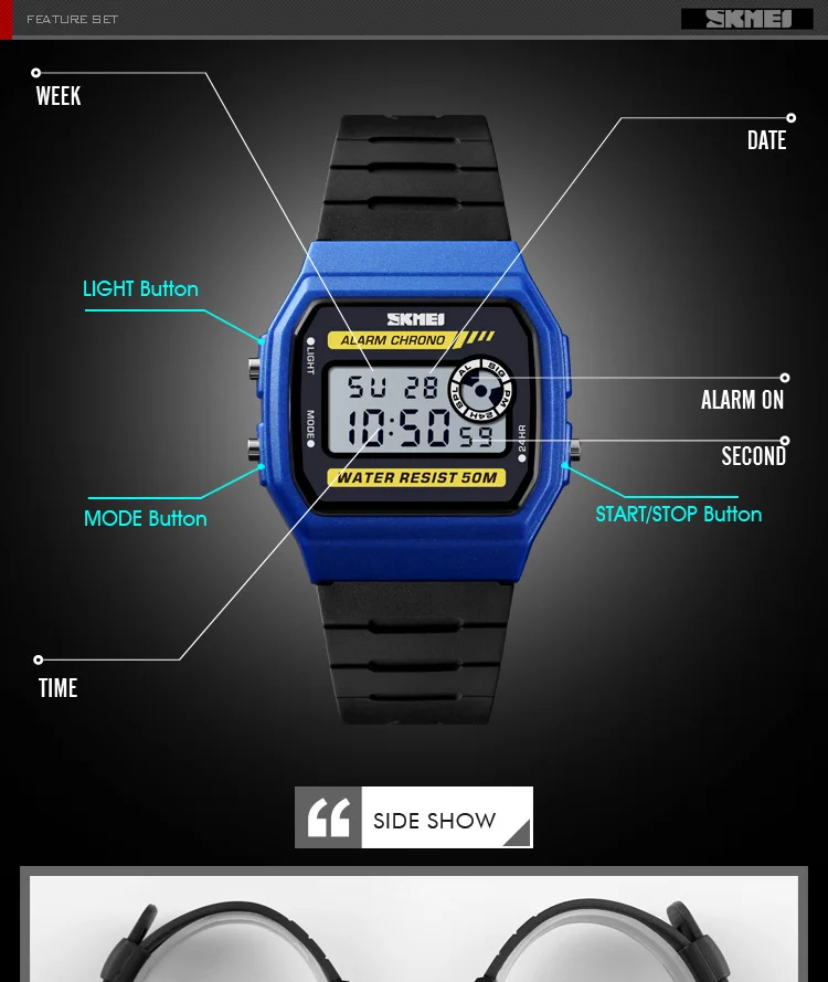 SKMEI Women Fashion Sports Wristwatch Alarm Digital Waterproof Alarm Clock Girls Watches Electronics