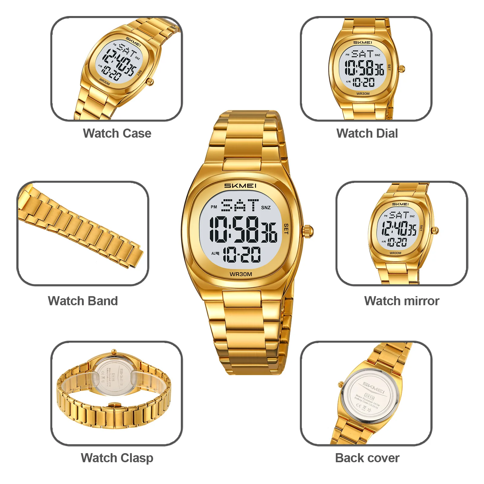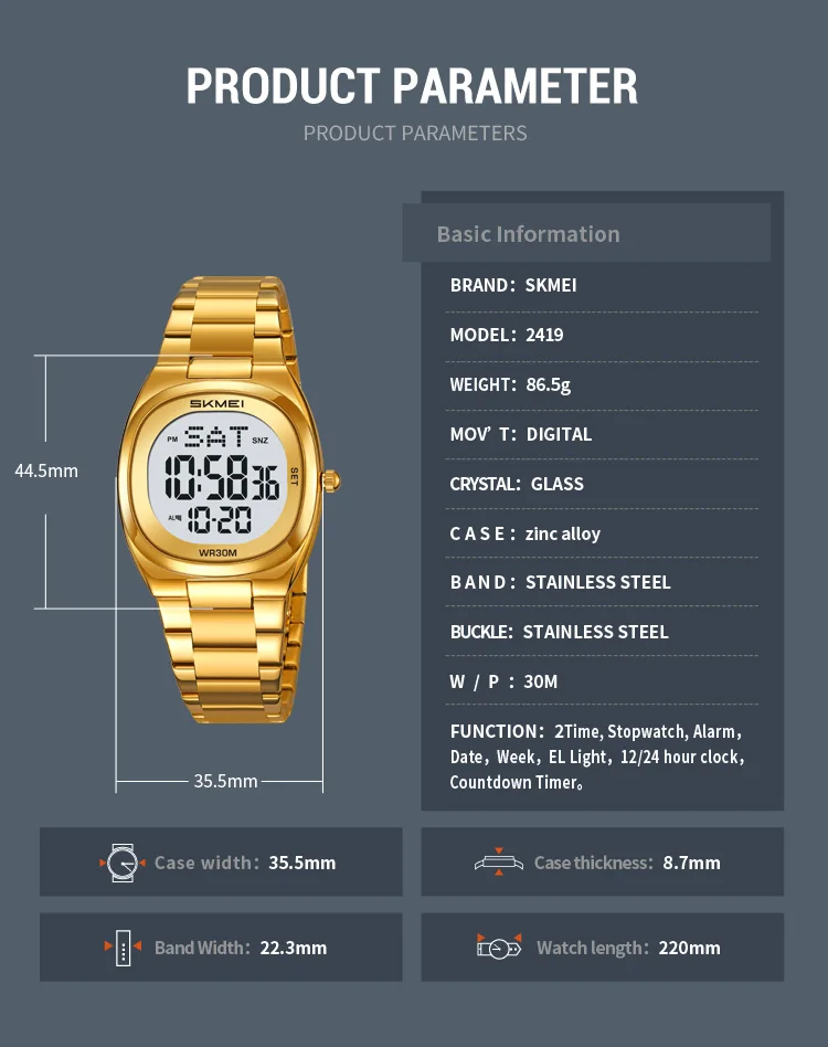 SKMEI Women’s Business Watch Men’s small dial Digital Watch Waterproof Alloy Watch Simple Exquisite Watch with stopwatch 2419