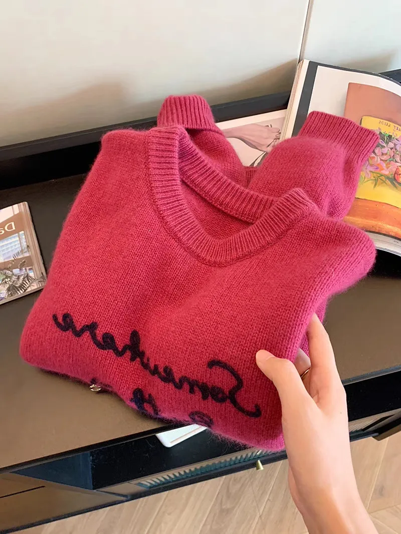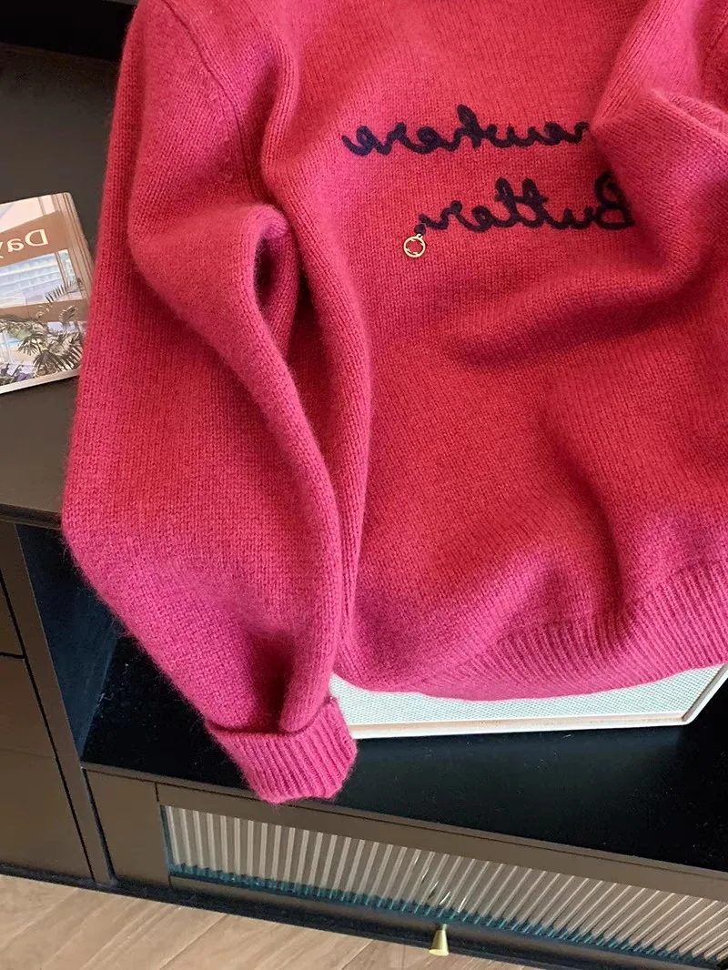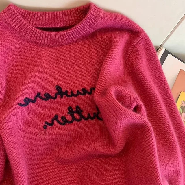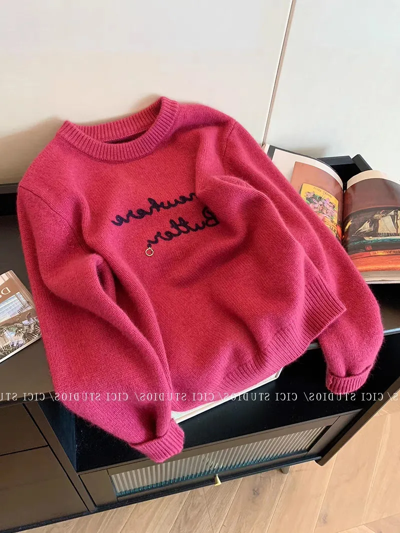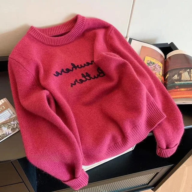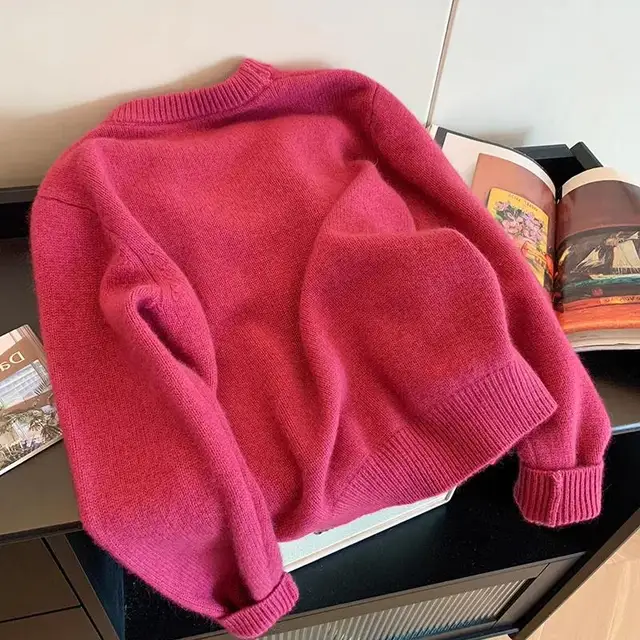 This sweater features a Korean style design, offering a trendy and fashionable look for the modern woman.