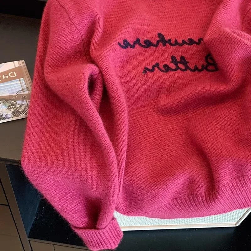 The embroidered lettering adds a unique touch to the sweater, making it stand out from the crowd.