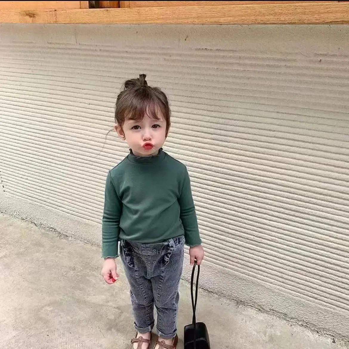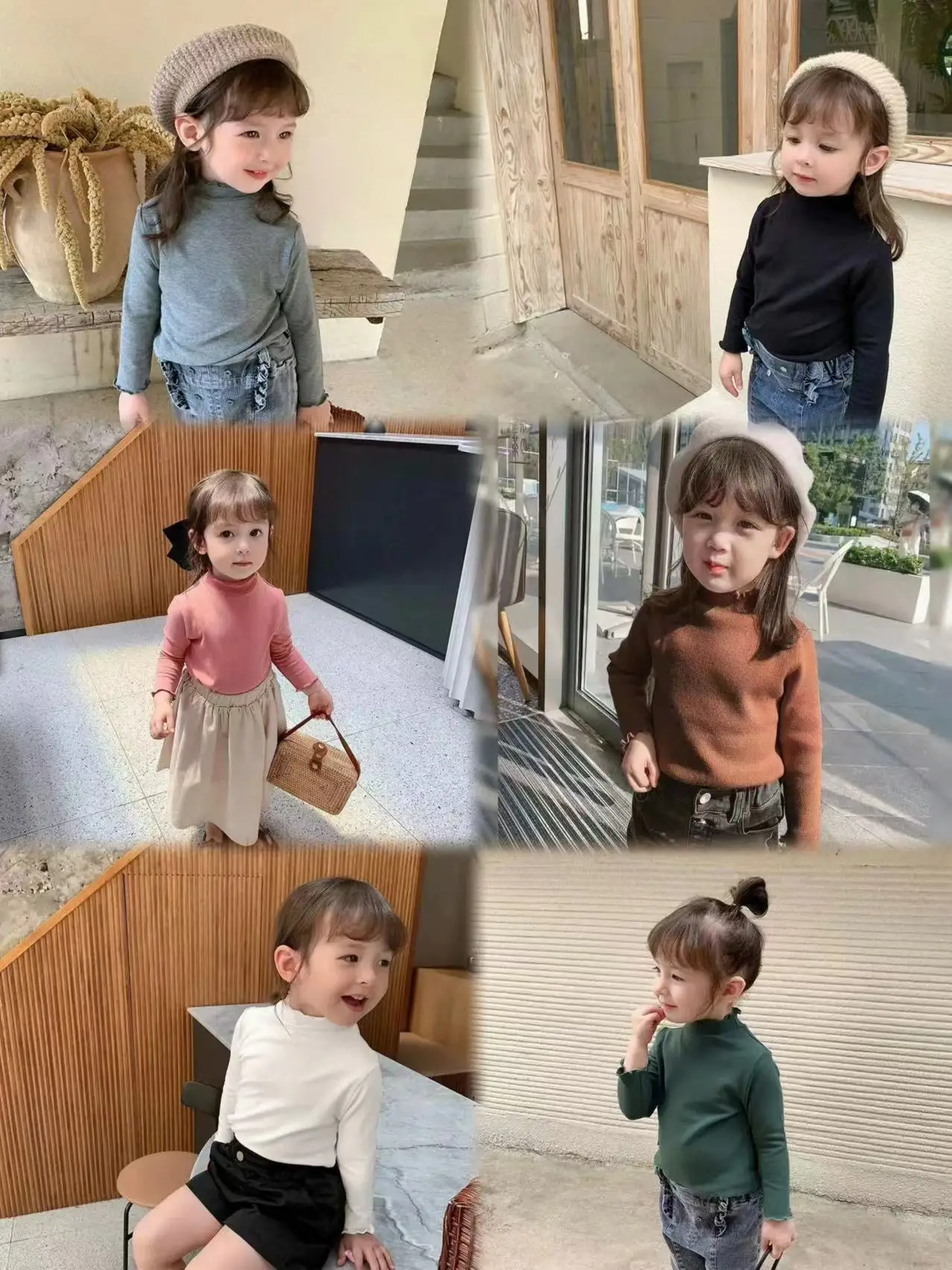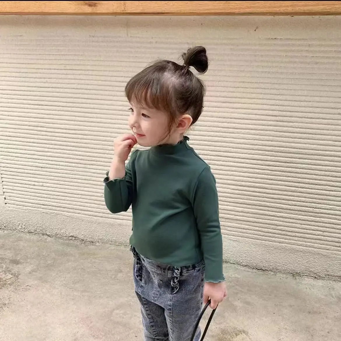 This girls’ high-neck base shirt features a casual style, perfect for everyday wear and comfortable for your little one.