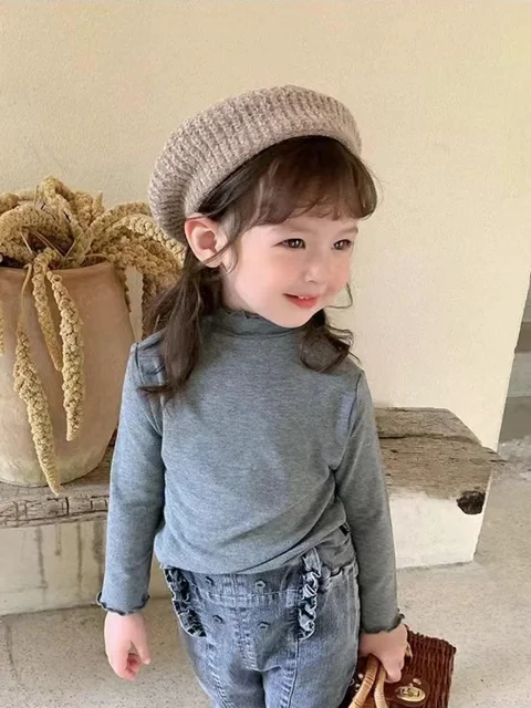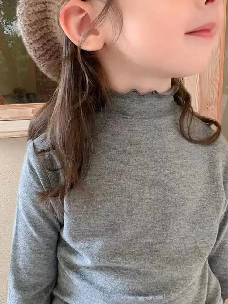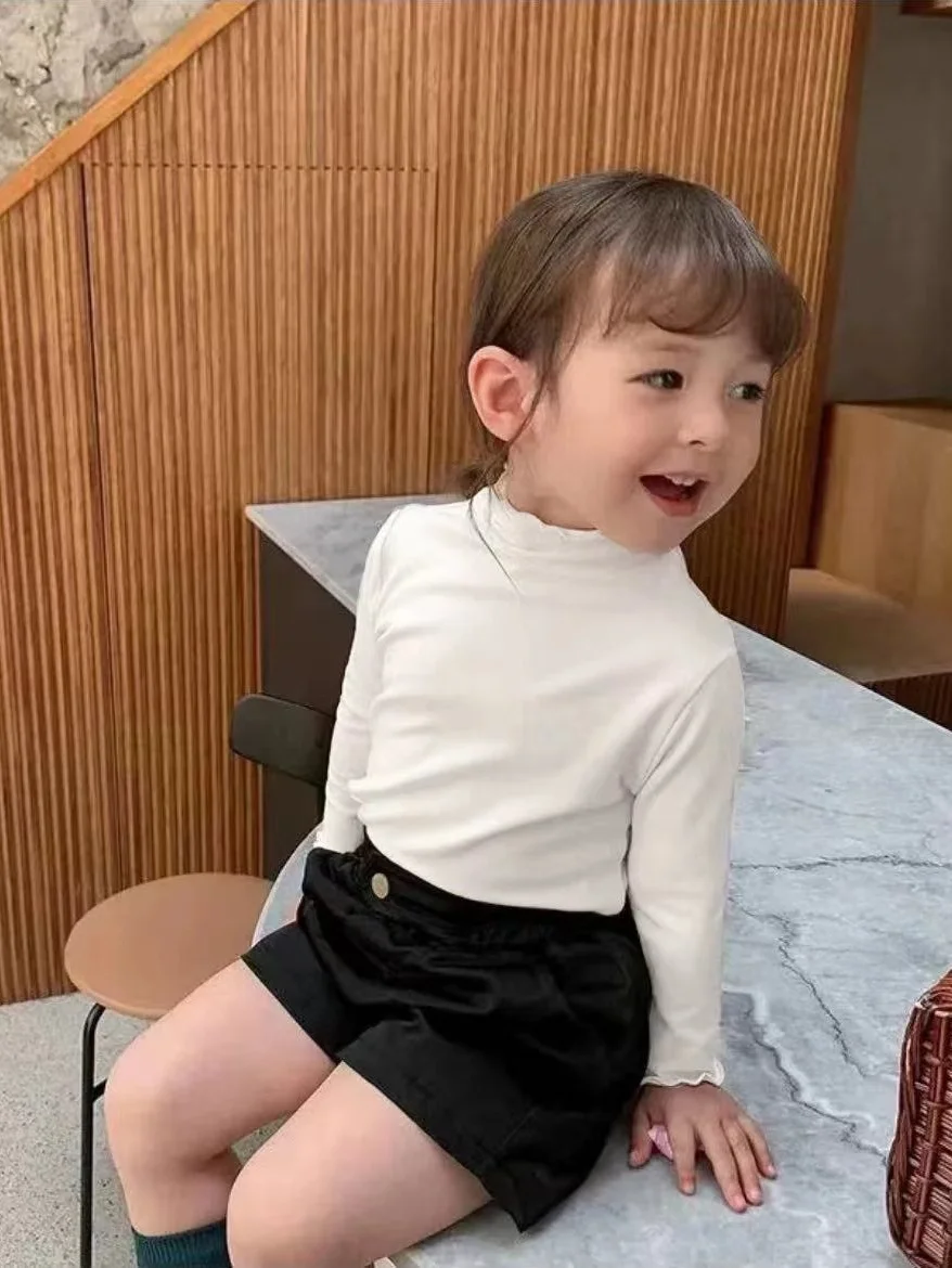 This girls’ high-neck base shirt features a casual style, perfect for everyday wear and comfortable for your little one.