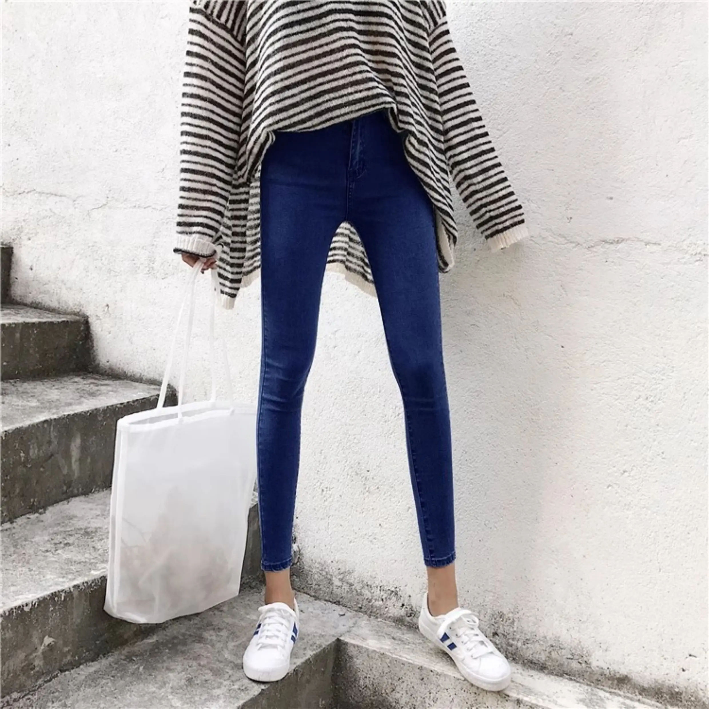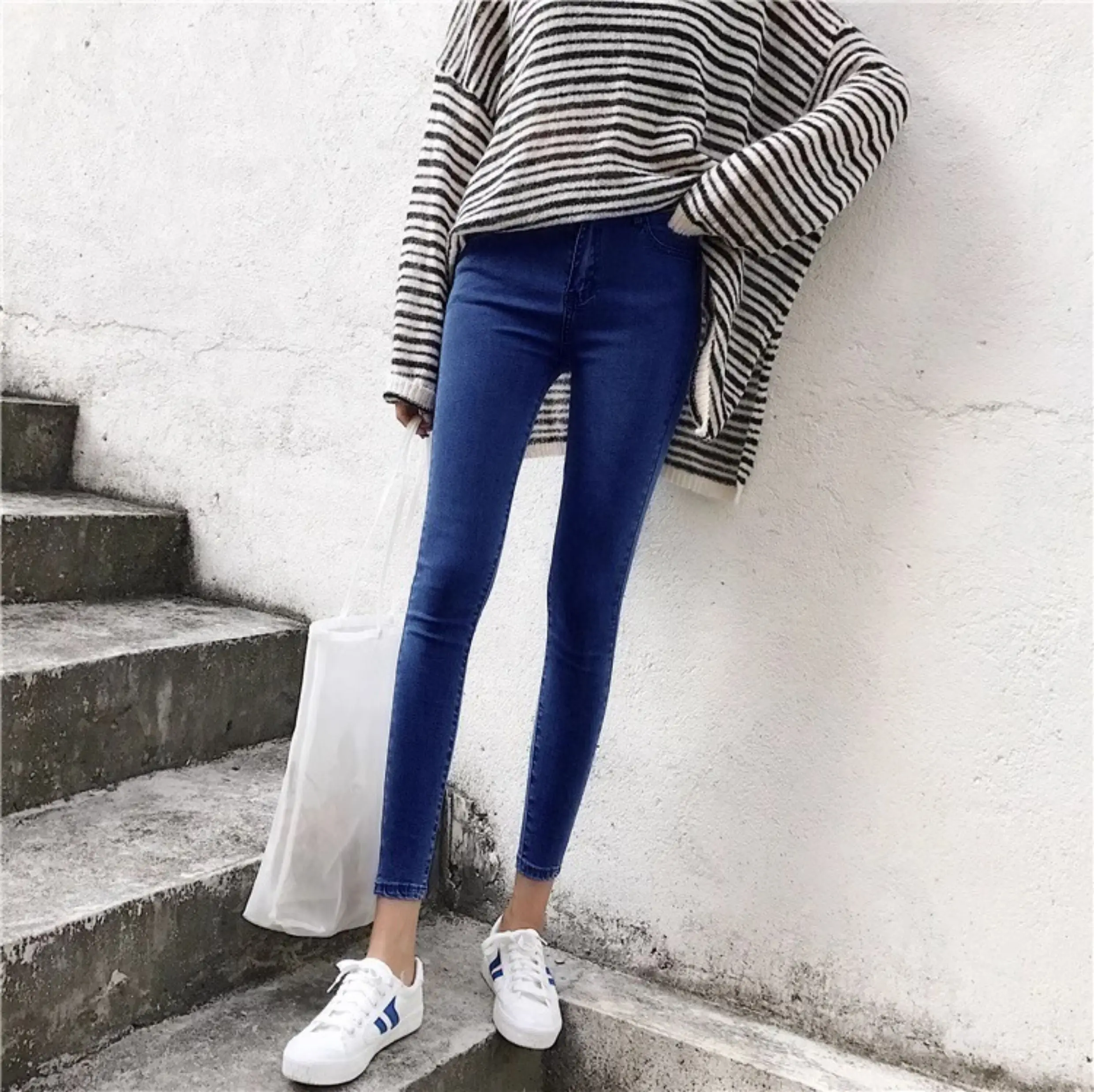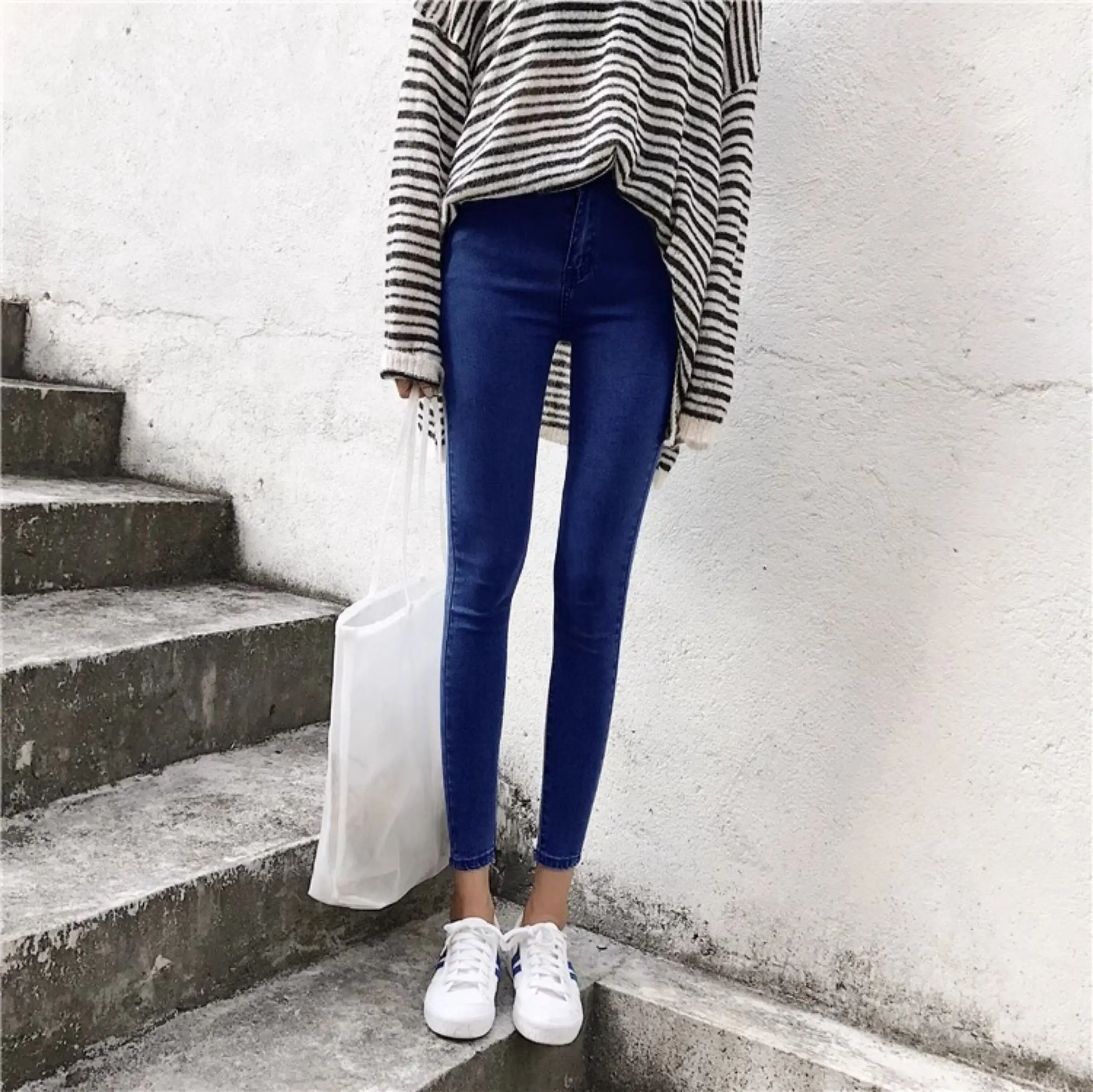 Elevate your style with these high-waist slim fit jeans, perfect for a flattering silhouette and a trendy look.