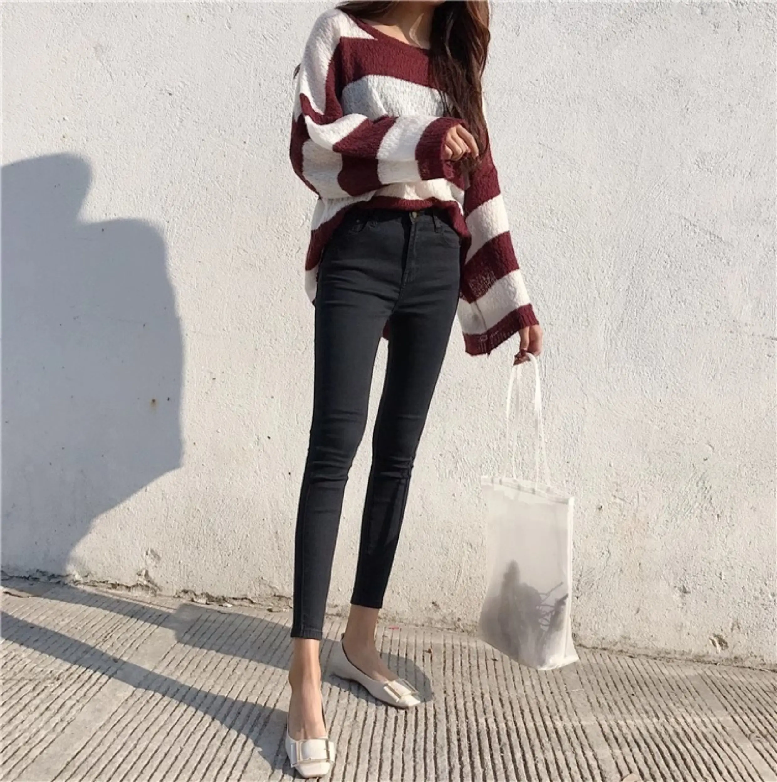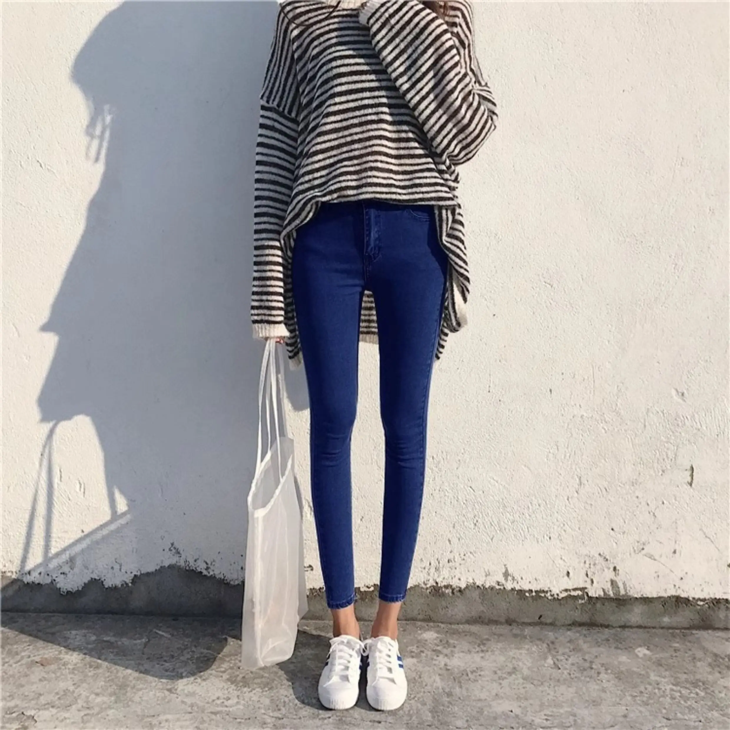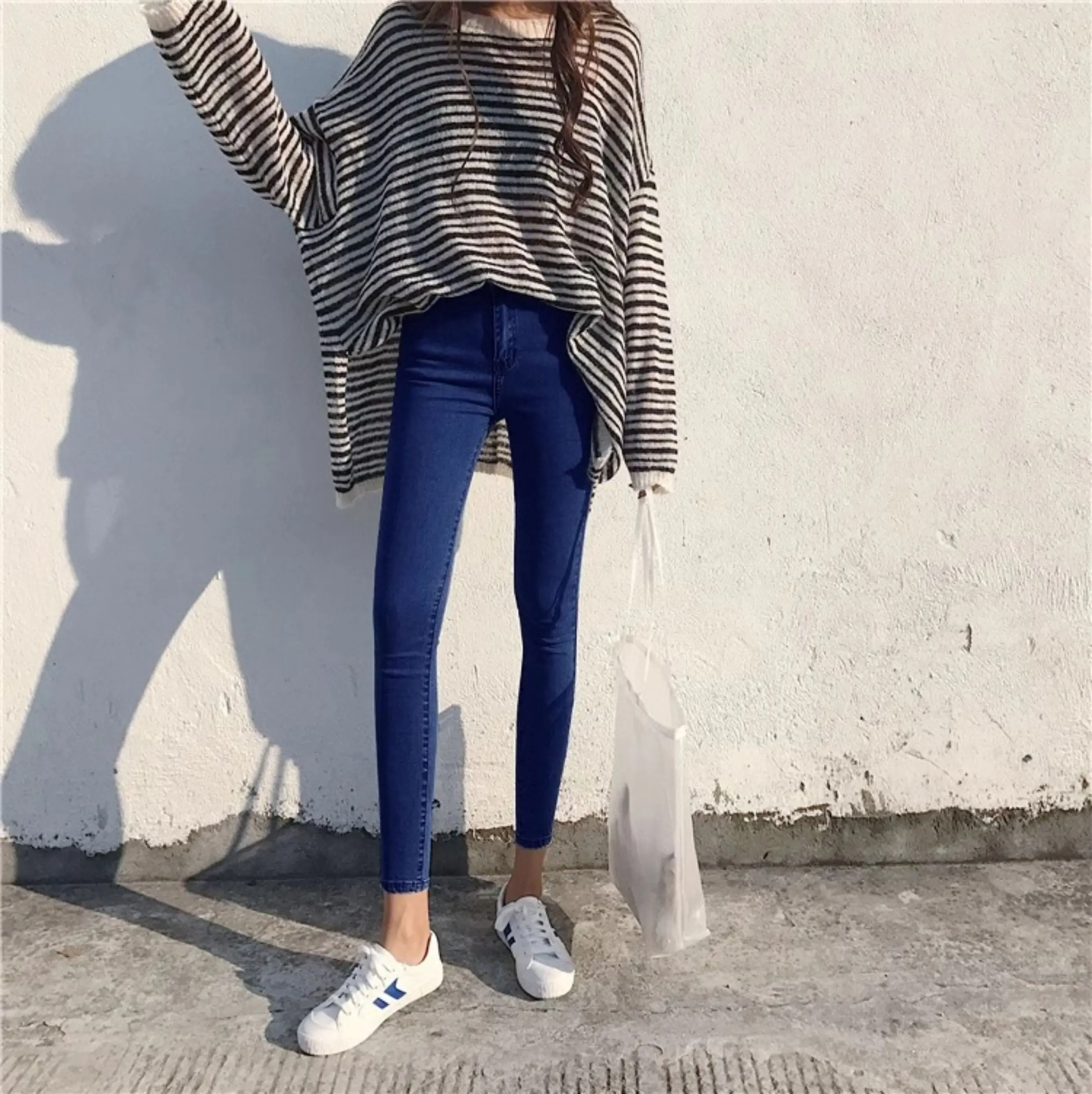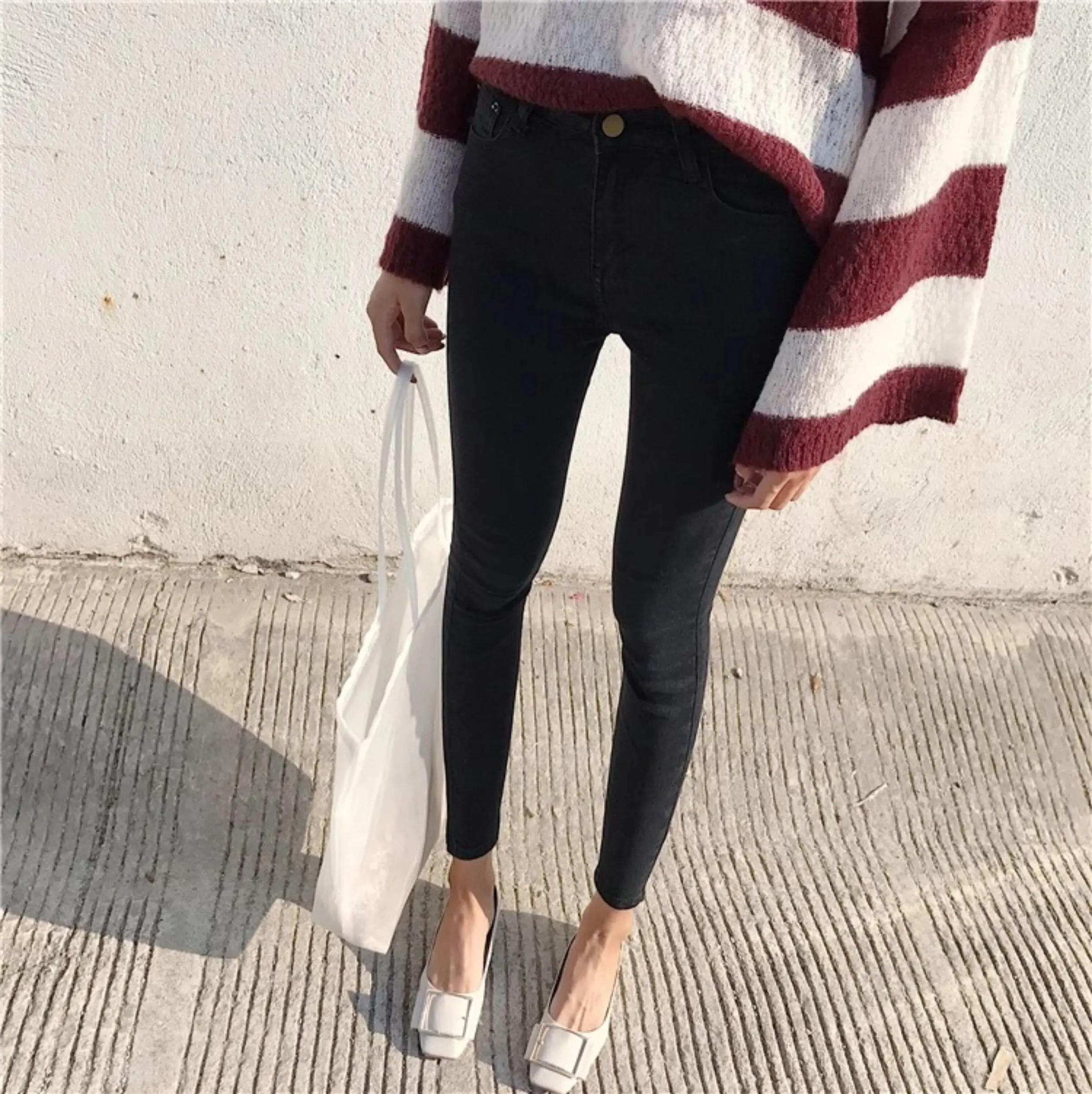 Elevate your style with these high-waist slim fit jeans, perfect for a flattering silhouette and a trendy look.