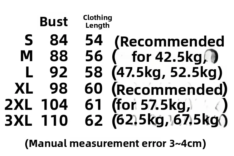 155/s( about 42.5kg )160/m (about 47.5kg left)165/l (about 55kg170/xl (about 60kg175/2xl (about 65kg years old)180/3xl (about 70kg years old)