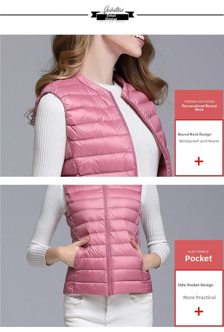 Slim Fit Lightweight Du down Vest Women’s ort Sle Korean Version Inner Wear oulder Pad Autumn Winter
