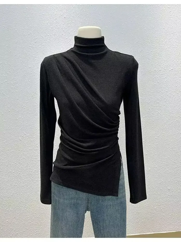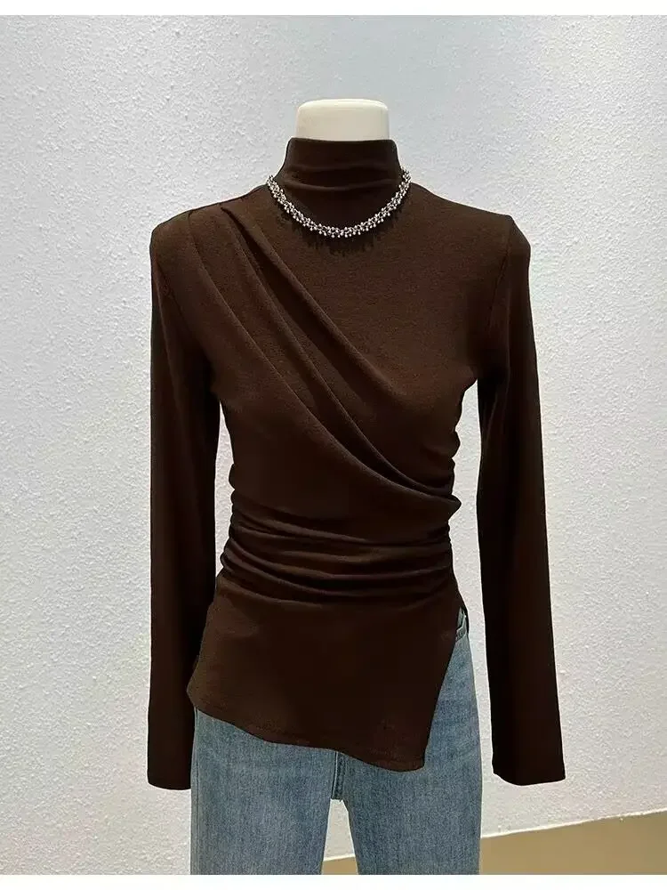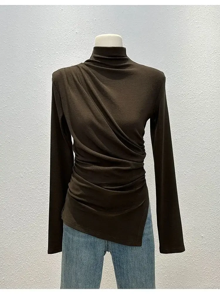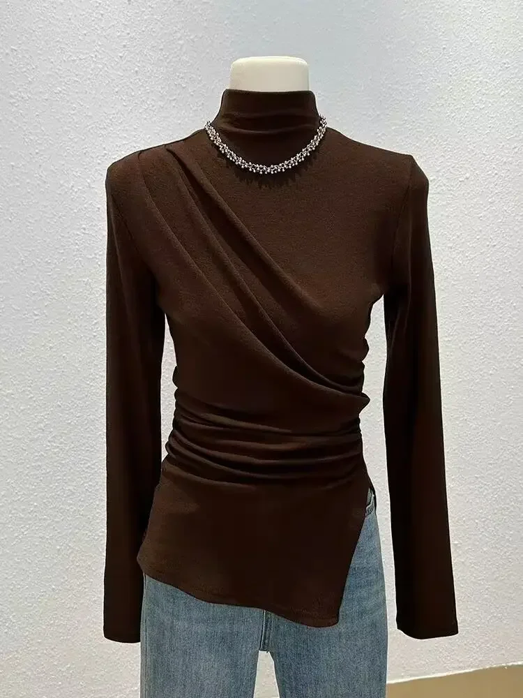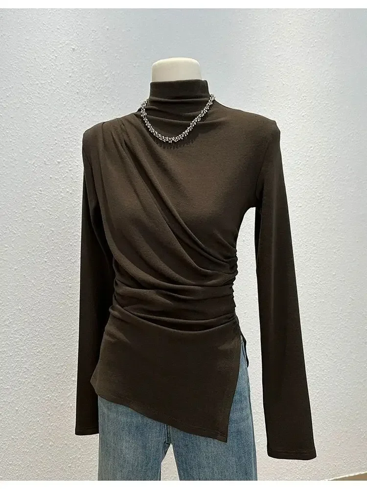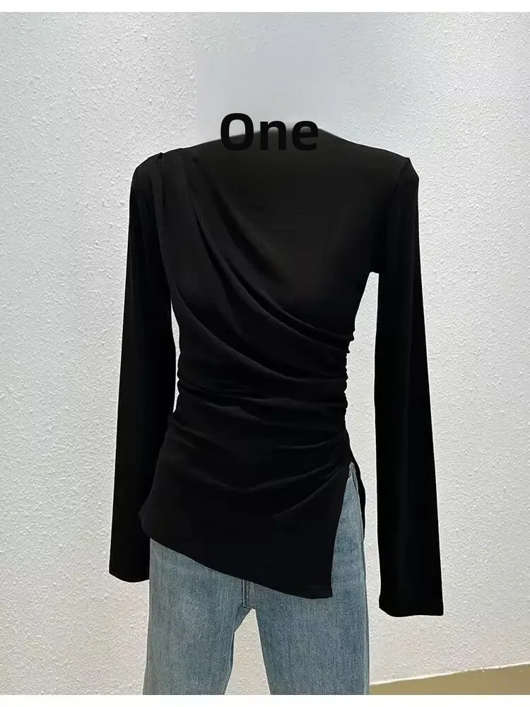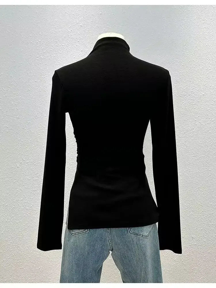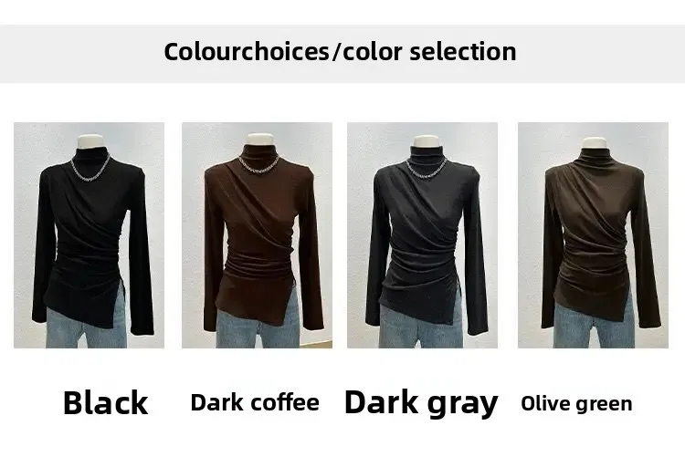 • Half-high Collar Long-sleeved : Featuring a unique half-high collar and long sleeves, this shirt adds a touch of elegance to any autumn outfit.