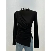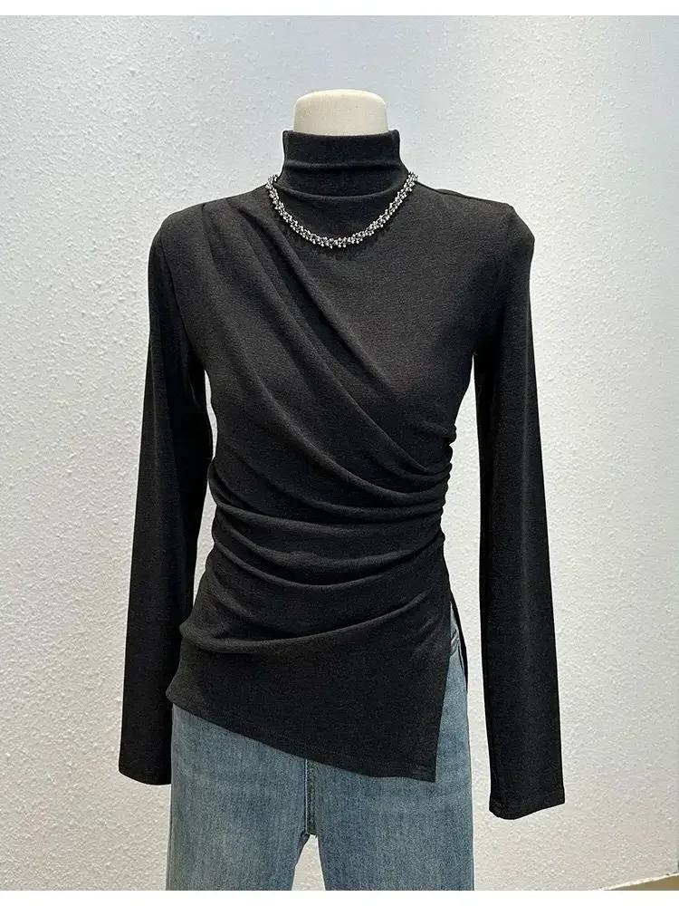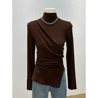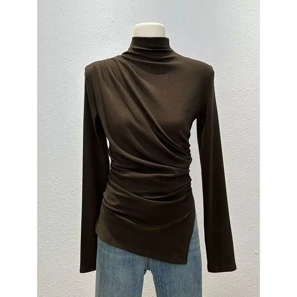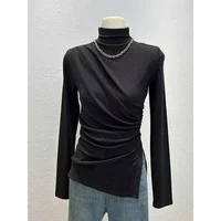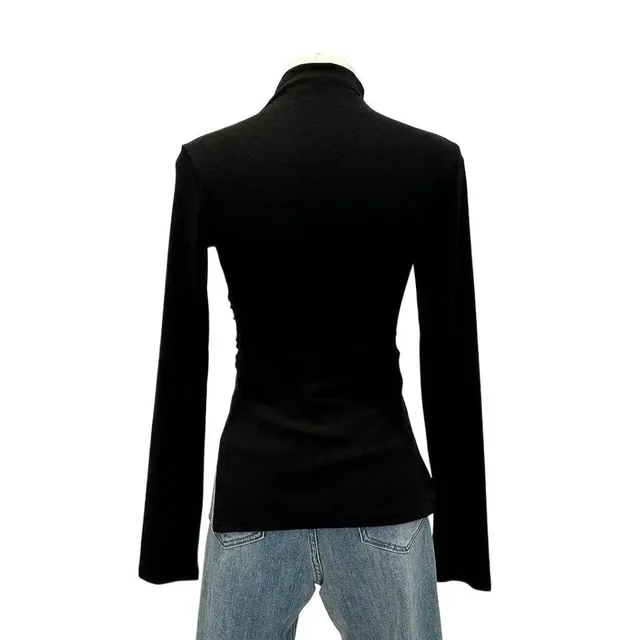 • Half-high Collar Long-sleeved : Featuring a unique half-high collar and long sleeves, this shirt adds a touch of elegance to any autumn outfit.