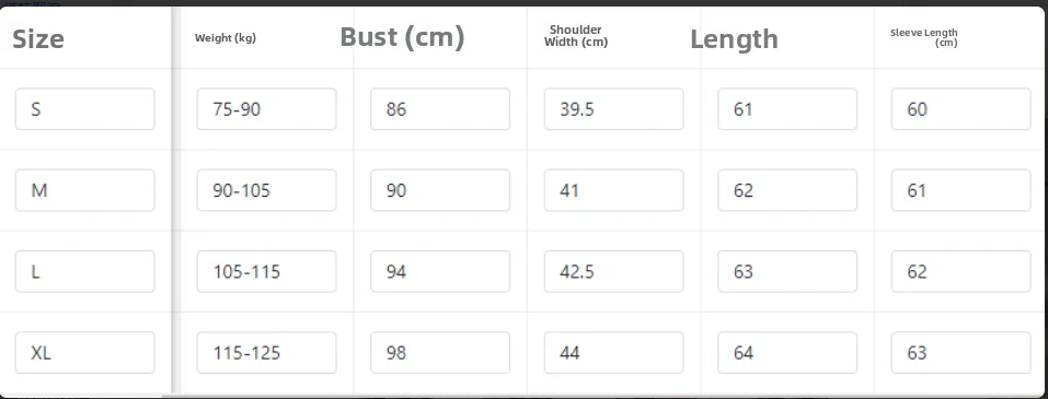 L ( 52.5-57.5kg )M 45-52.5kgS 37.5-45kgXl 57.5-62.5kg