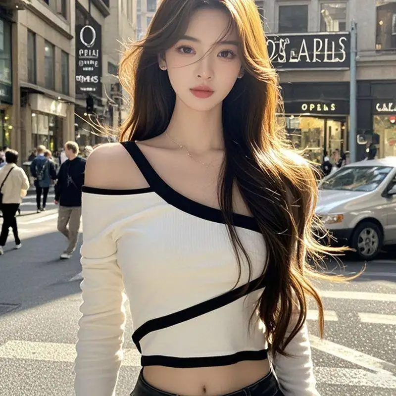 This long-sleeve T-shirt features a trendy design, perfect for the early autumn season. Its slim fit and hollow-out shoulder detail add a unique touch to your wardrobe.