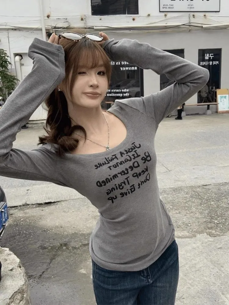 Featuring a trendy U-neckline and printed design, this T-shirt adds a touch of style to any outfit, making you stand out in the crowd.