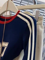 Featuring a classic American stripe pattern, this T-shirt adds a touch of preppy elegance to any outfit.