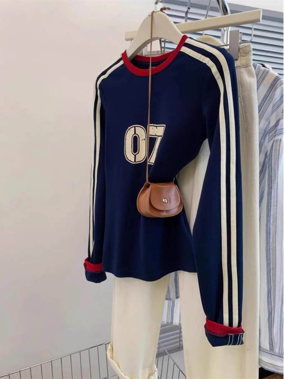 The round neckline offers a classic and timeless appeal, complementing any outfit.