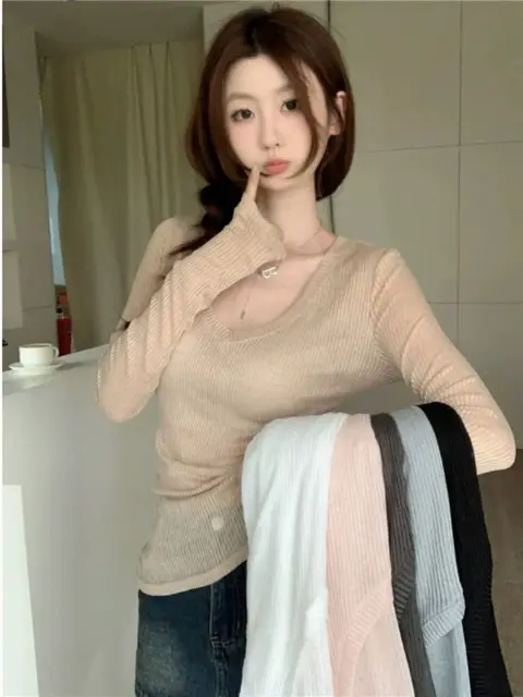 The V-neck thin knit shirt features a slim fit design, accentuating your figure and providing a sleek silhouette.