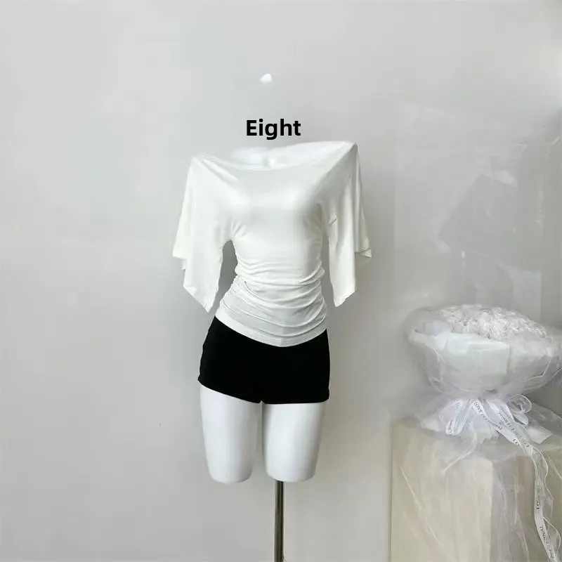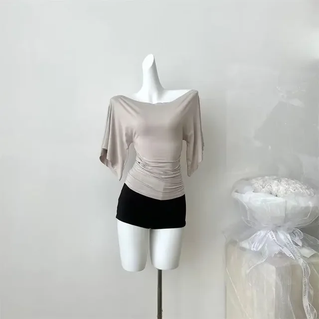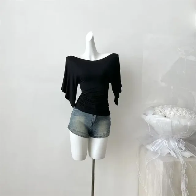 Slim Fit One Shoulder T-Shirt Women Summer Design Bell Sleeve Chop Neck plus Size Versatile Sexy Top