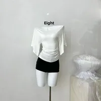 Slim Fit One Shoulder T-Shirt Women Summer Design Bell Sleeve Chop Neck plus Size Versatile Sexy Top Pure Desire AE Stock