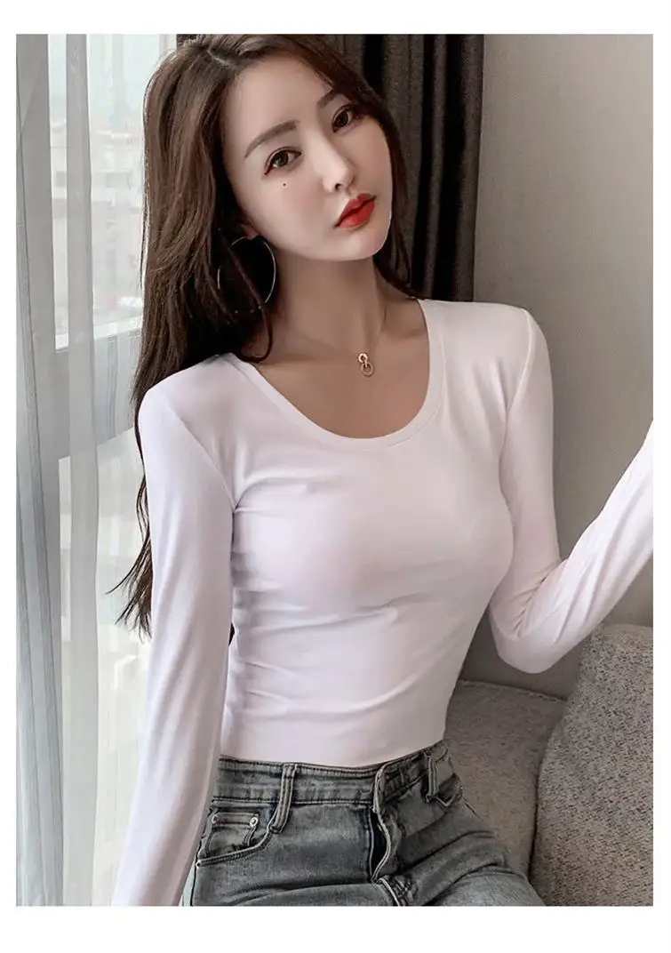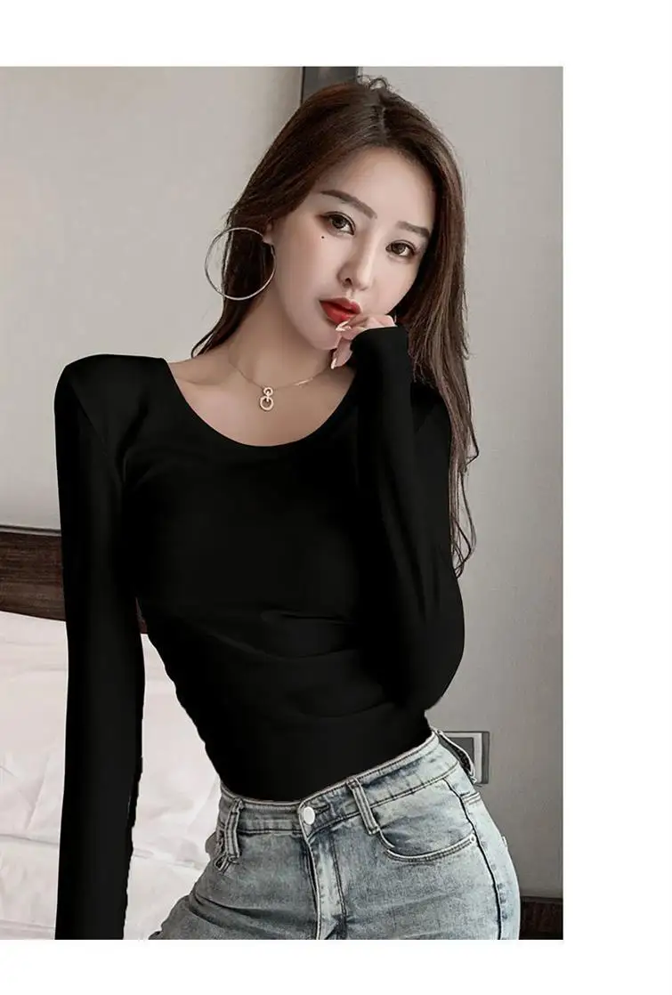 Slim Fit round Ne Long Sve T-irt Women’s Base irt Inner Wear Outer Wear Autumn Clothes Korean Sle