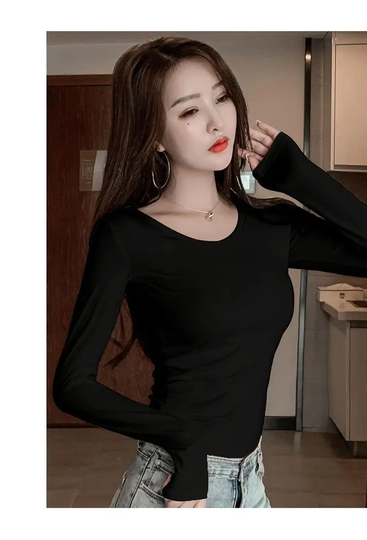 Slim Fit round Ne Long Sve T-irt Women's Base irt Inner Wear Outer Wear Autumn Clothes Korean Sle Commute Wind