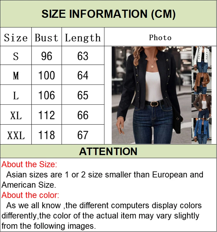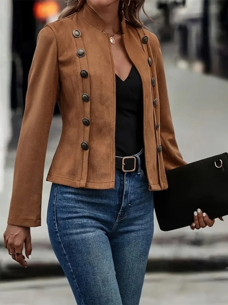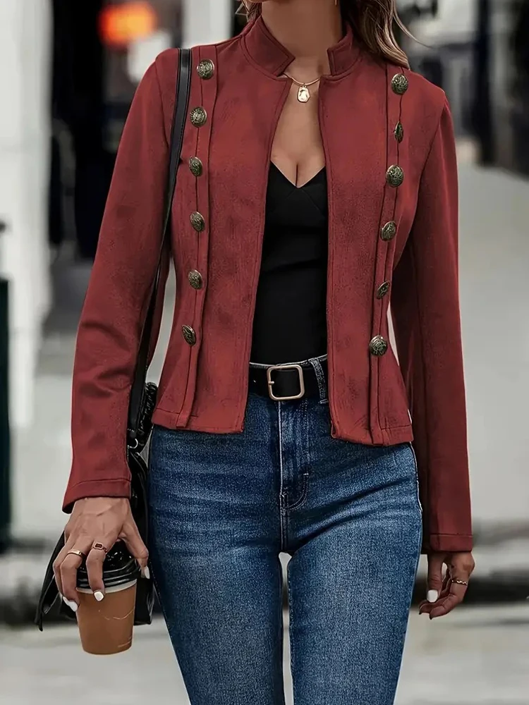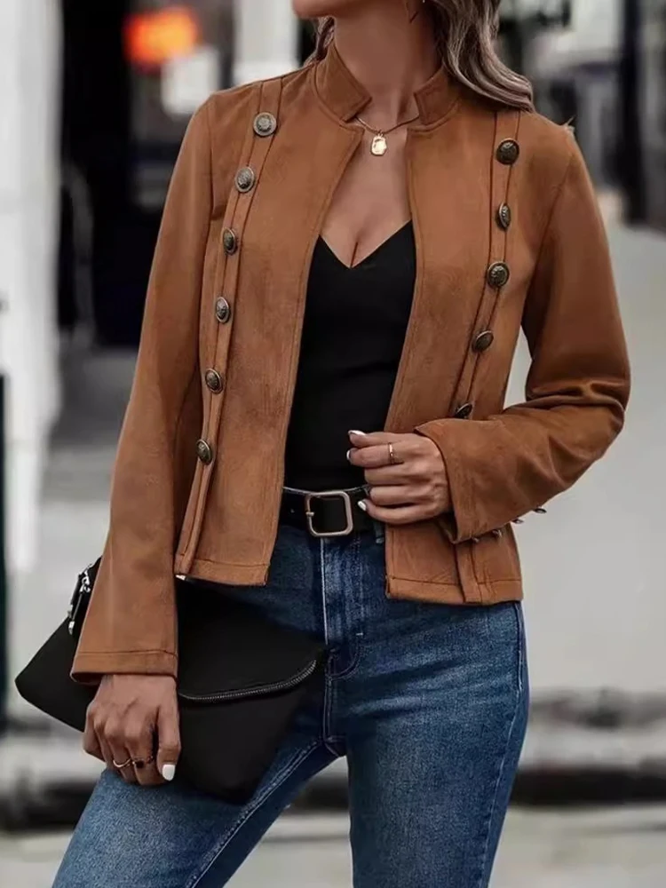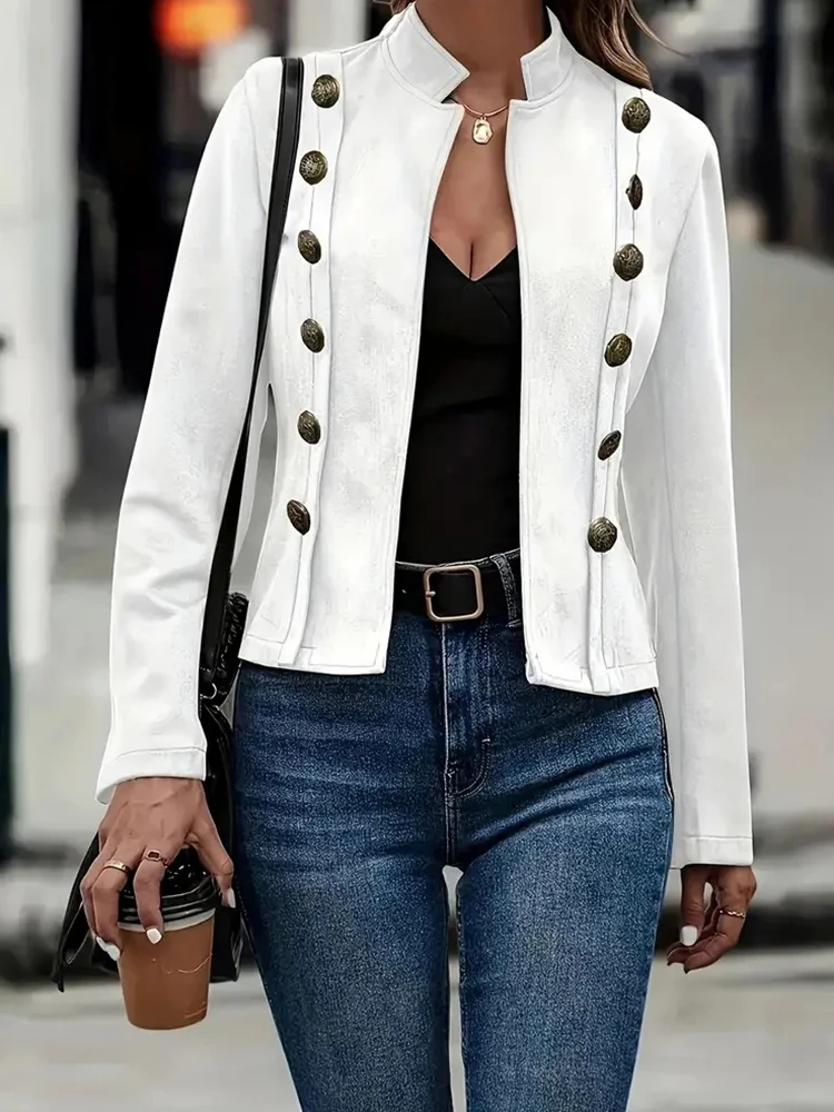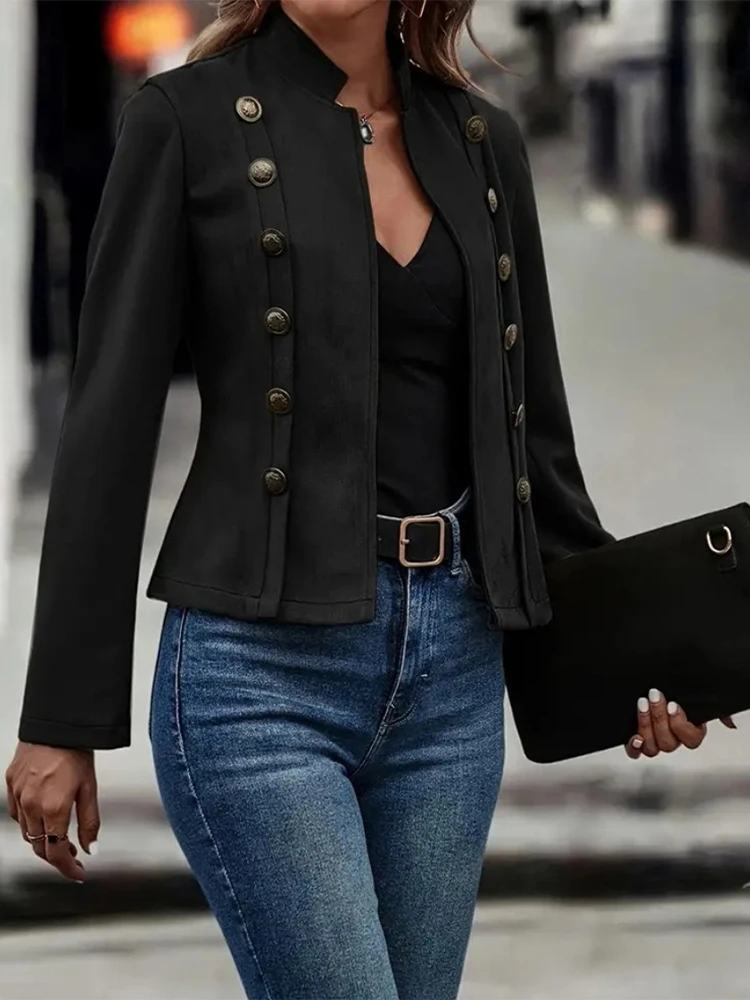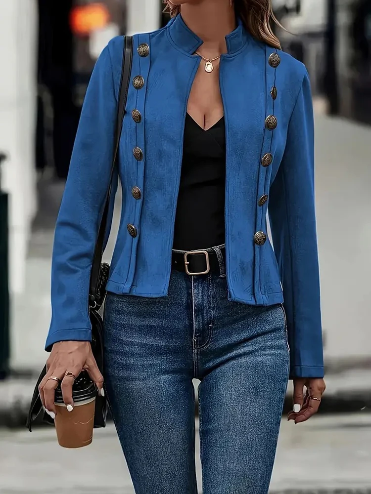 Slim Fit Solid Color Double-breasted Decorative Women Jacket Open Front Buttons Stand Collar Long Sleeve Woman Cardigan Jackets