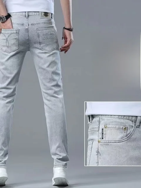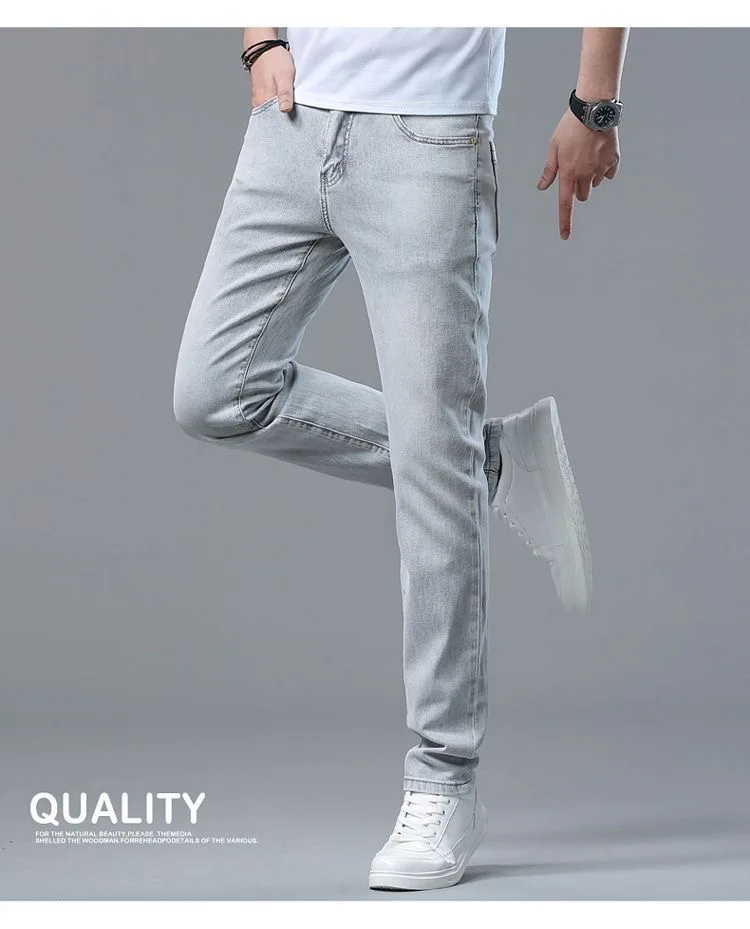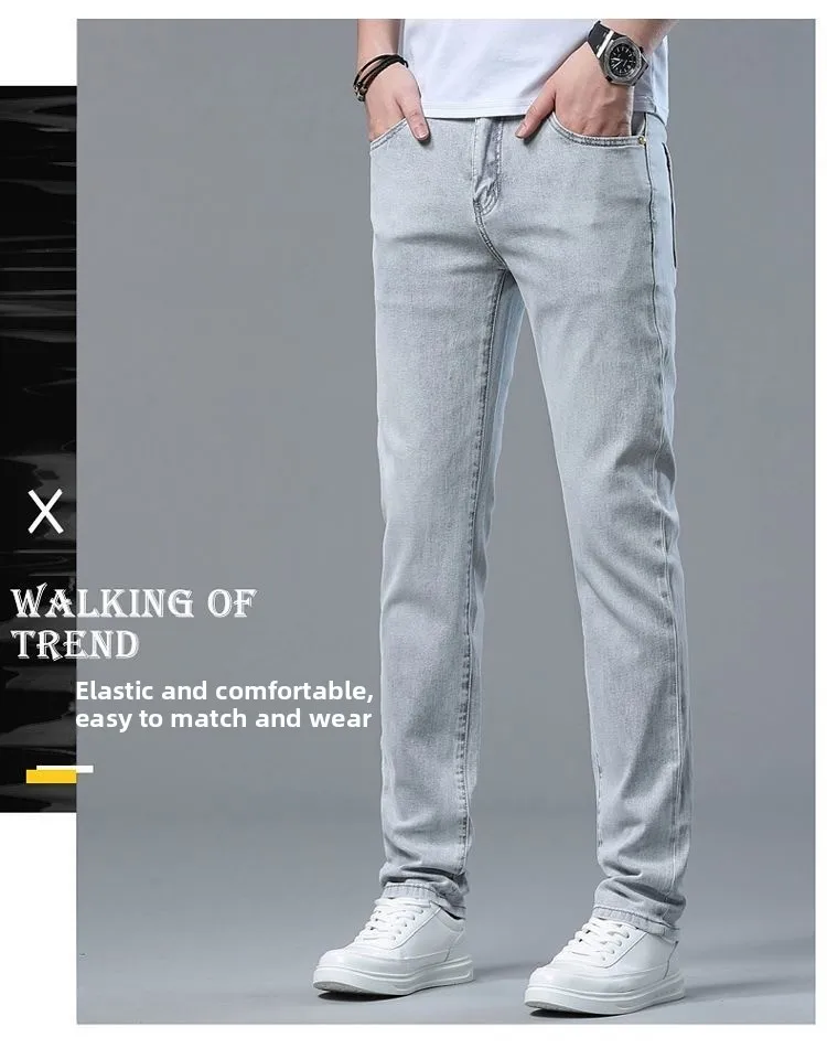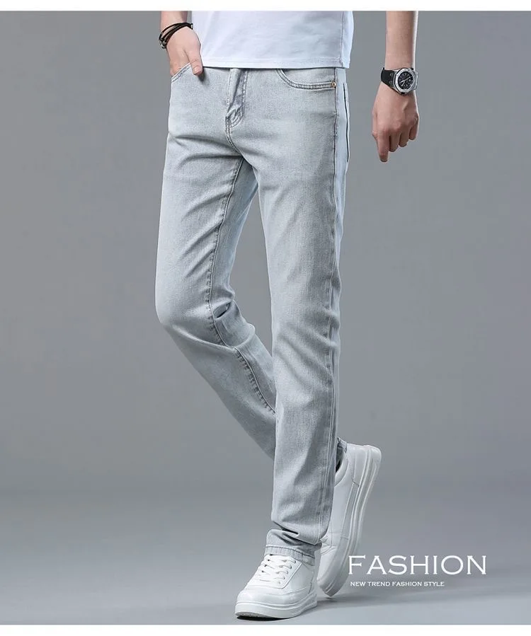Slim Fit Straight Leg Men’s Jeans Light Blue Casual Faionable Early Autumn e ey Jeans mid Waist