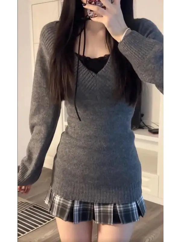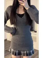 The slim fit design of this grey v-neck sweater accentuates your figure, offering a flattering silhouette for any occasion.