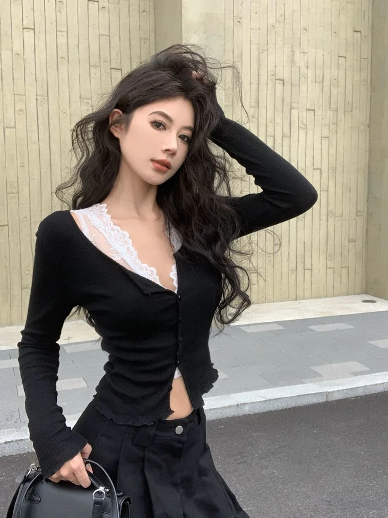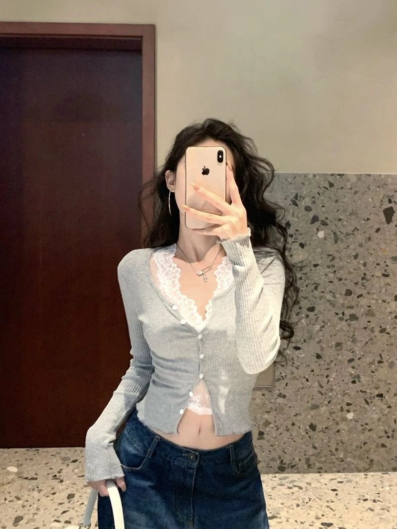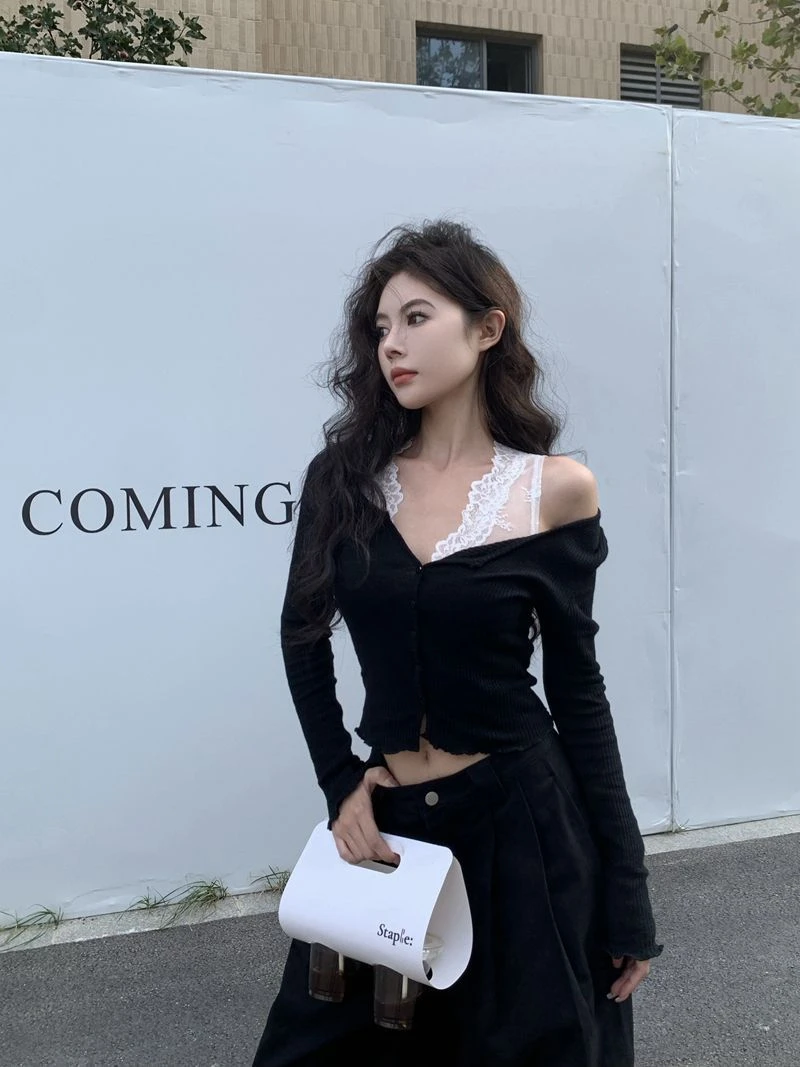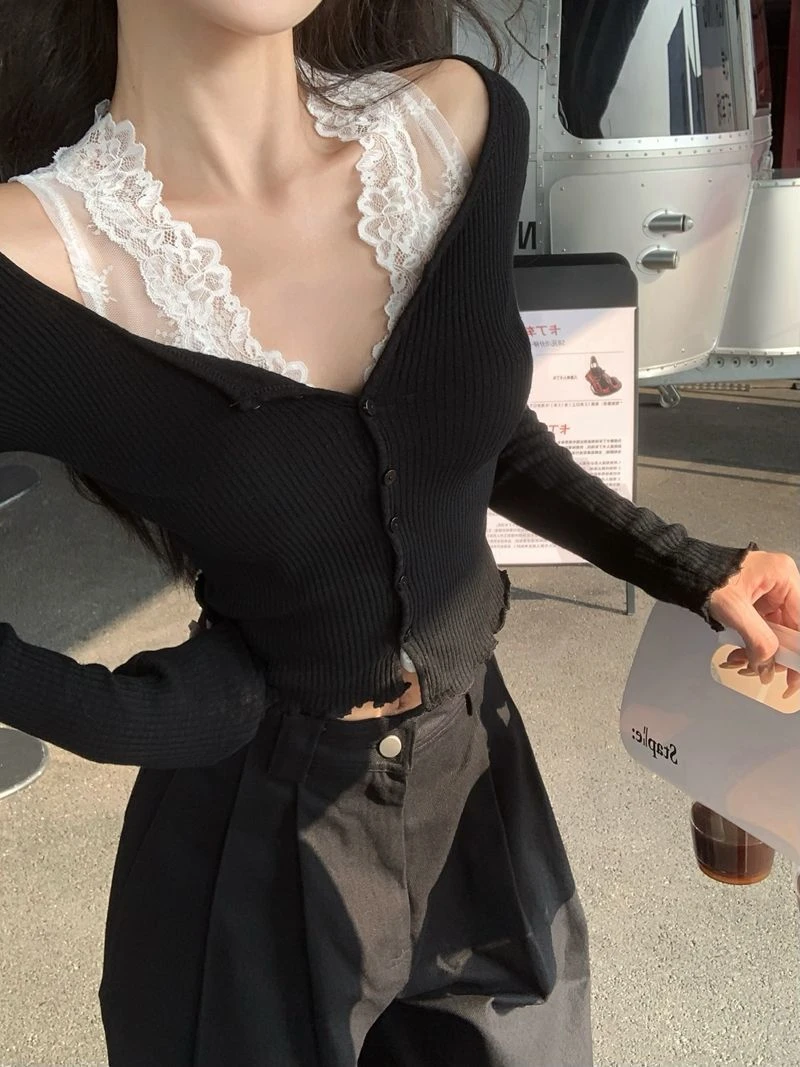 Black CardiganBlack cardigan + lace vestGray CardiganGray cardigan + lace vestLace vestwhite cardiganWhite cardigan + lace vest