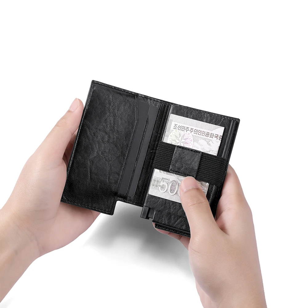 This Slim RFID Card Holder Wallet features an unisex design, making it suitable for both men and women.