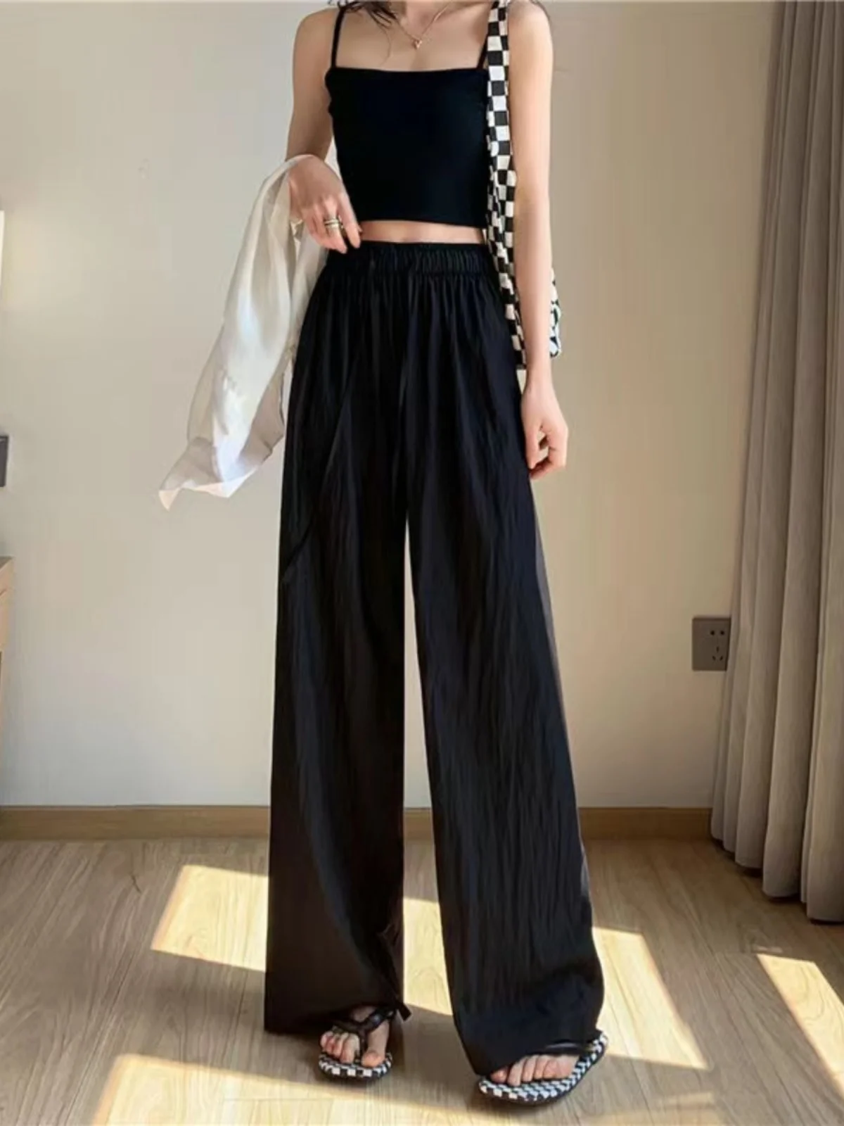 The wide leg cut of these pants offers comfort and ease of movement, ideal for daily wear.
