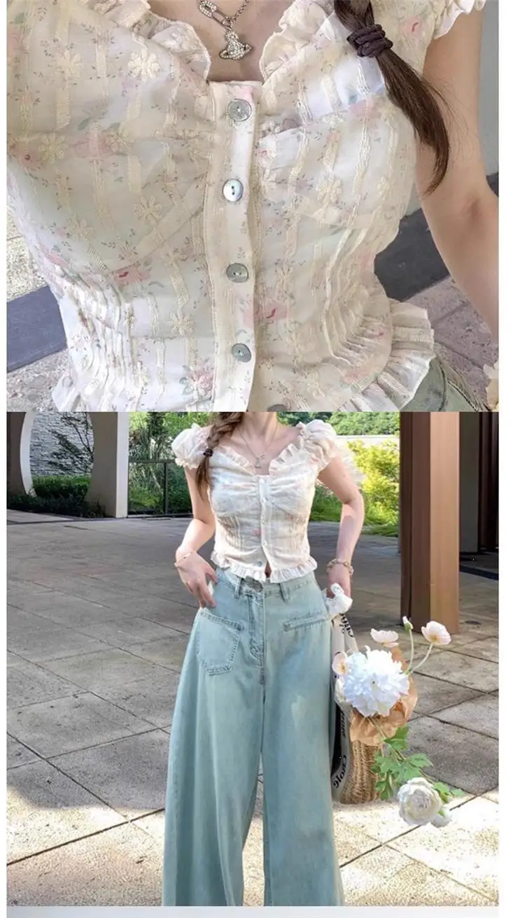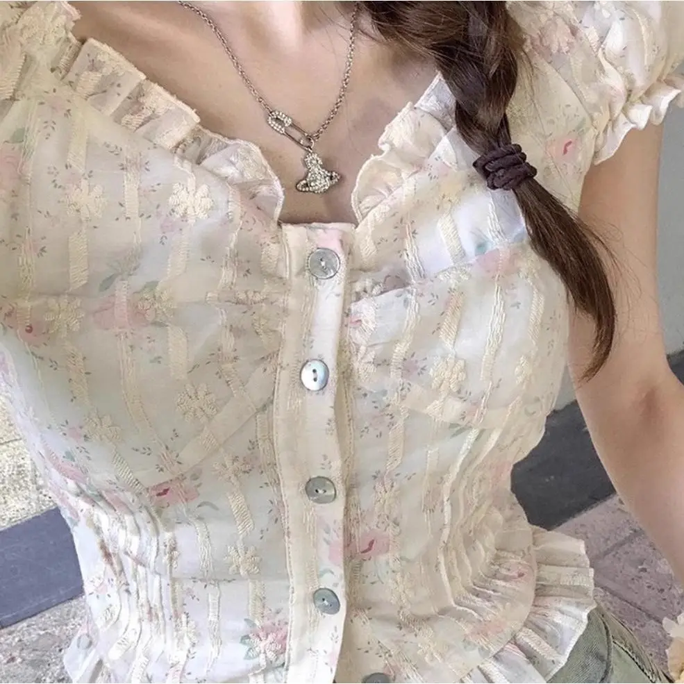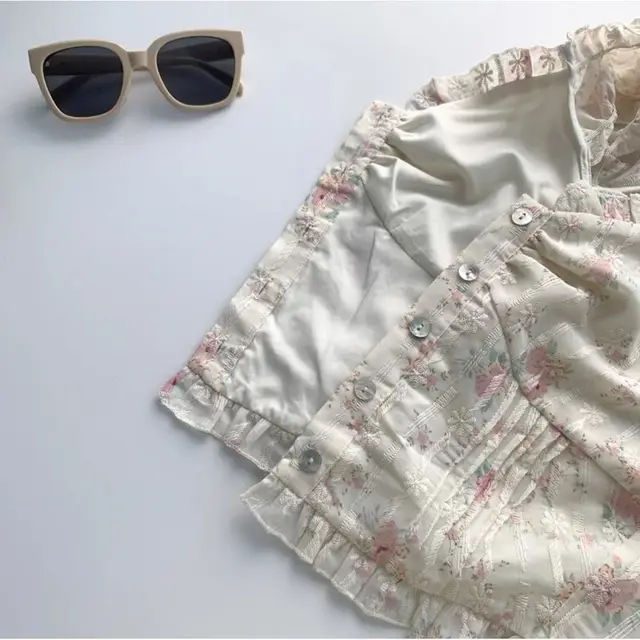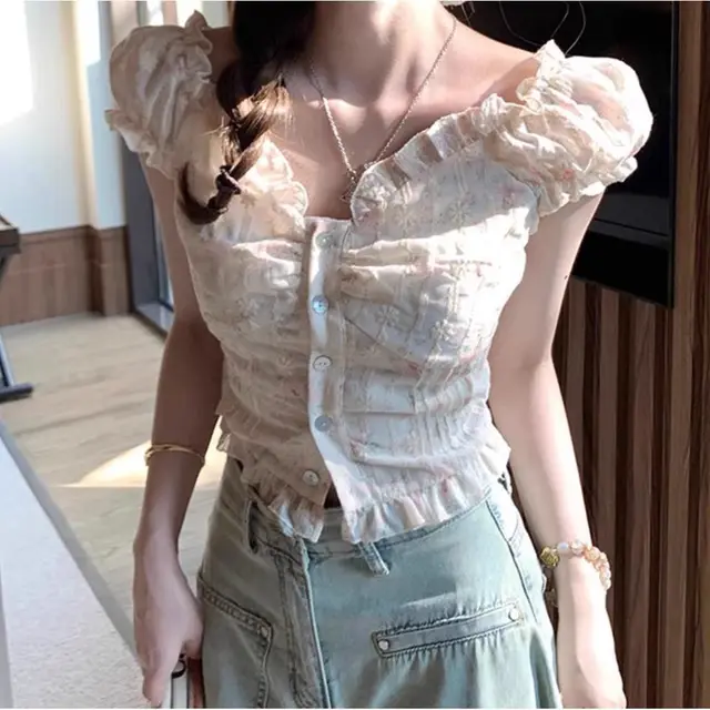 Embrace the charm of French girls with this floral print top, perfect for those who love a touch of elegance and femininity.