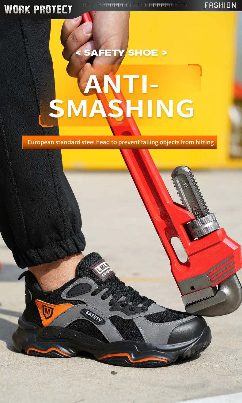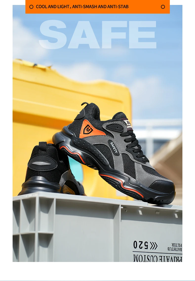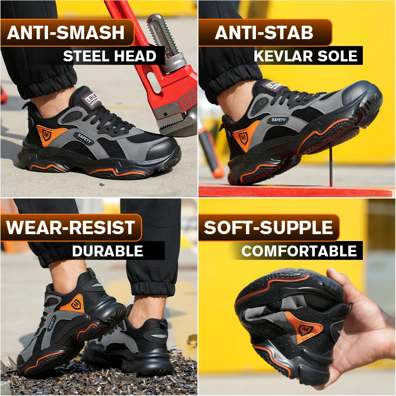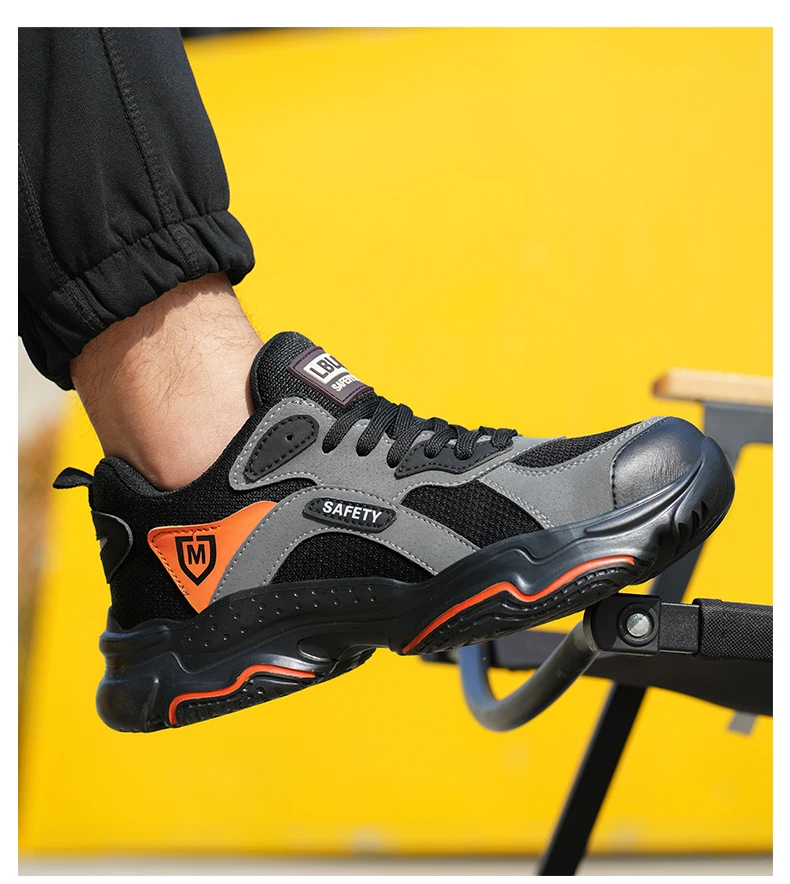 Men's Lightweight Breathable Safety Shoe Steel Toe Cap Anti-drop Anti-piercing Safety Boots for Construction Site Wear-resistant